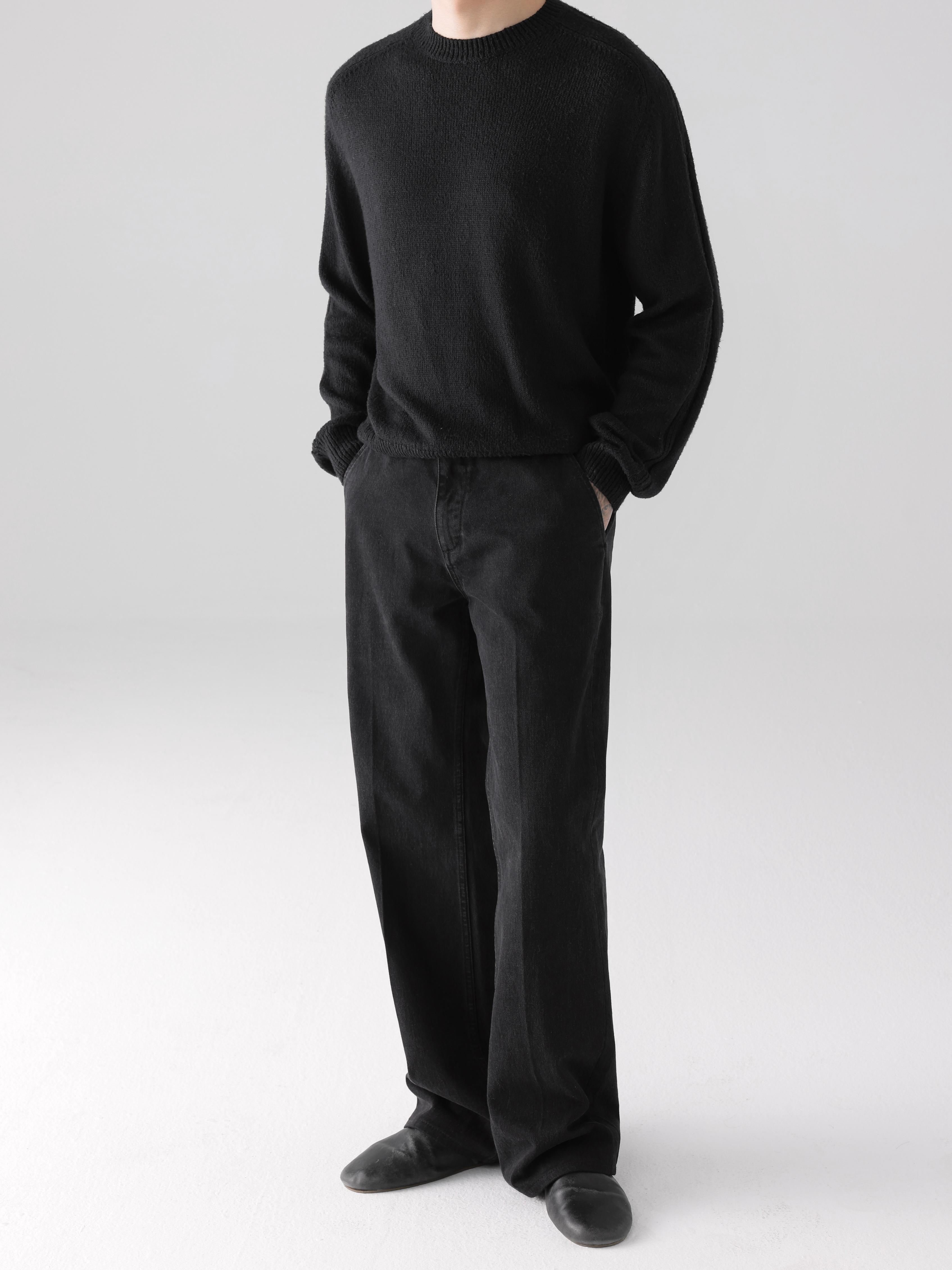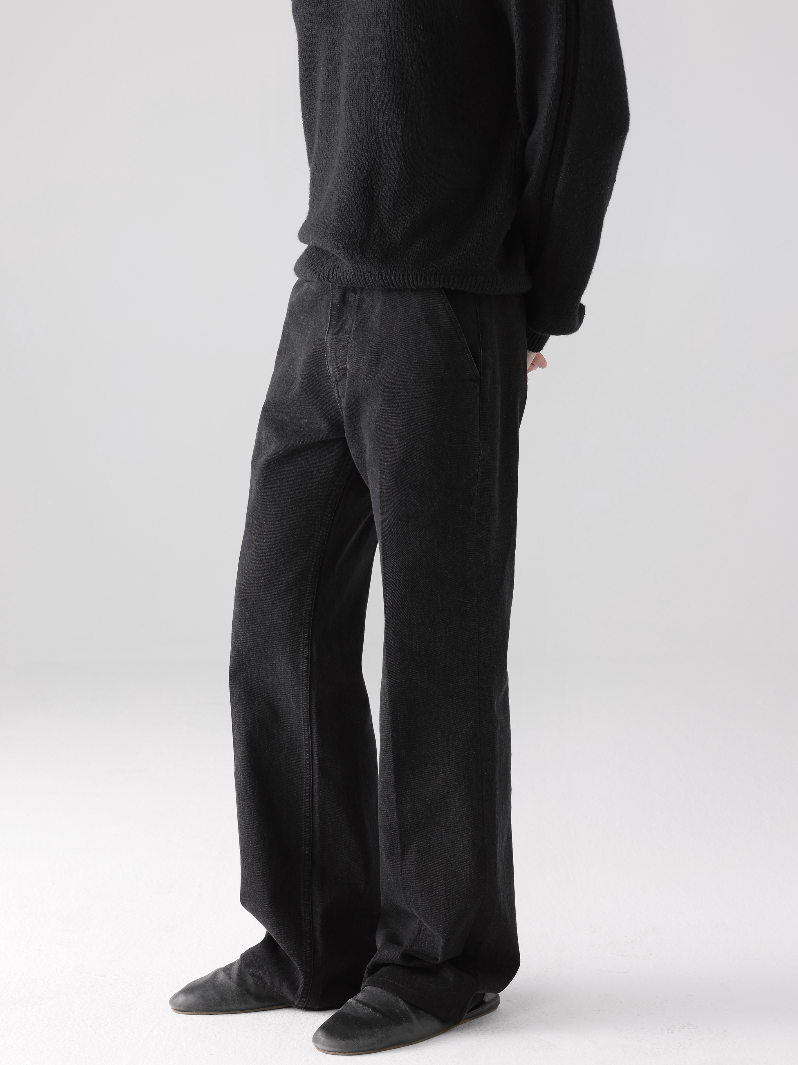 Holymen | Italian Candiani Carbon Black Washed Riri Zipper Straight-Leg Jeans