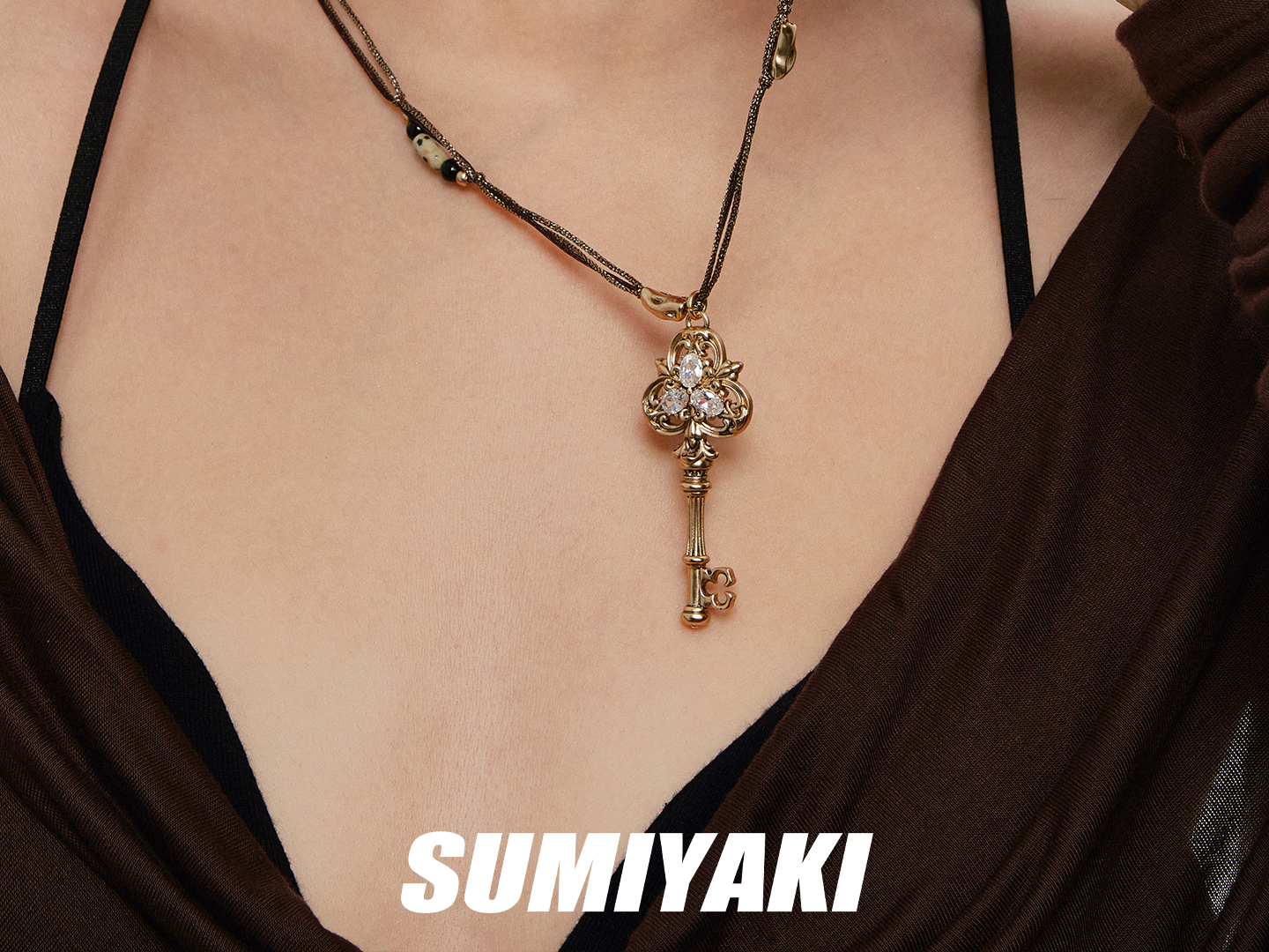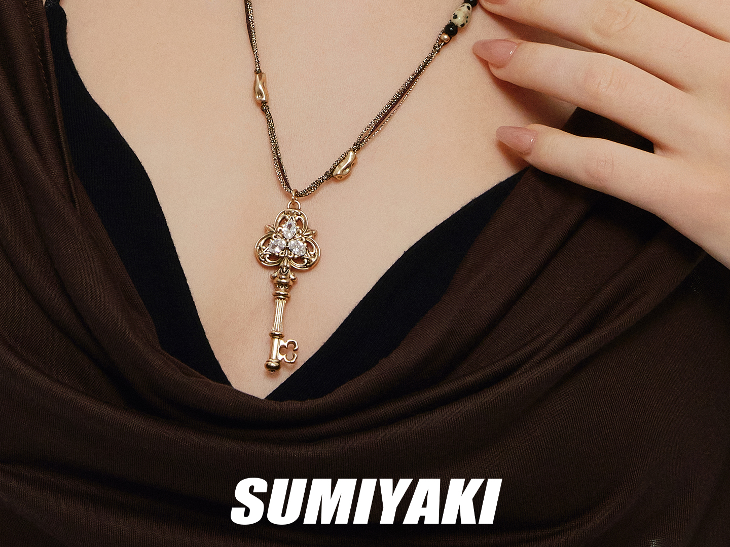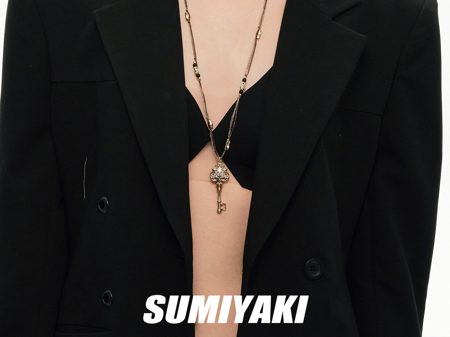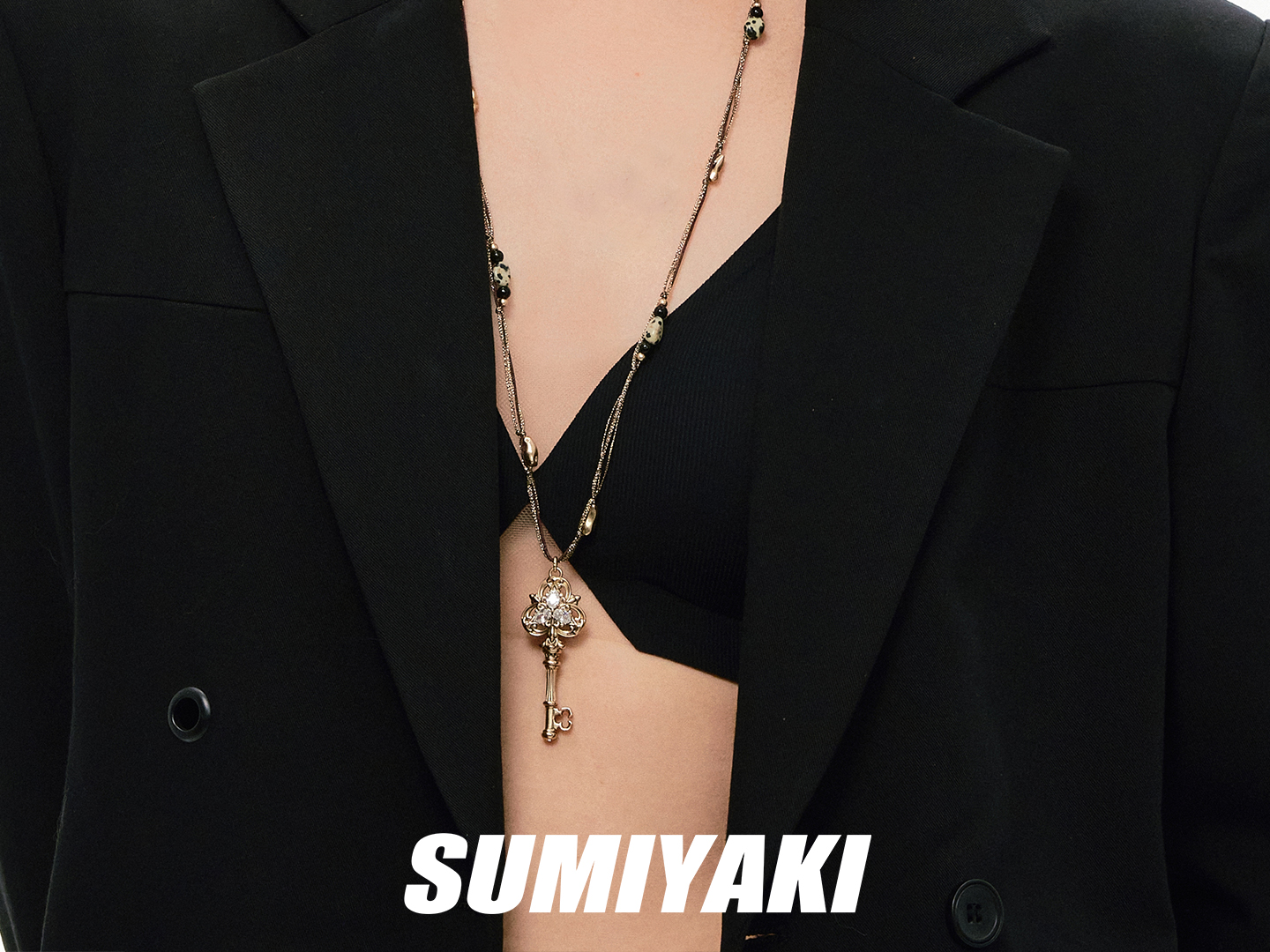 Sumiyaki Love Lock Series Embossed Key Beaded Necklace Vintage Sweater Chain for Women