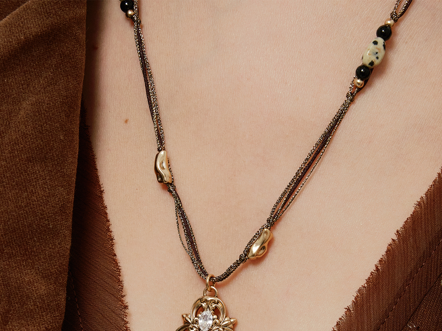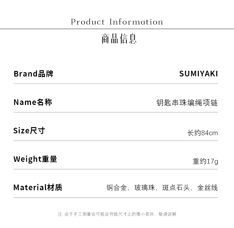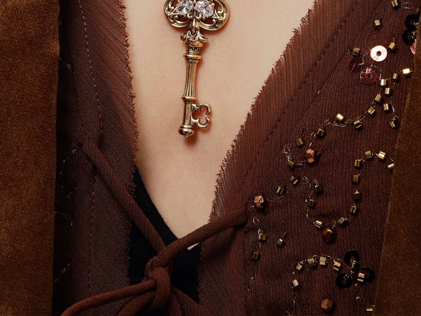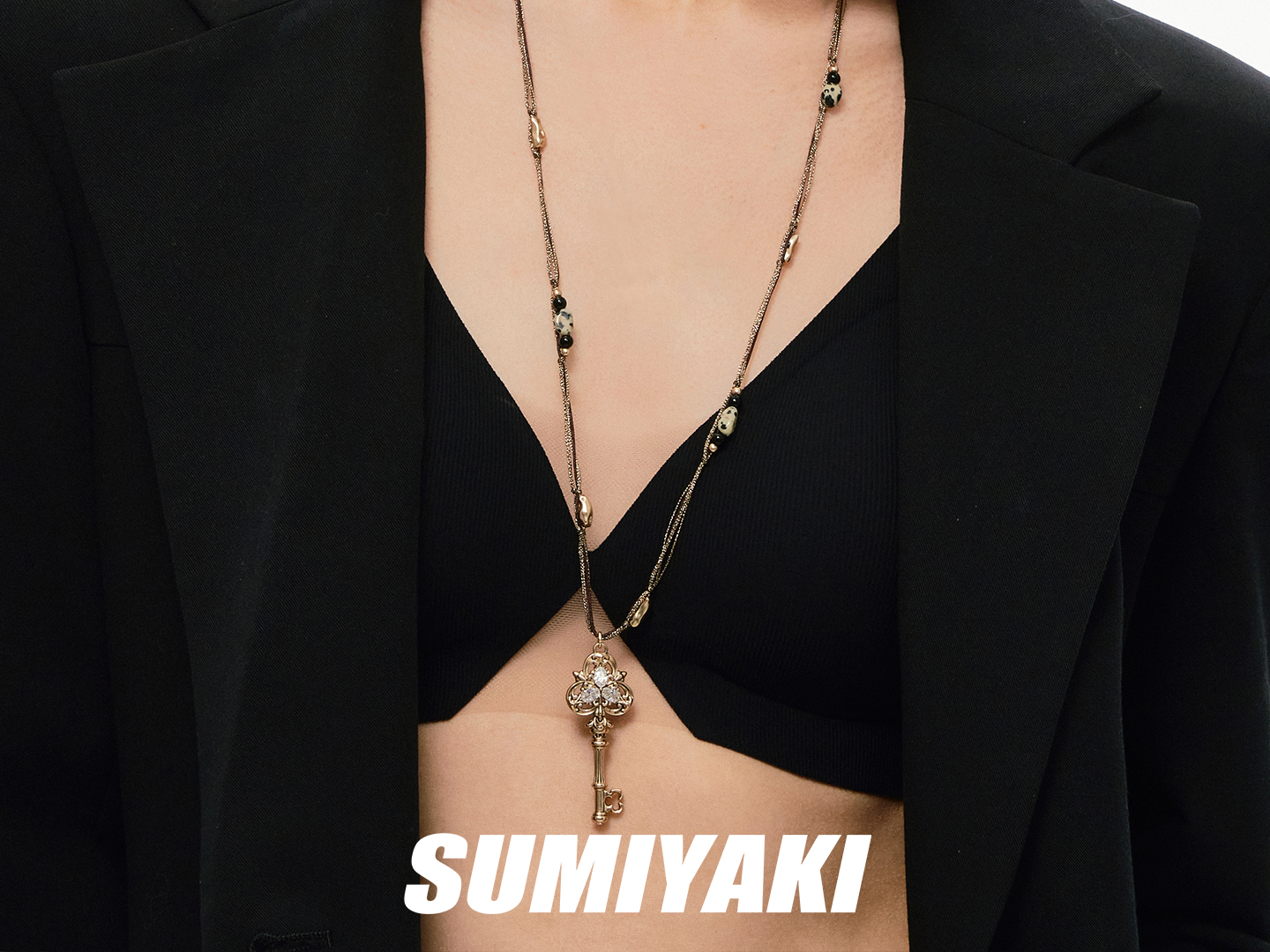 Sumiyaki Love Lock Series Embossed Key Beaded Necklace Vintage Sweater Chain for Women