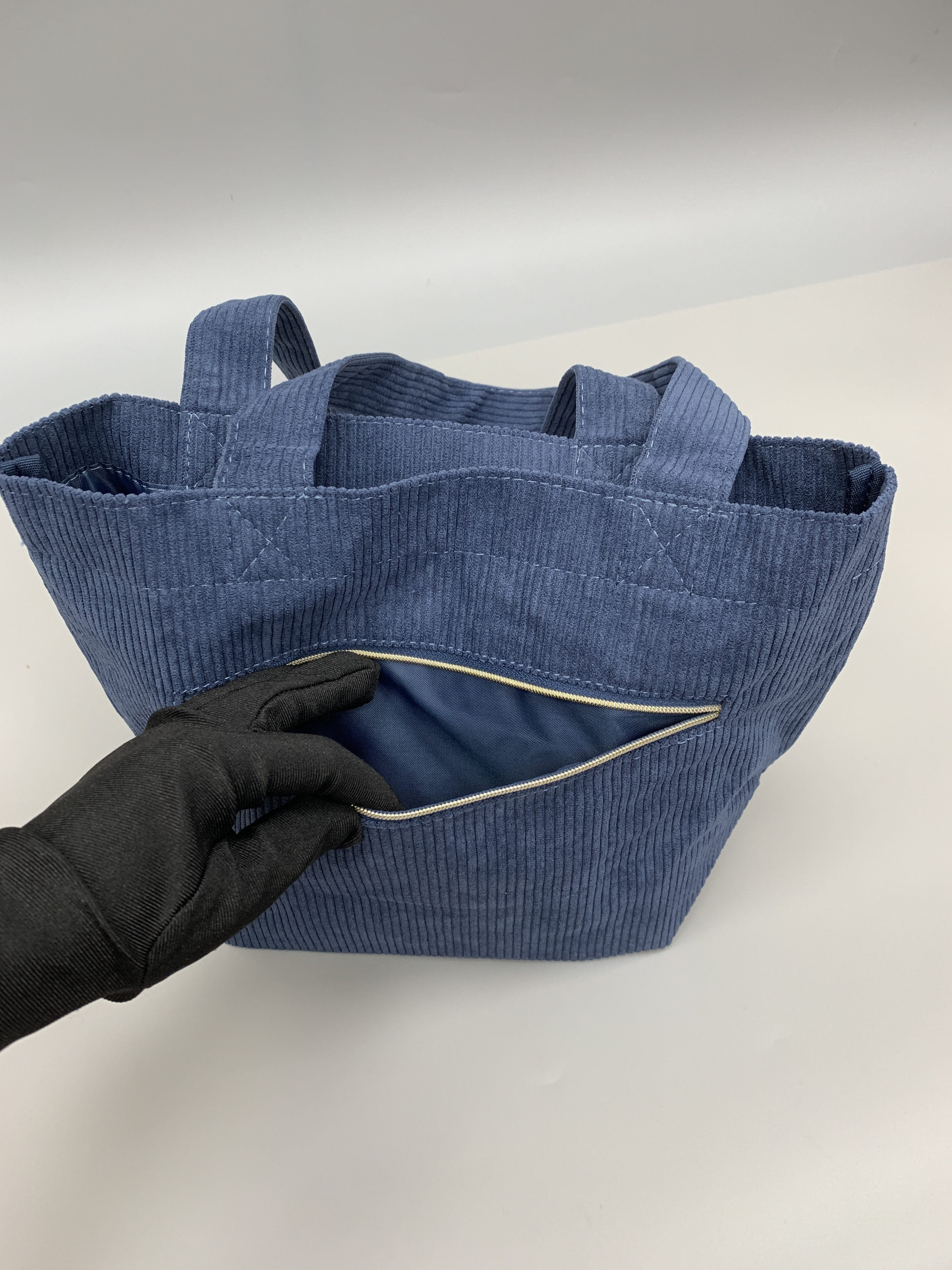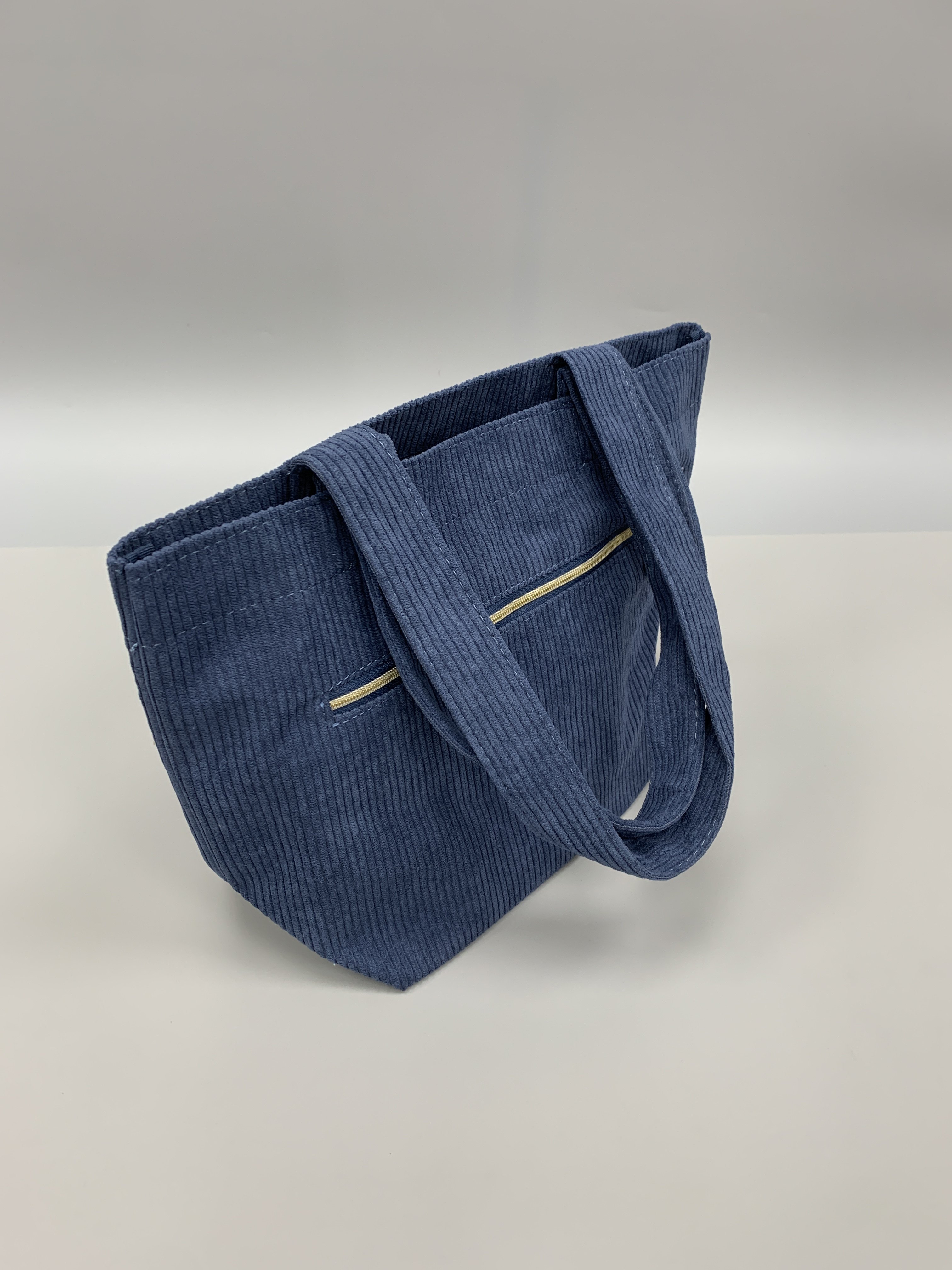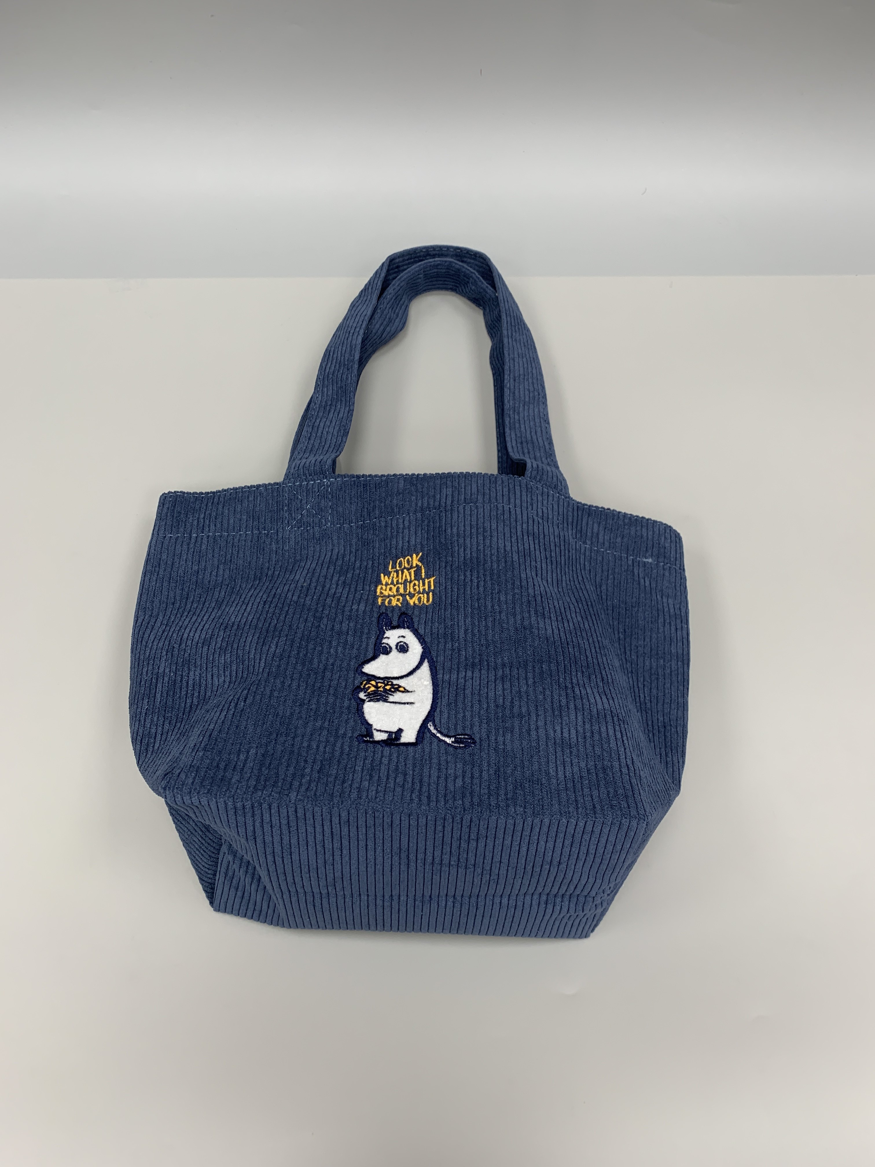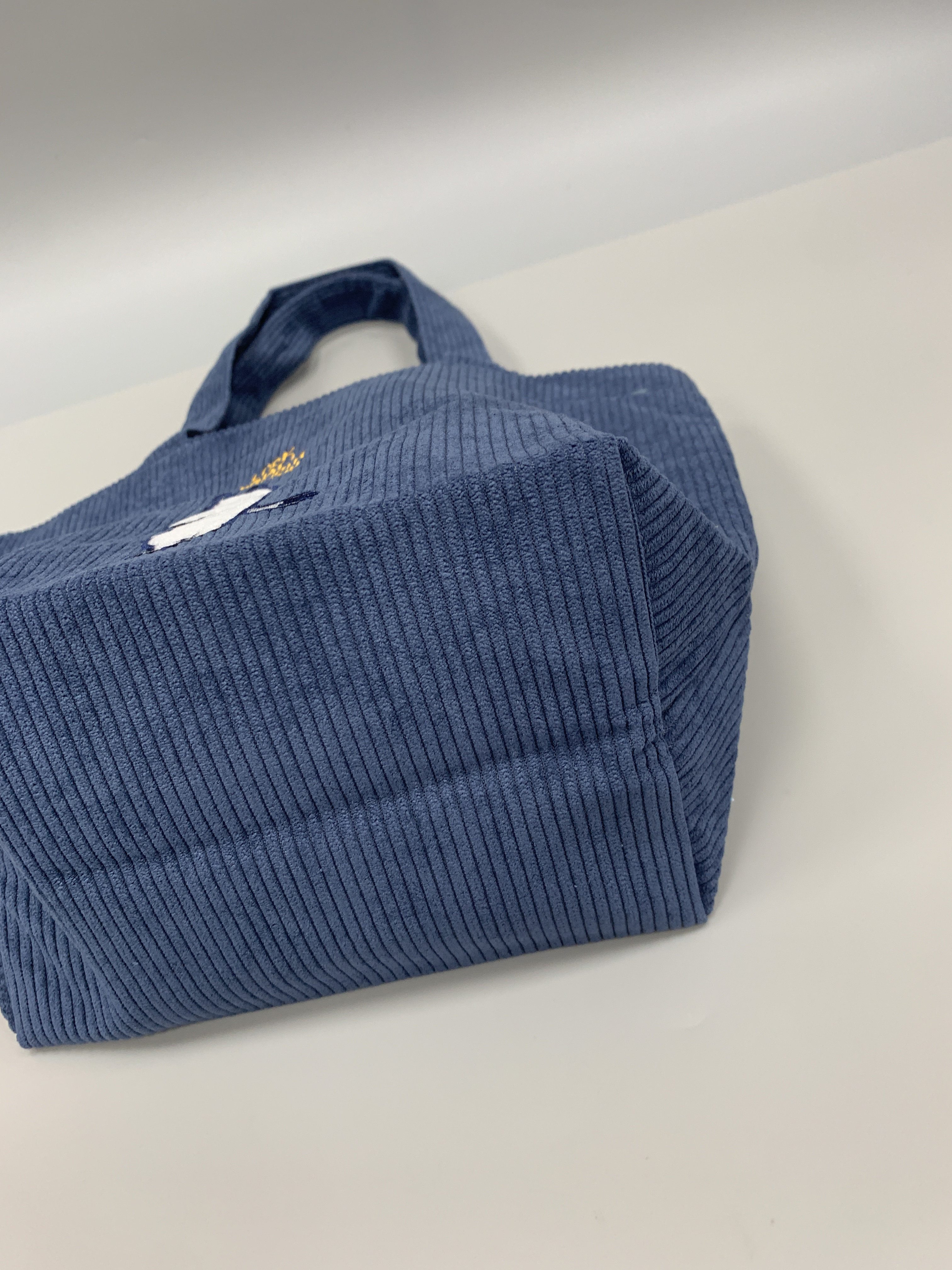 Cute Cartoon Corduroy Embroidered Hippo Elf Small Striped Shoulder Bag Tote Shopping Bag for Women