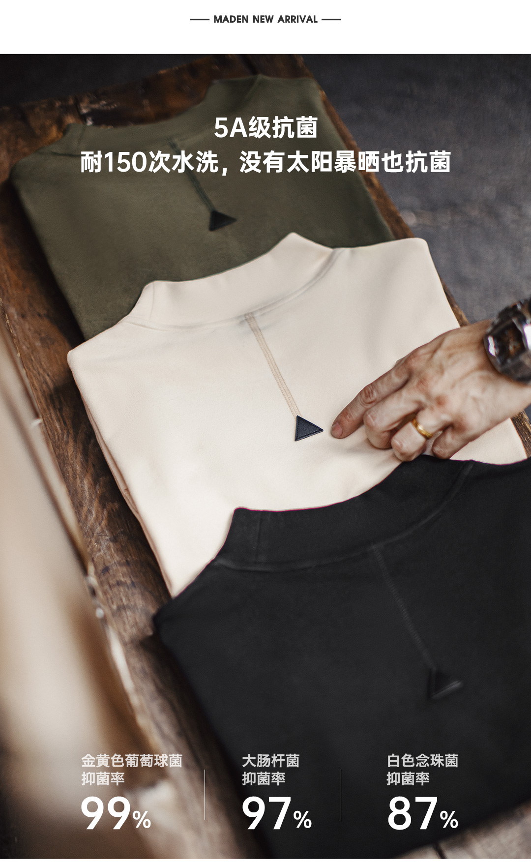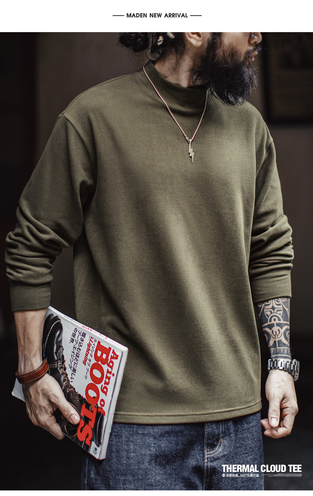 Madden Workwear Casual Half-High Collar Long-Sleeve Base Layer Solid Color Thermal Underwear Thickened Anti-Static Inner Wear for Men