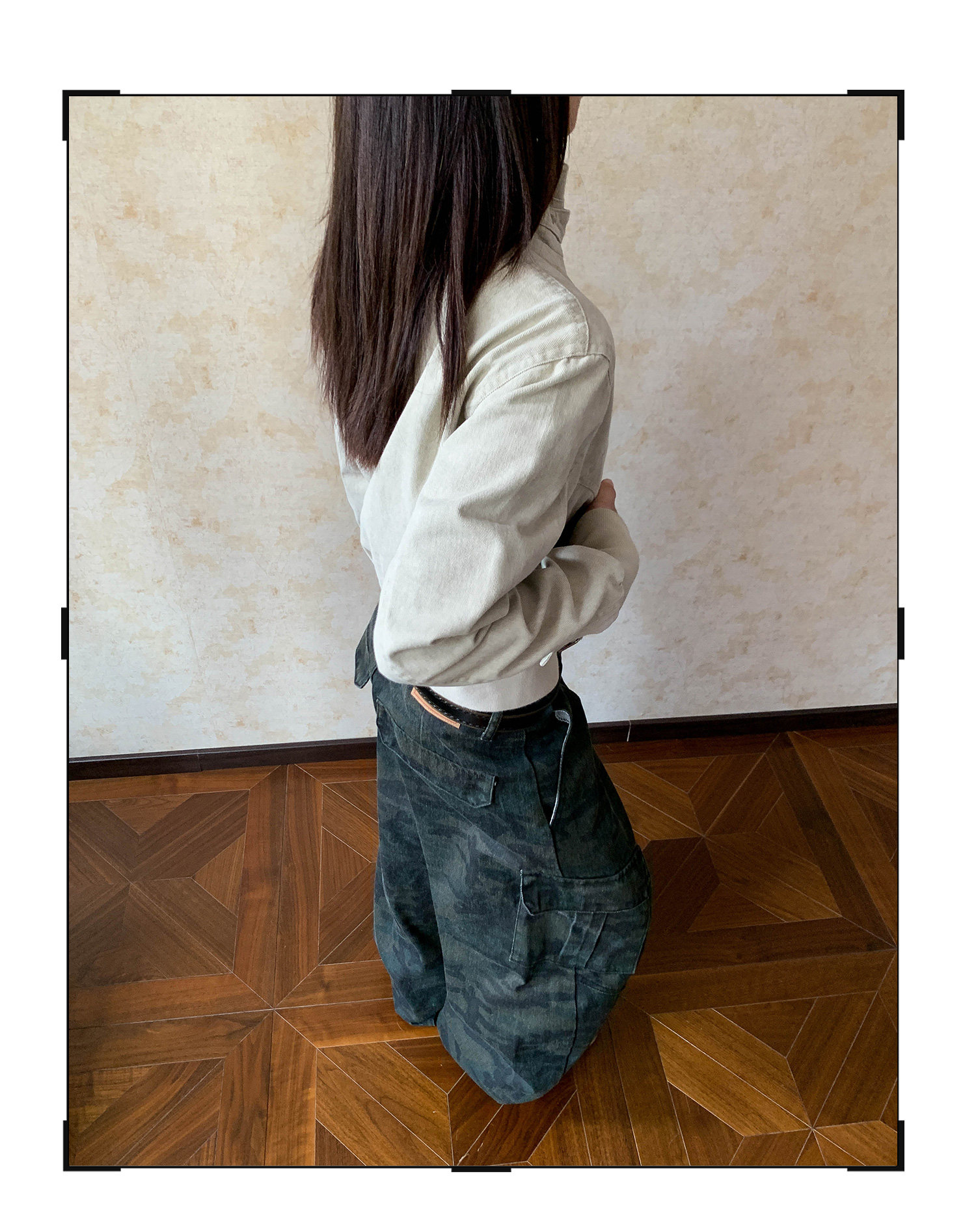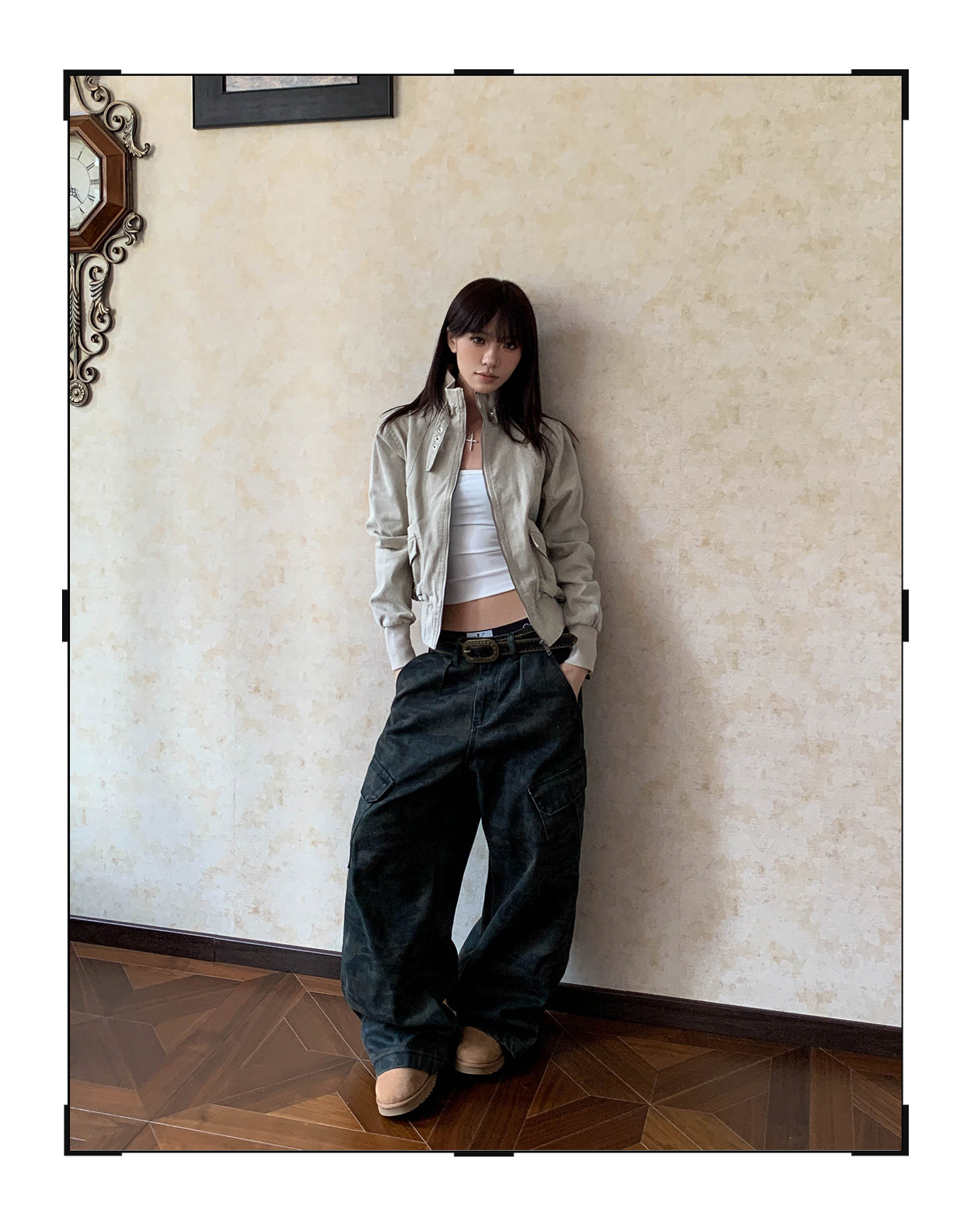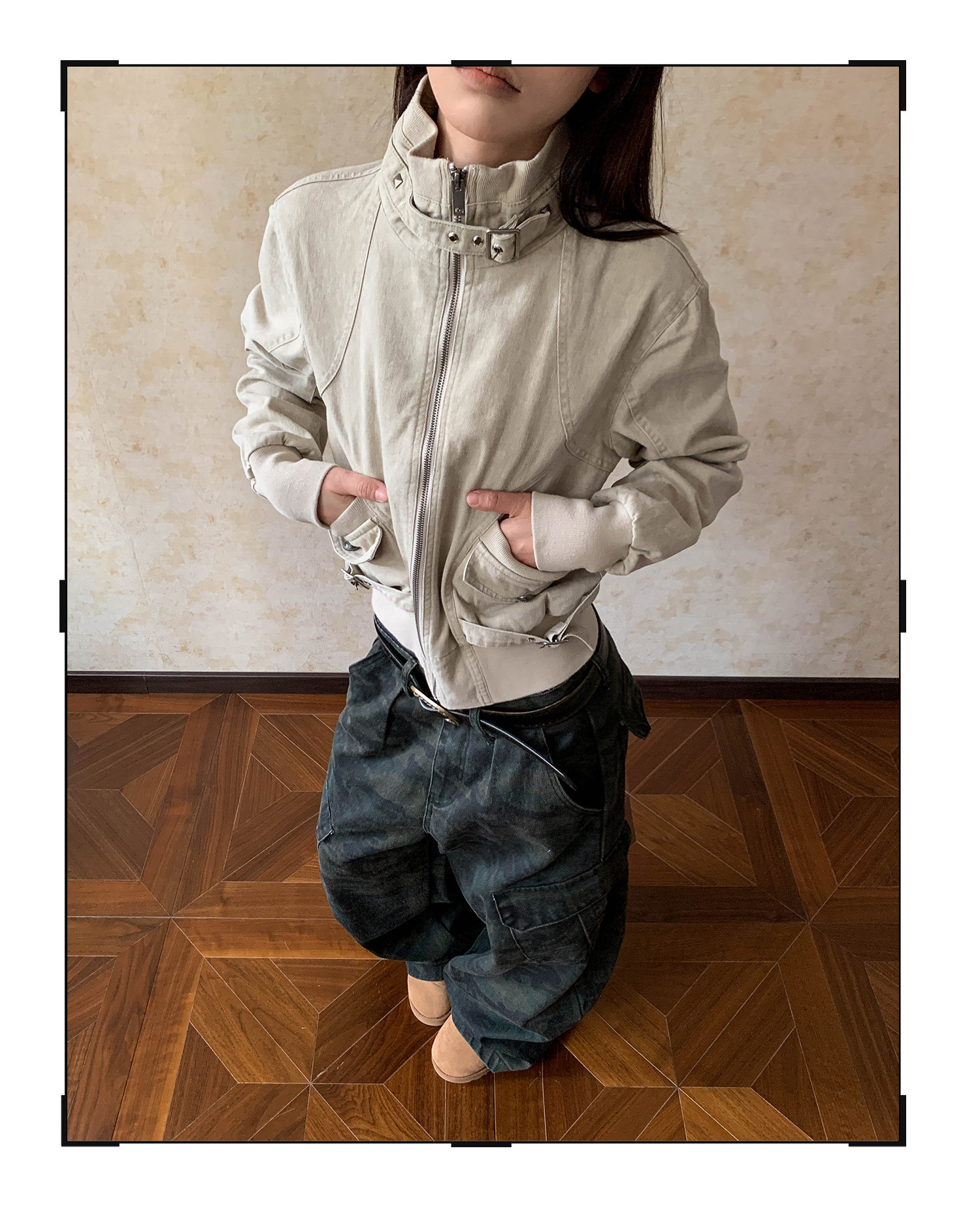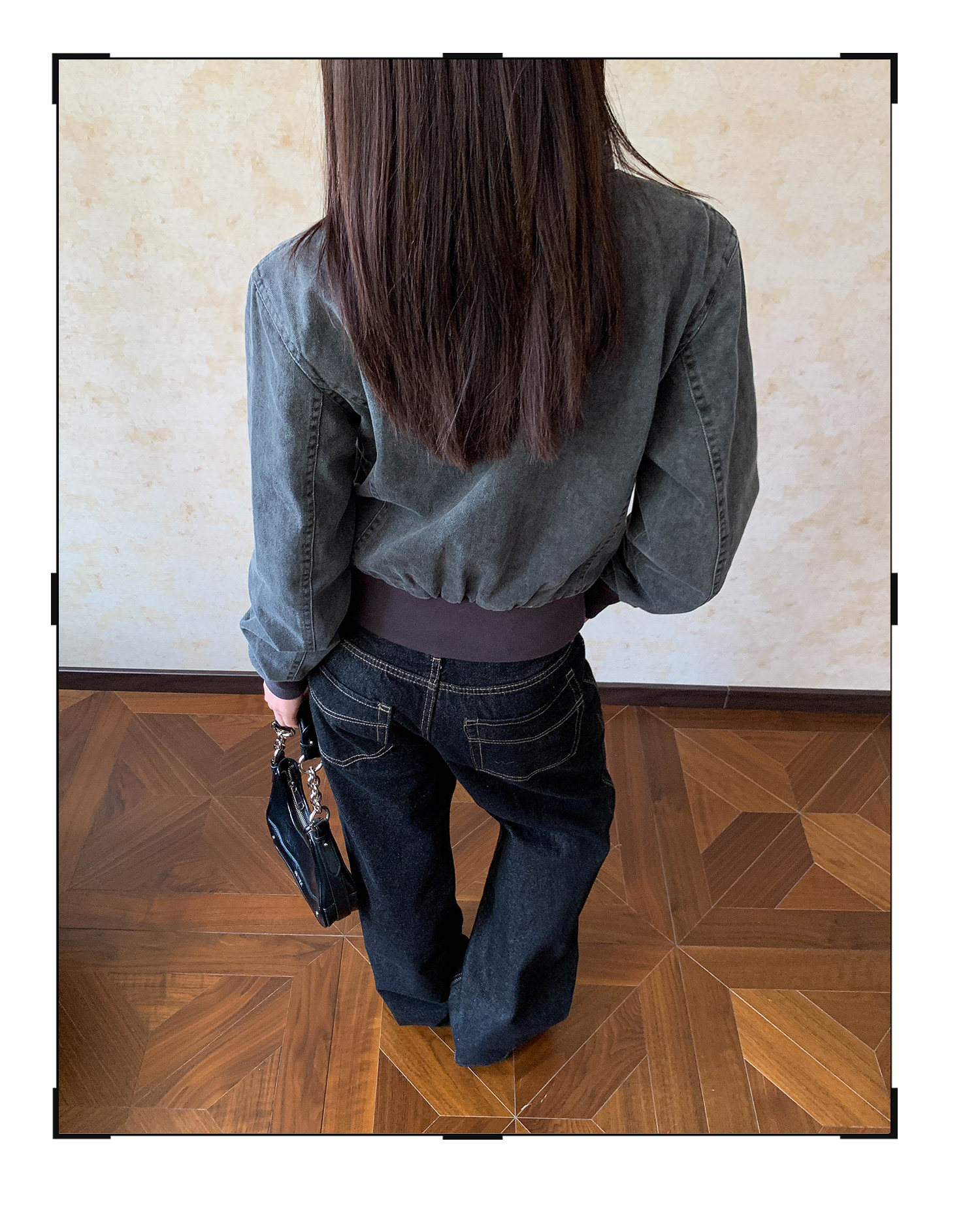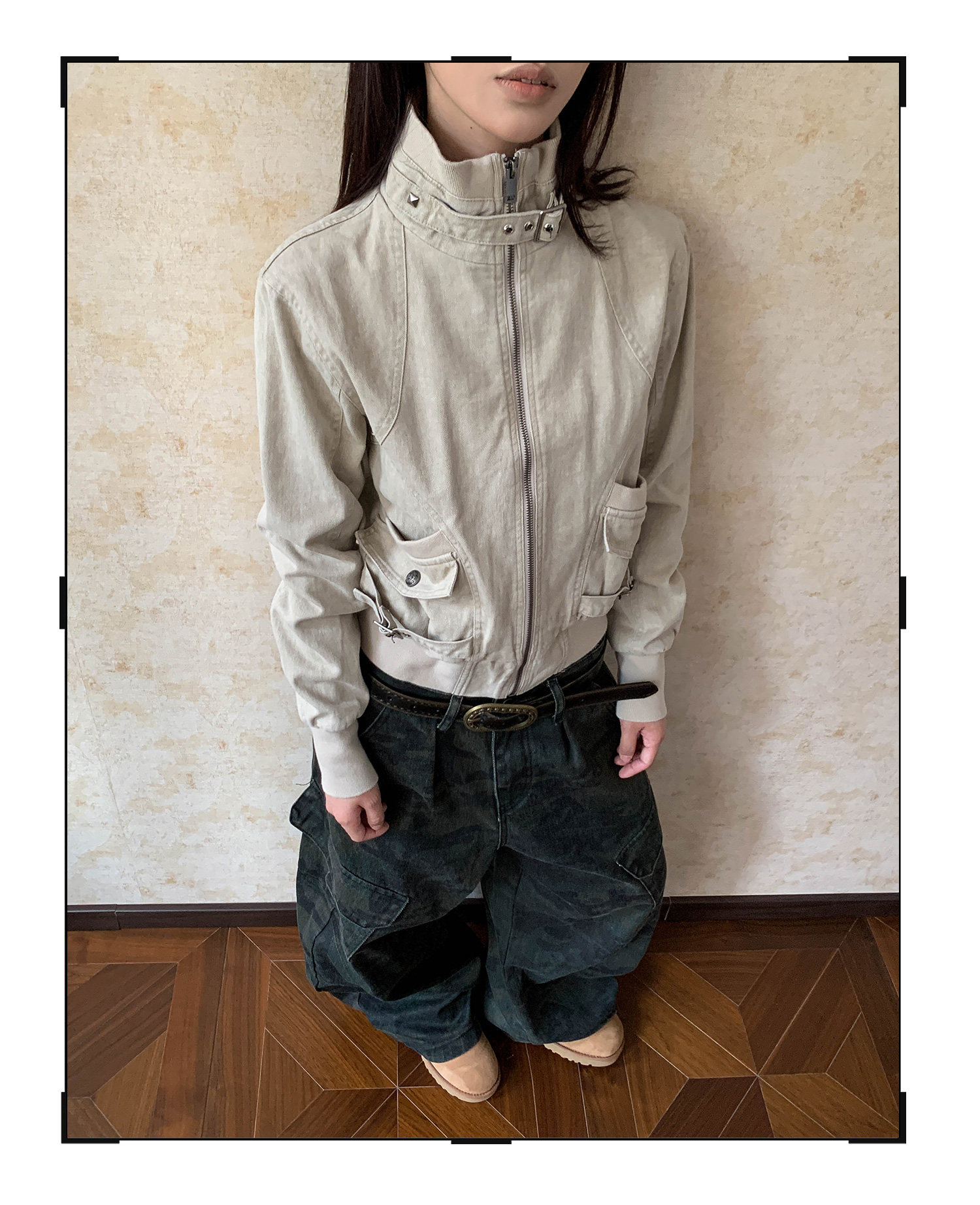 Apocket American-Style Washed Vintage Deconstructed Design Workwear Jacket with Stand Collar, Slim Fit, Short Coat for Women