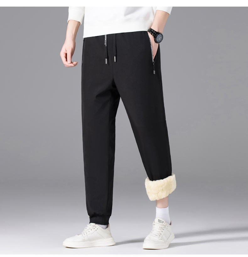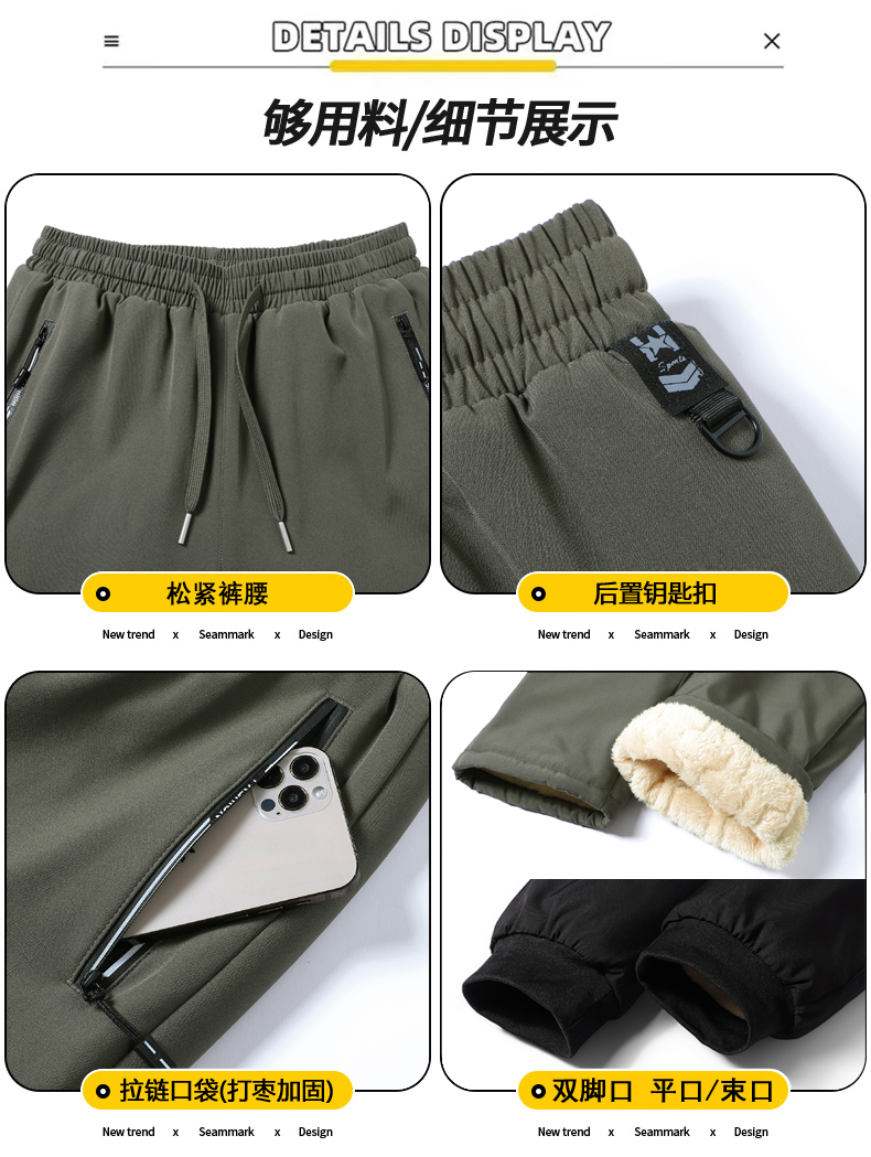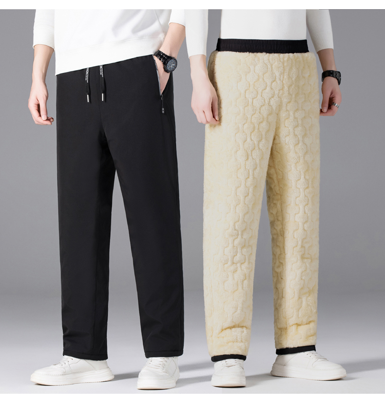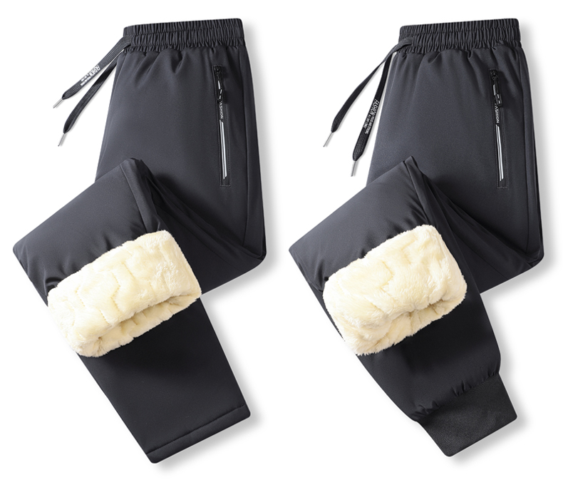 Kangaroo Men's Winter Fleece-Lined Thick Warm Snow Pants for Northeast, Windproof and Waterproof Lamb Wool Pants for Men