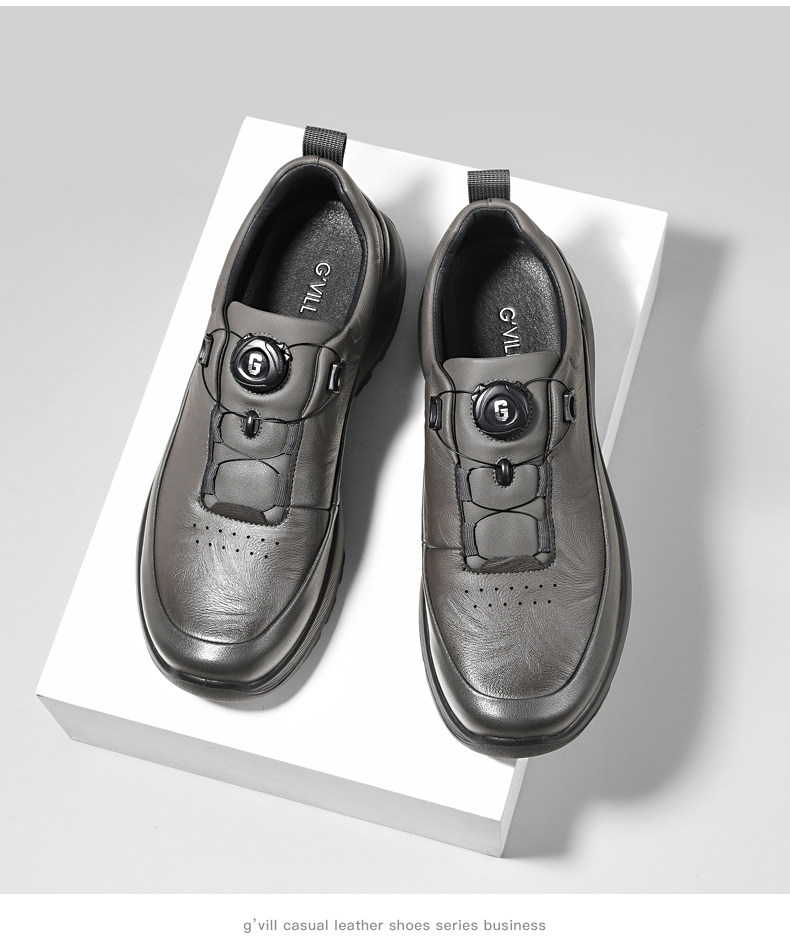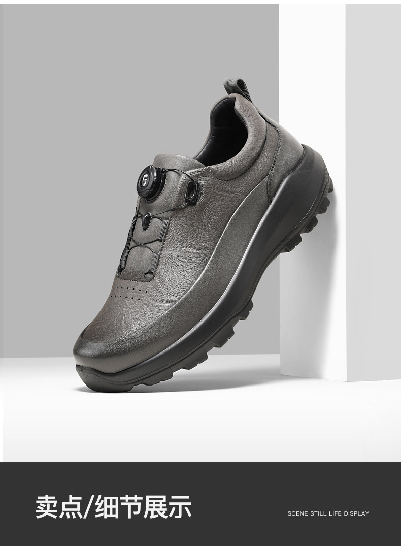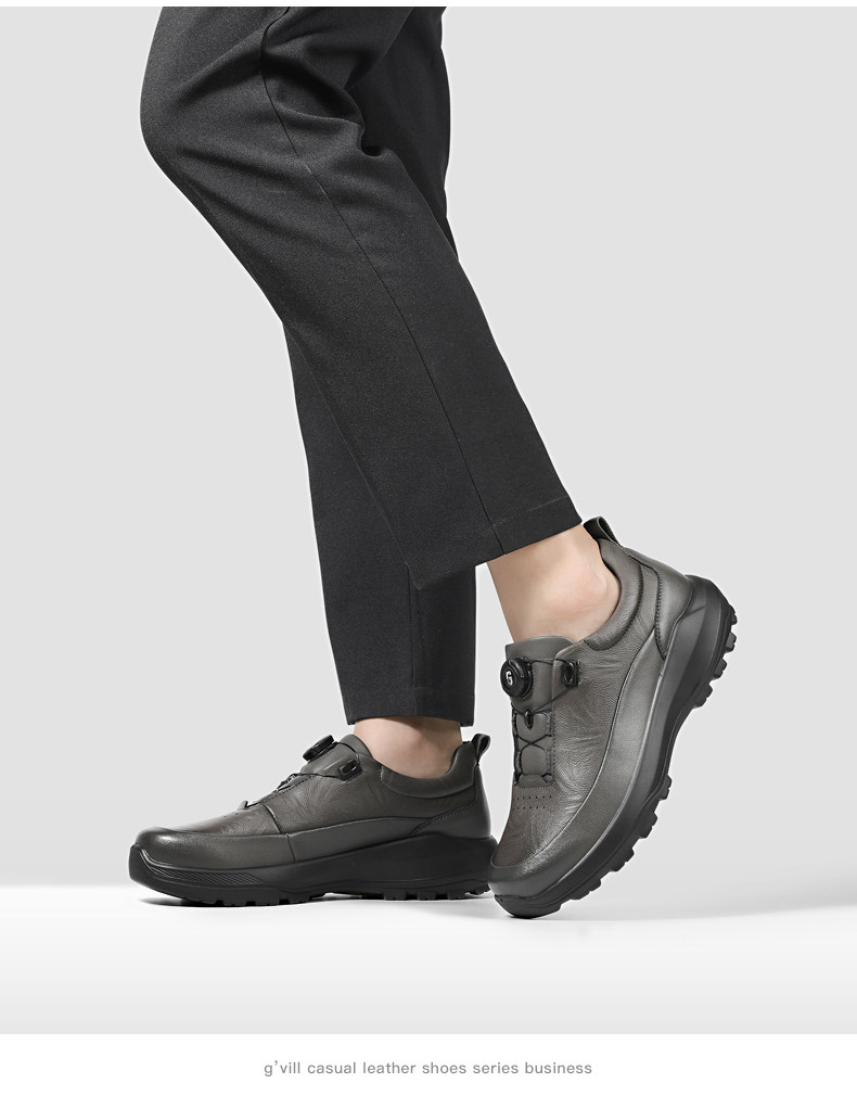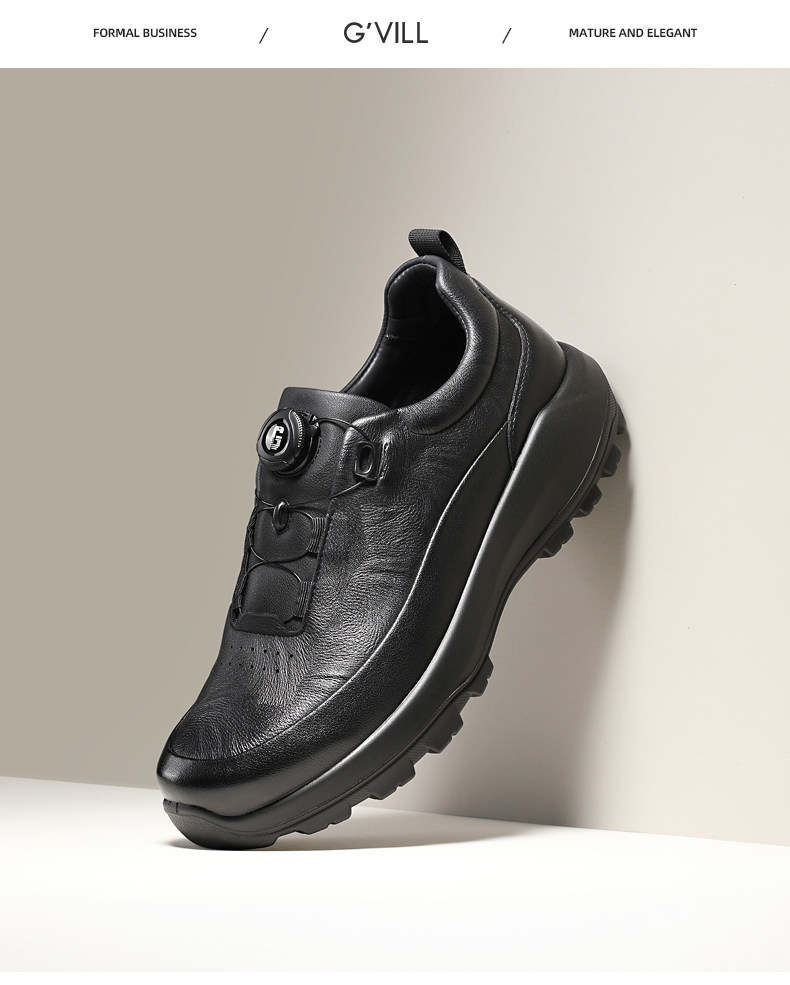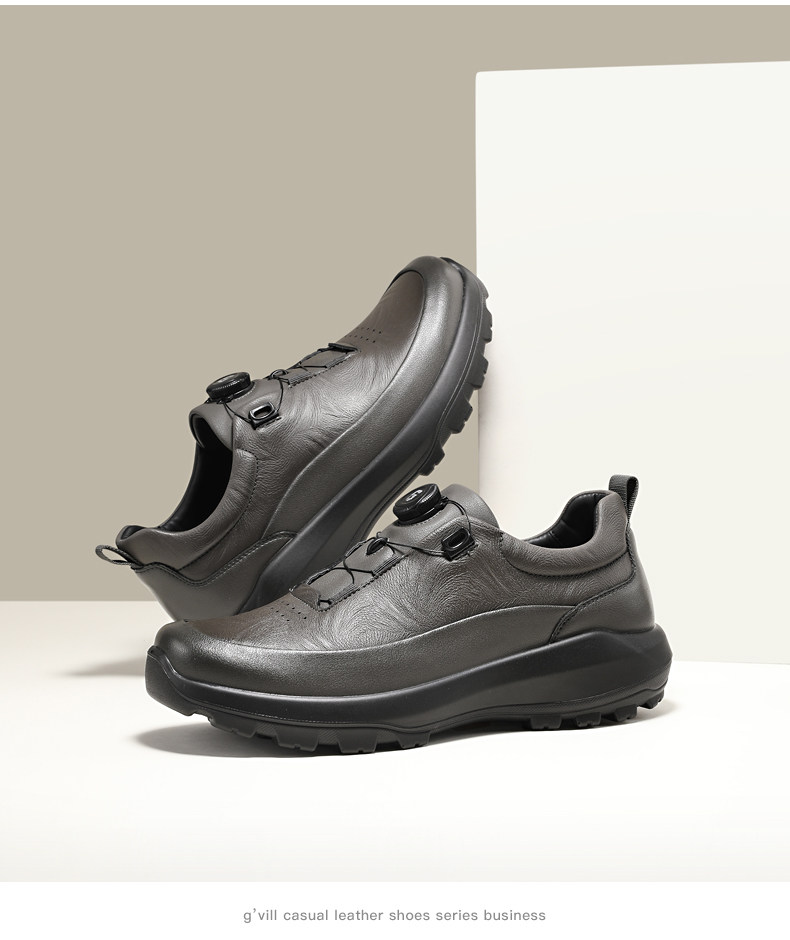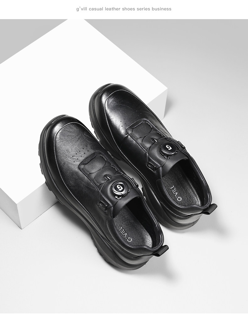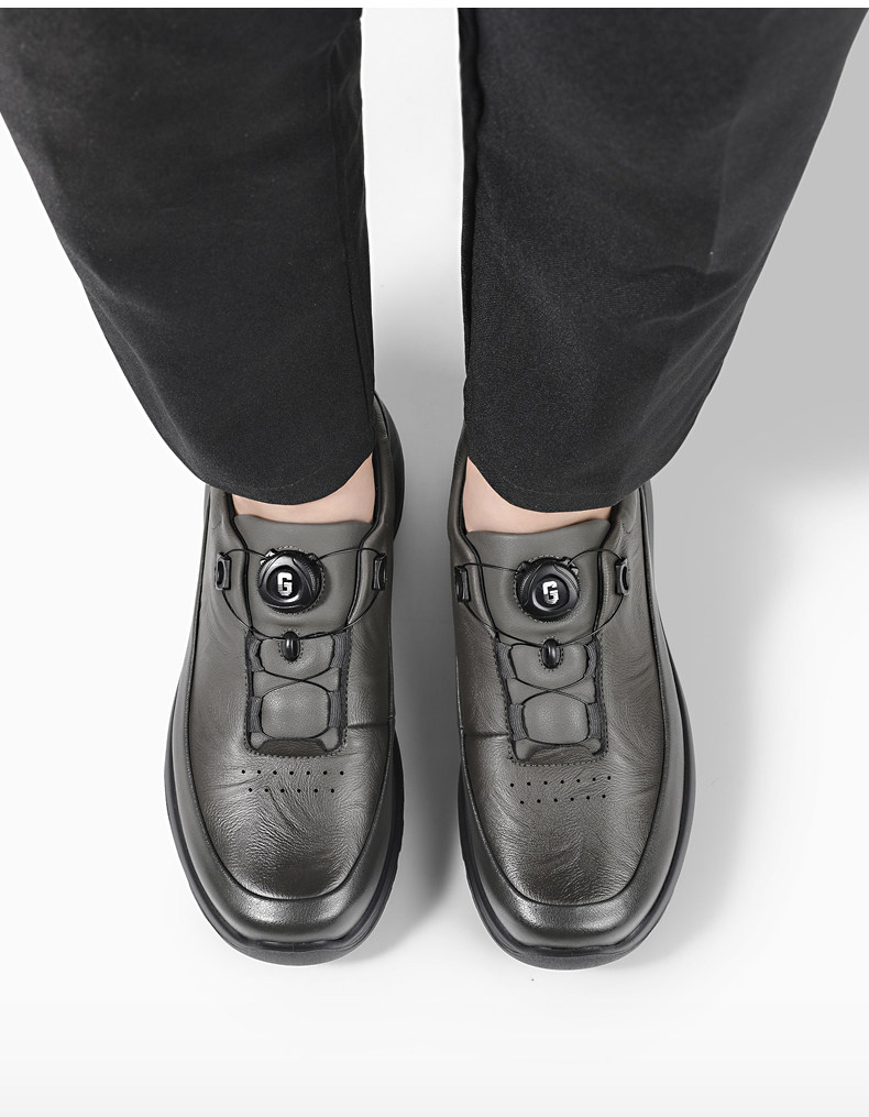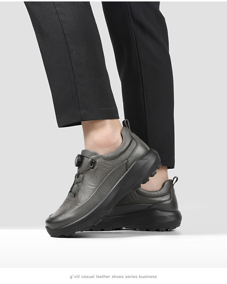 Guizhibu 2025 New Men's Thick-Soled Height-Increasing Lightweight Genuine Leather Casual Shoes with Rotary Buckle, Comfortable Outdoor Men's Shoes