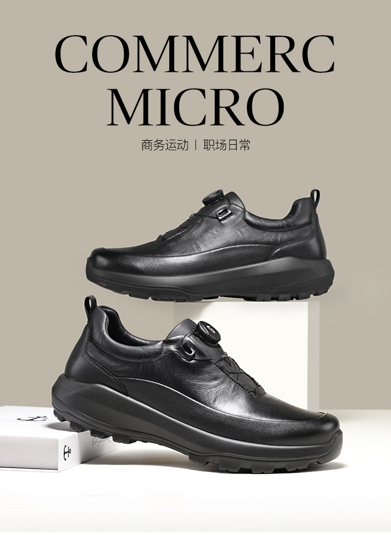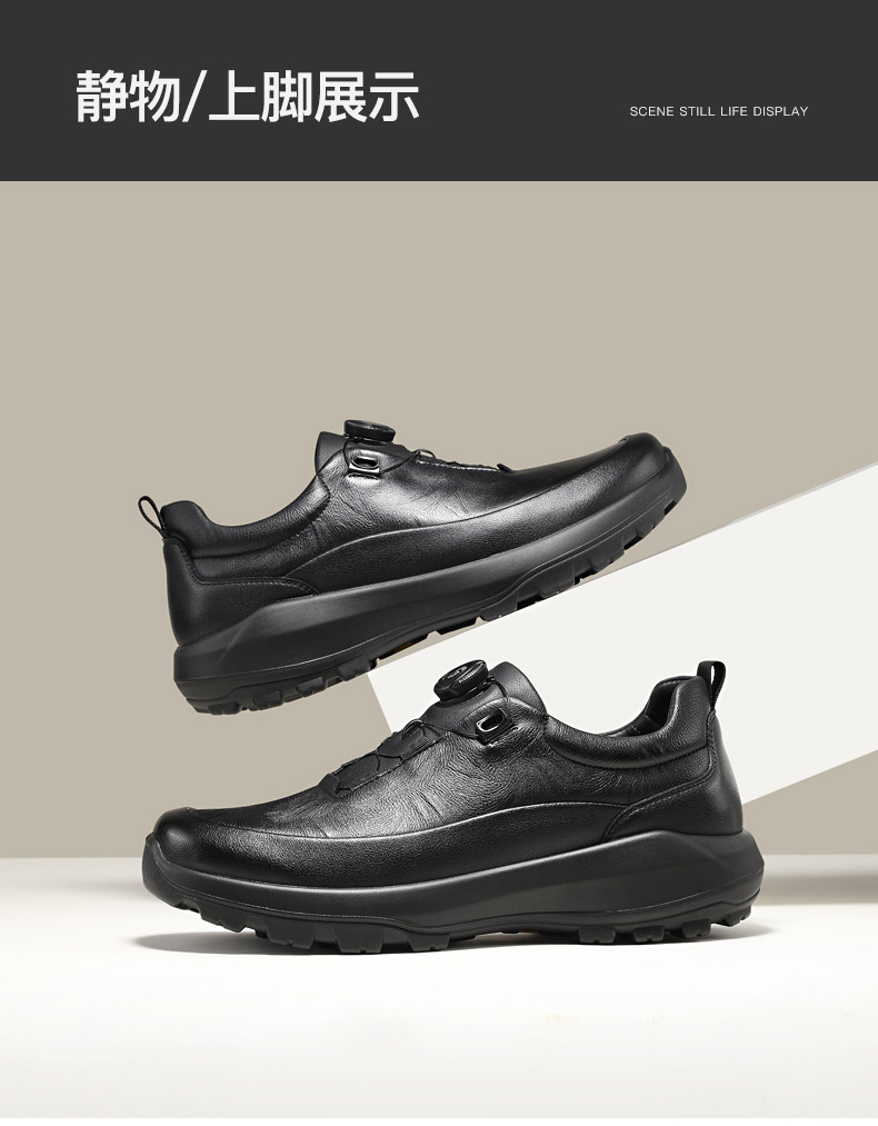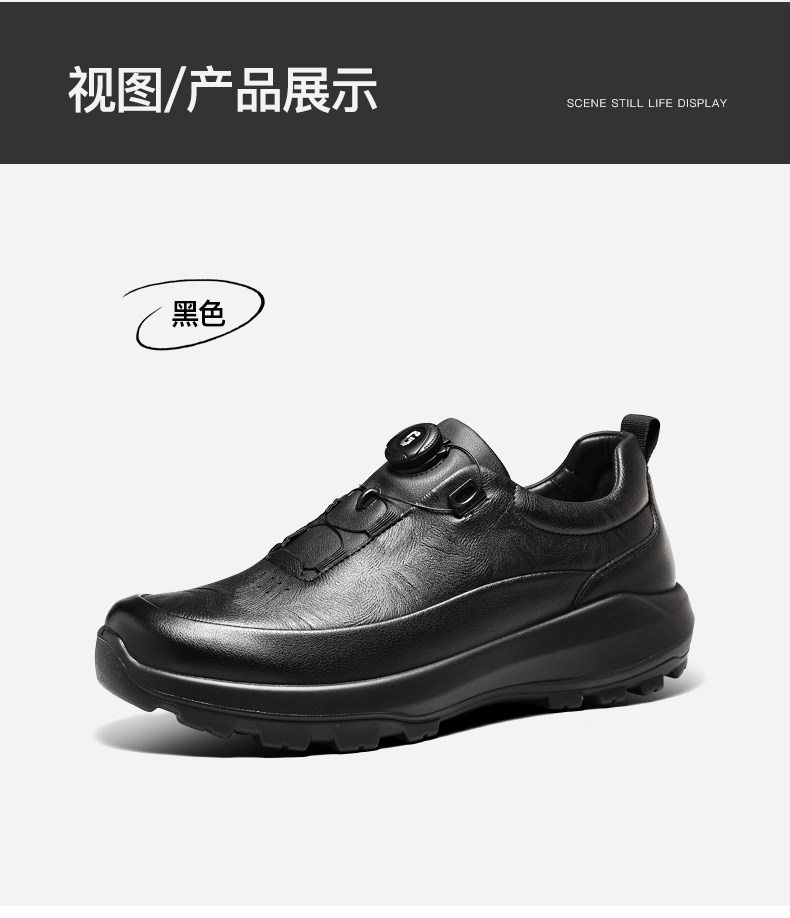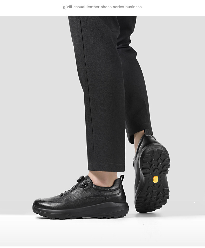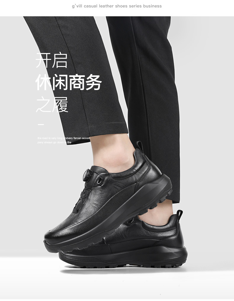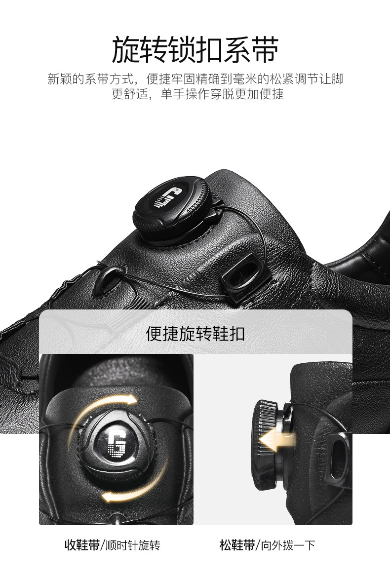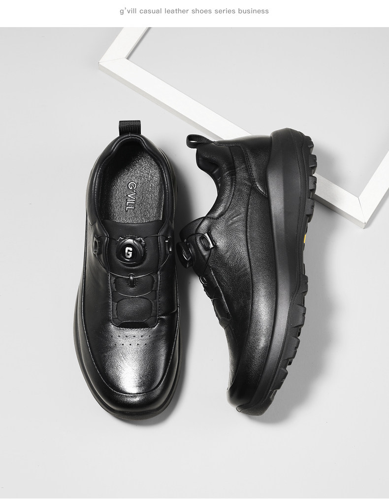 Guizhibu 2025 New Men's Thick-Soled Height-Increasing Lightweight Genuine Leather Casual Shoes with Rotary Buckle, Comfortable Outdoor Men's Shoes