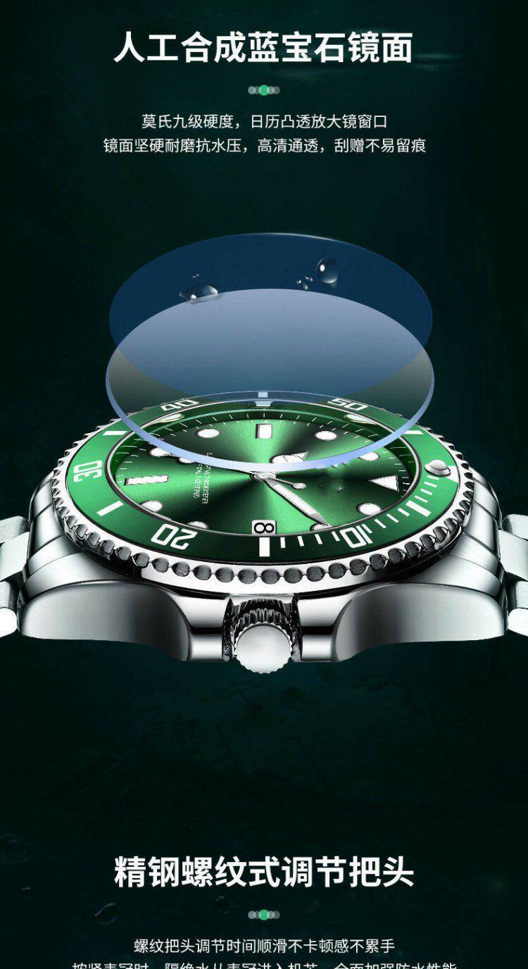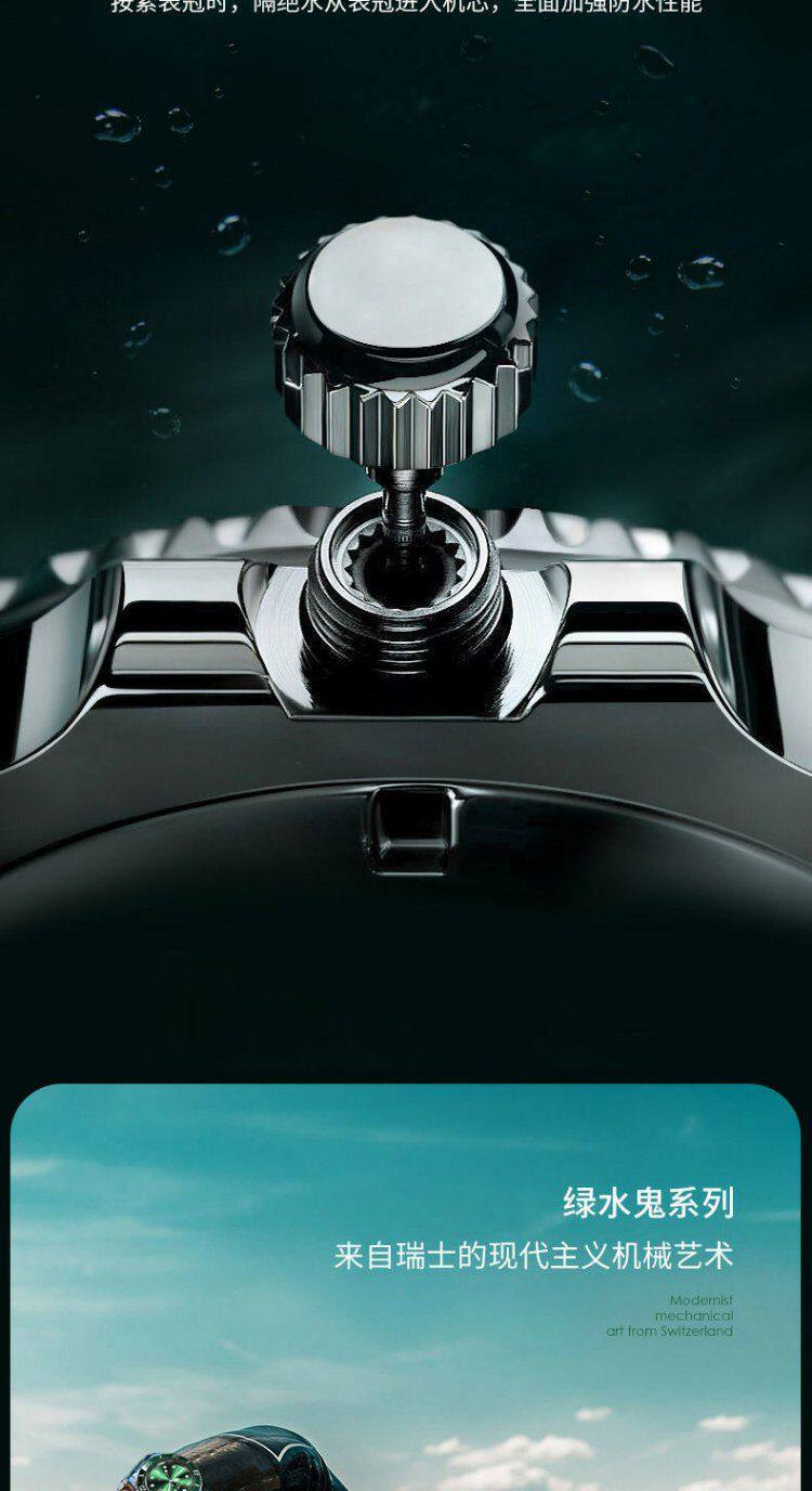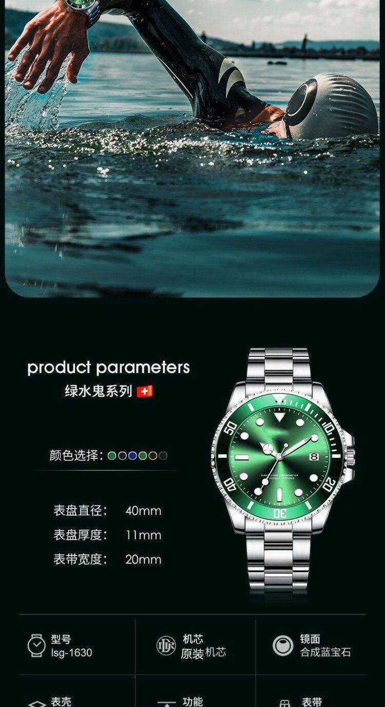 Swiss Imported Green Submariner Automatic Watch for Men, Skeleton Mechanical Watch, Luminous Waterproof Black and Blue Submariner High-End Wristwatch