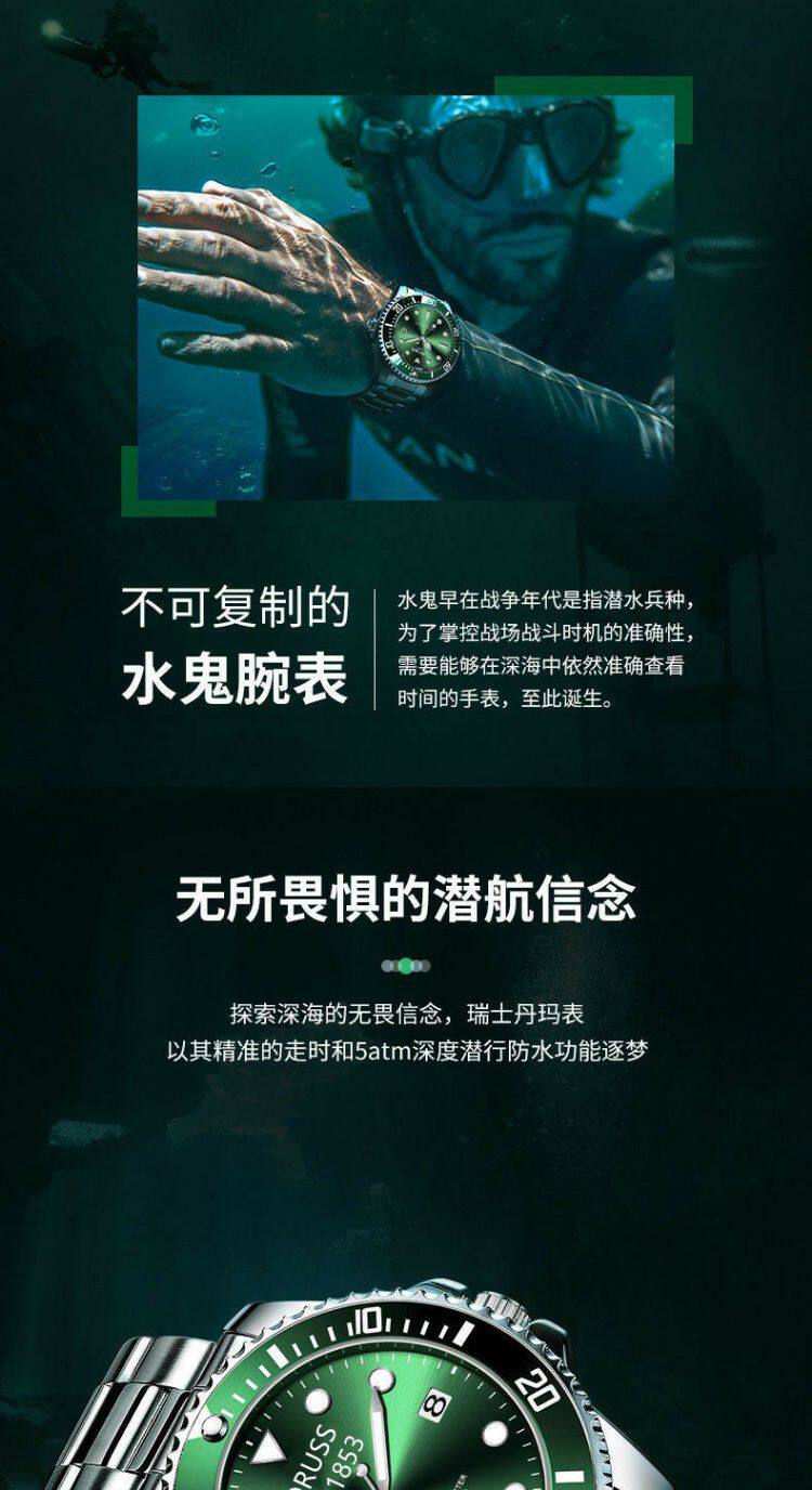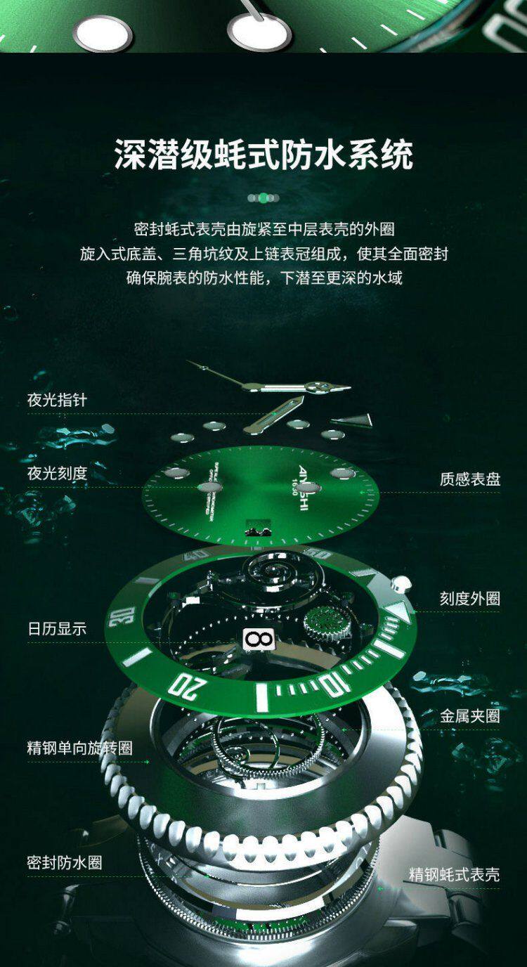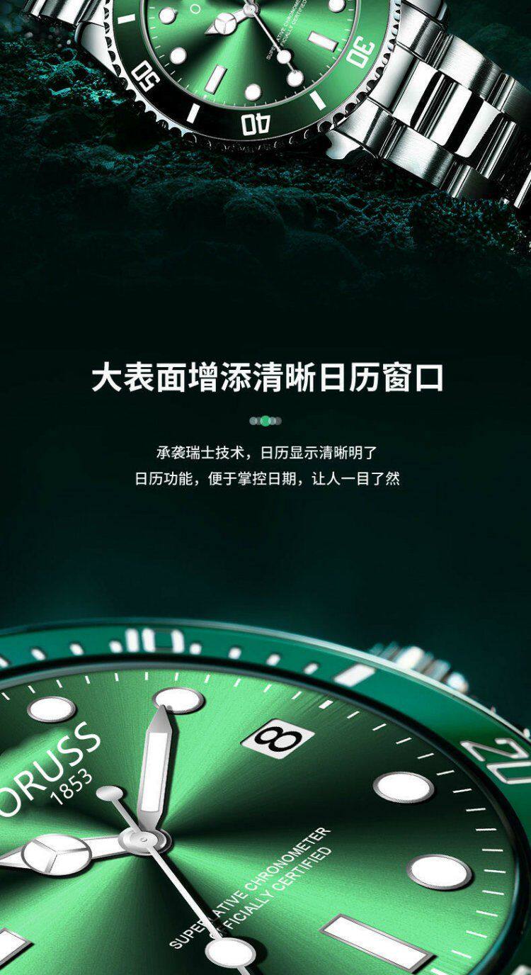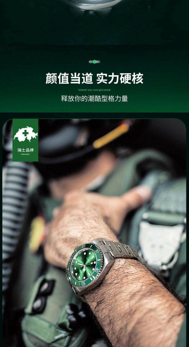 Swiss Imported Green Submariner Automatic Watch for Men, Skeleton Mechanical Watch, Luminous Waterproof Black and Blue Submariner High-End Wristwatch