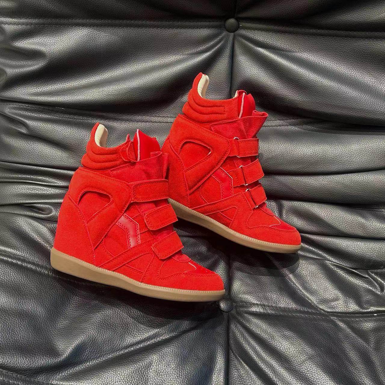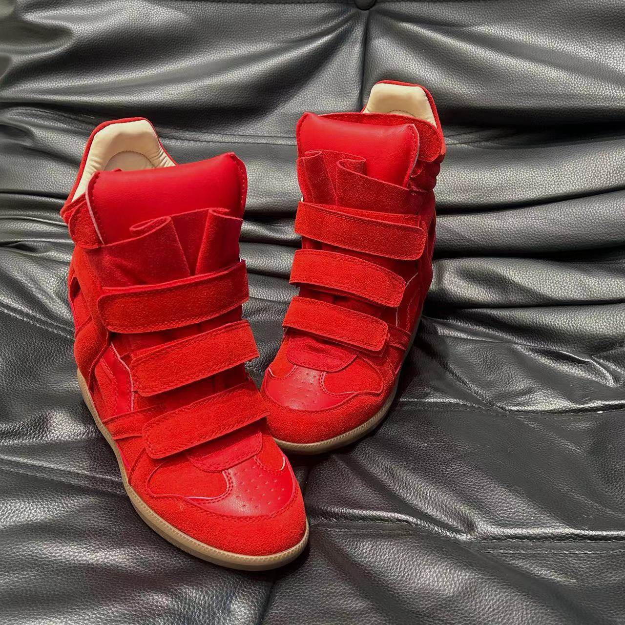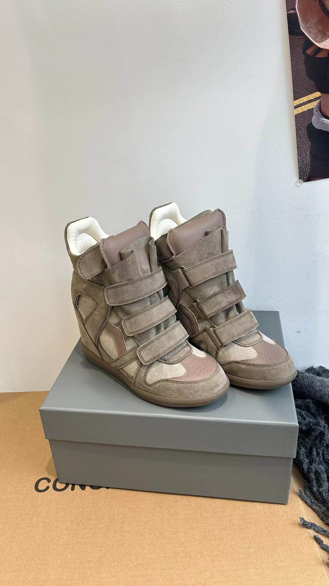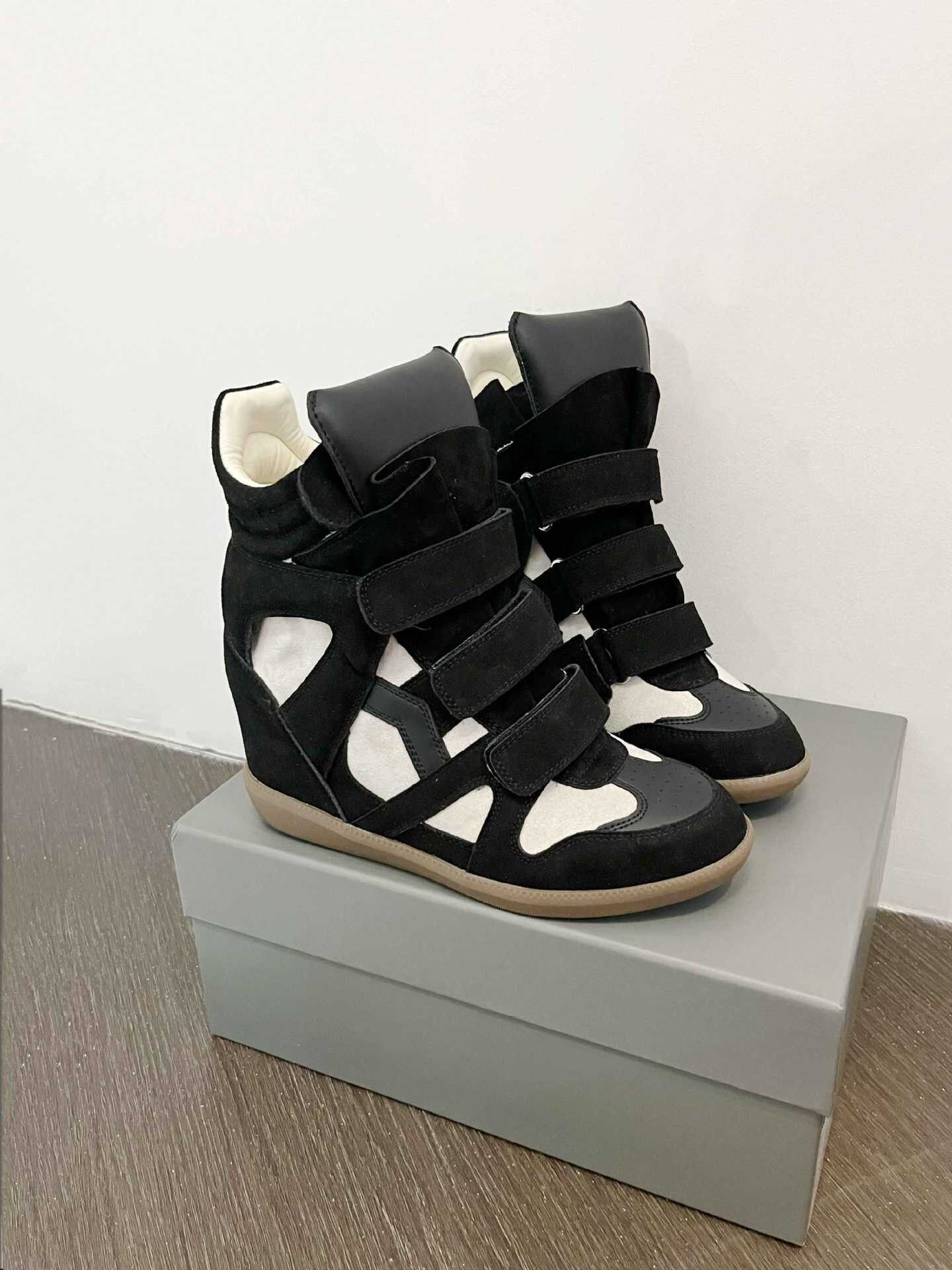 2025 Autumn/Winter Genuine Leather Thick-Soled Height-Increasing Velcro Casual Shoes High-Top Women's Versatile Height-Increasing Color-Block Sneakers