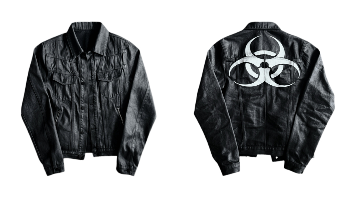 3grepublic Australia Genuine Brush Wax Heavy weight Print Denim Leather Jacket type3 jacket Trendy Visual Street