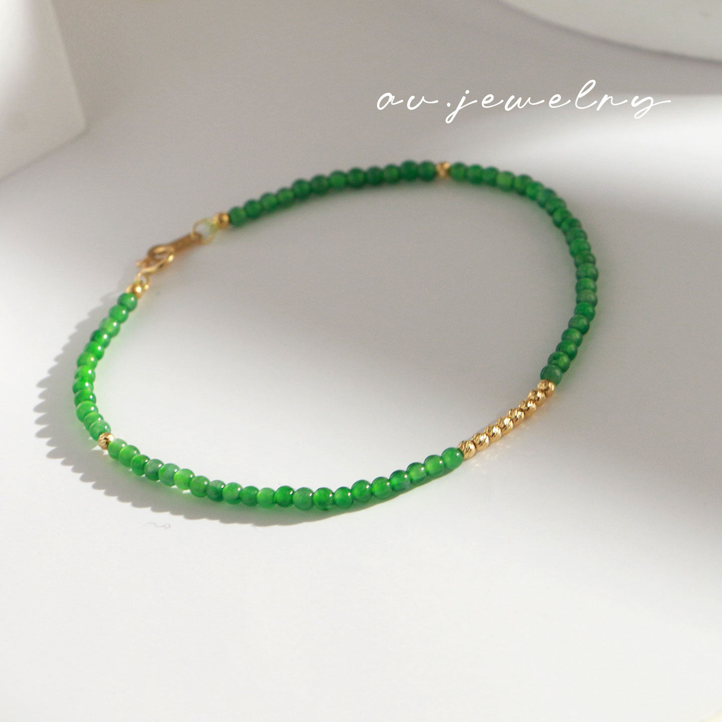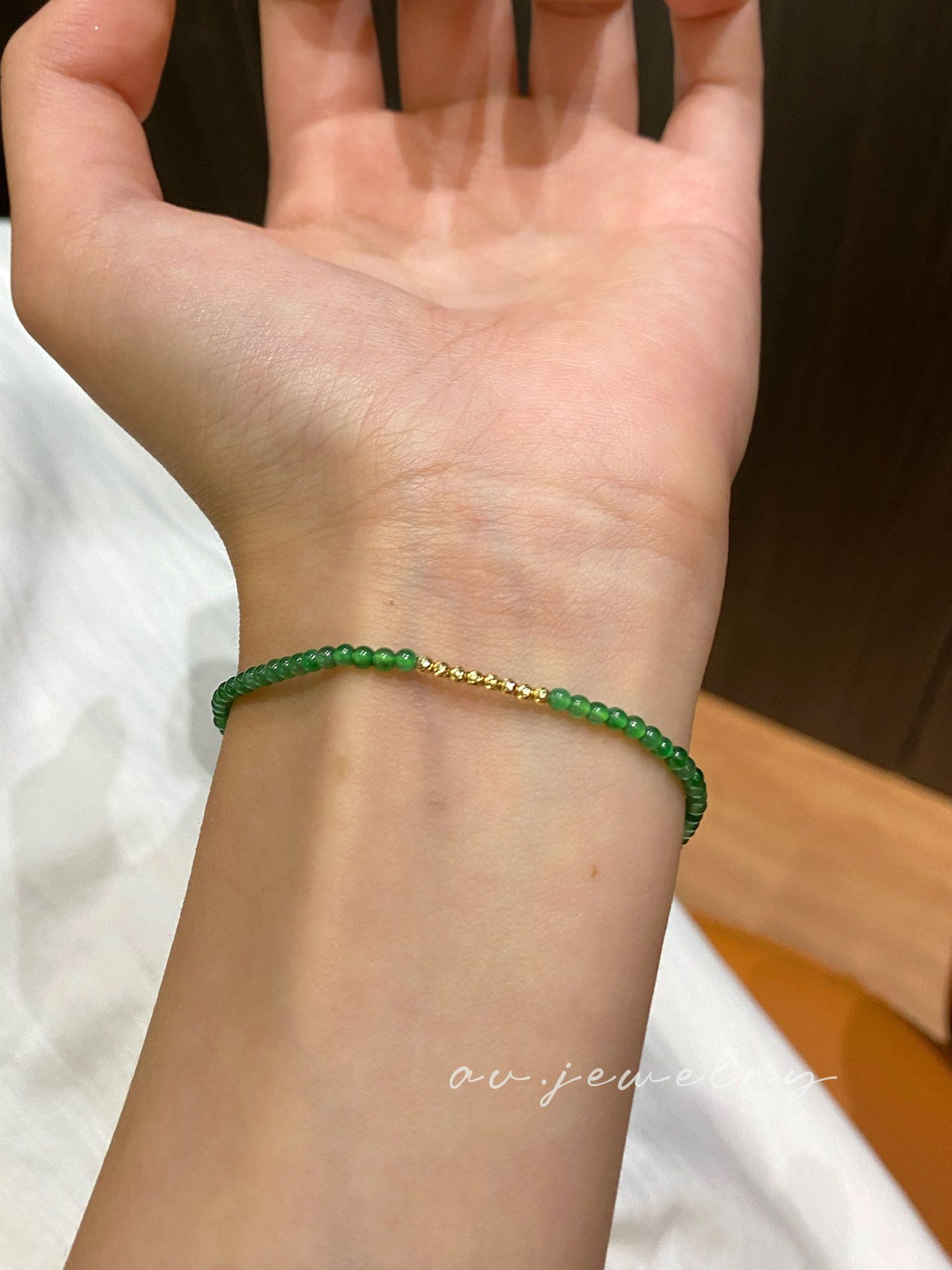 Au Natural Jade Spicy Green Bracelet 18K Real Gold Beads High-End Jewelry