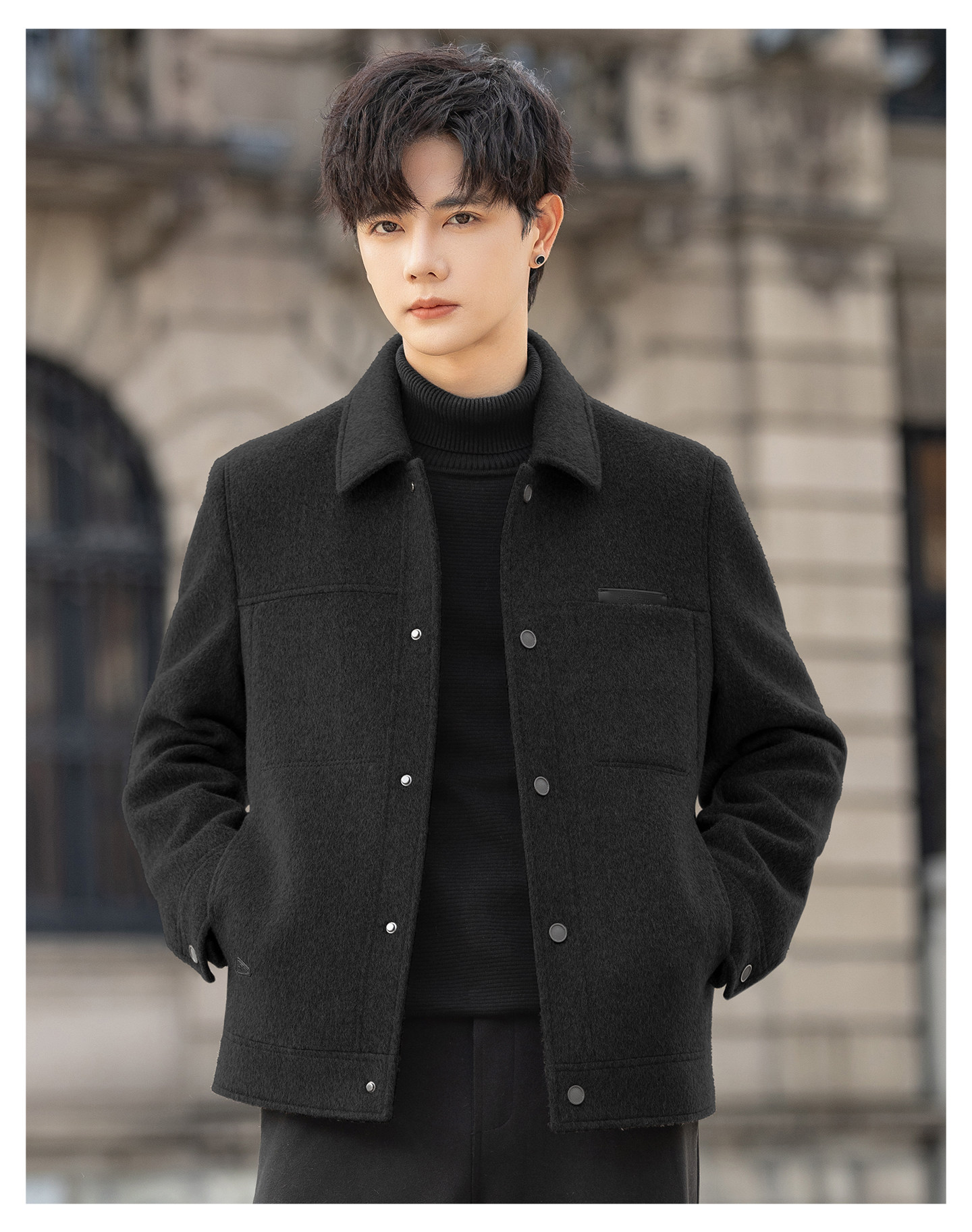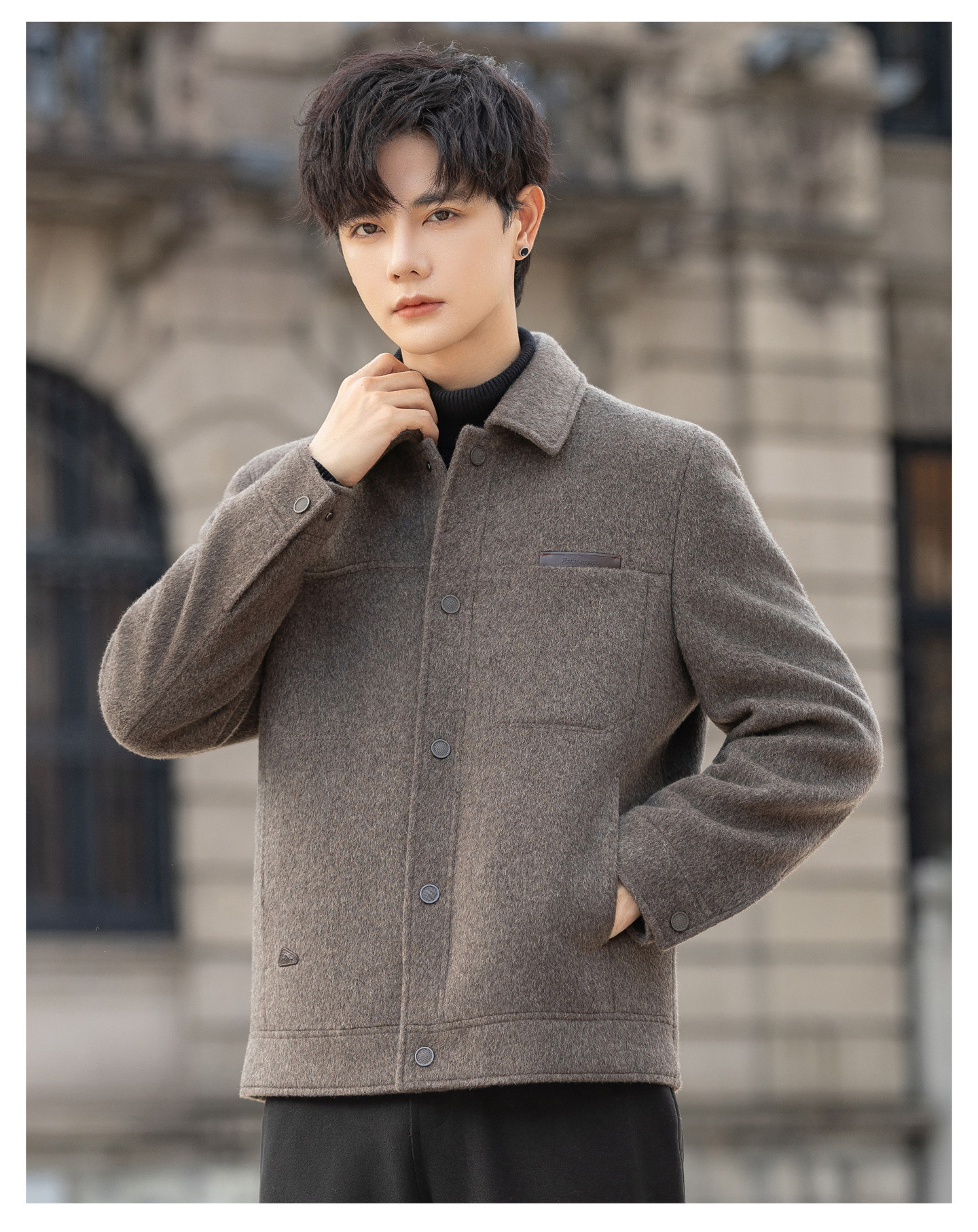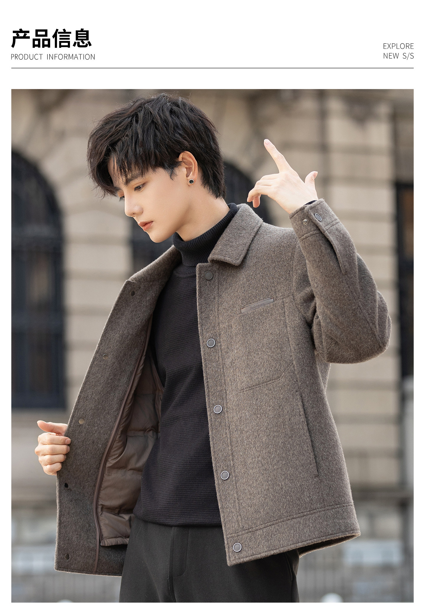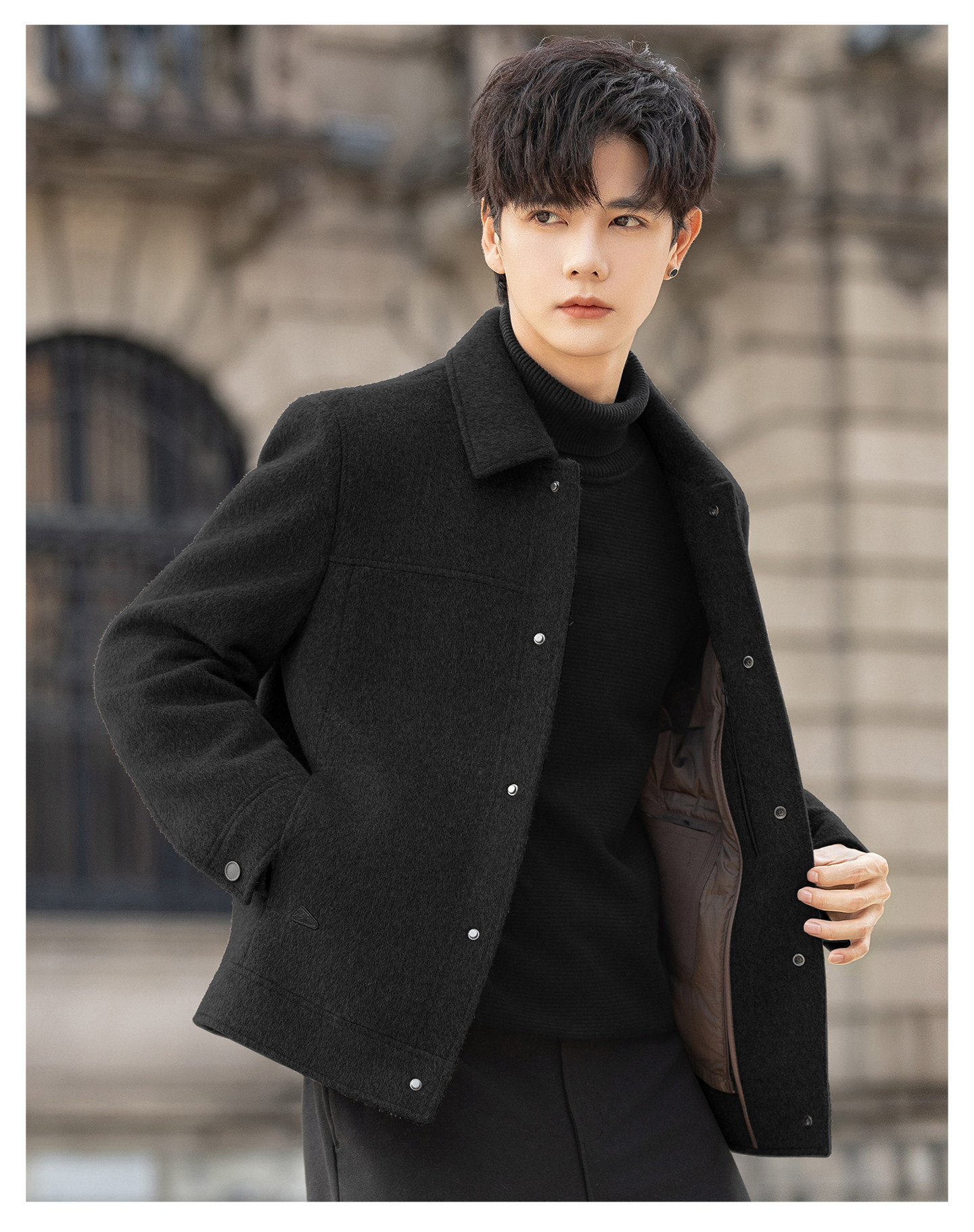High-End Double-Sided Fleece Jacket for Men, 100% Pure Wool Woolen Coat, Short Lapel down Jacket, Thickened for Winter