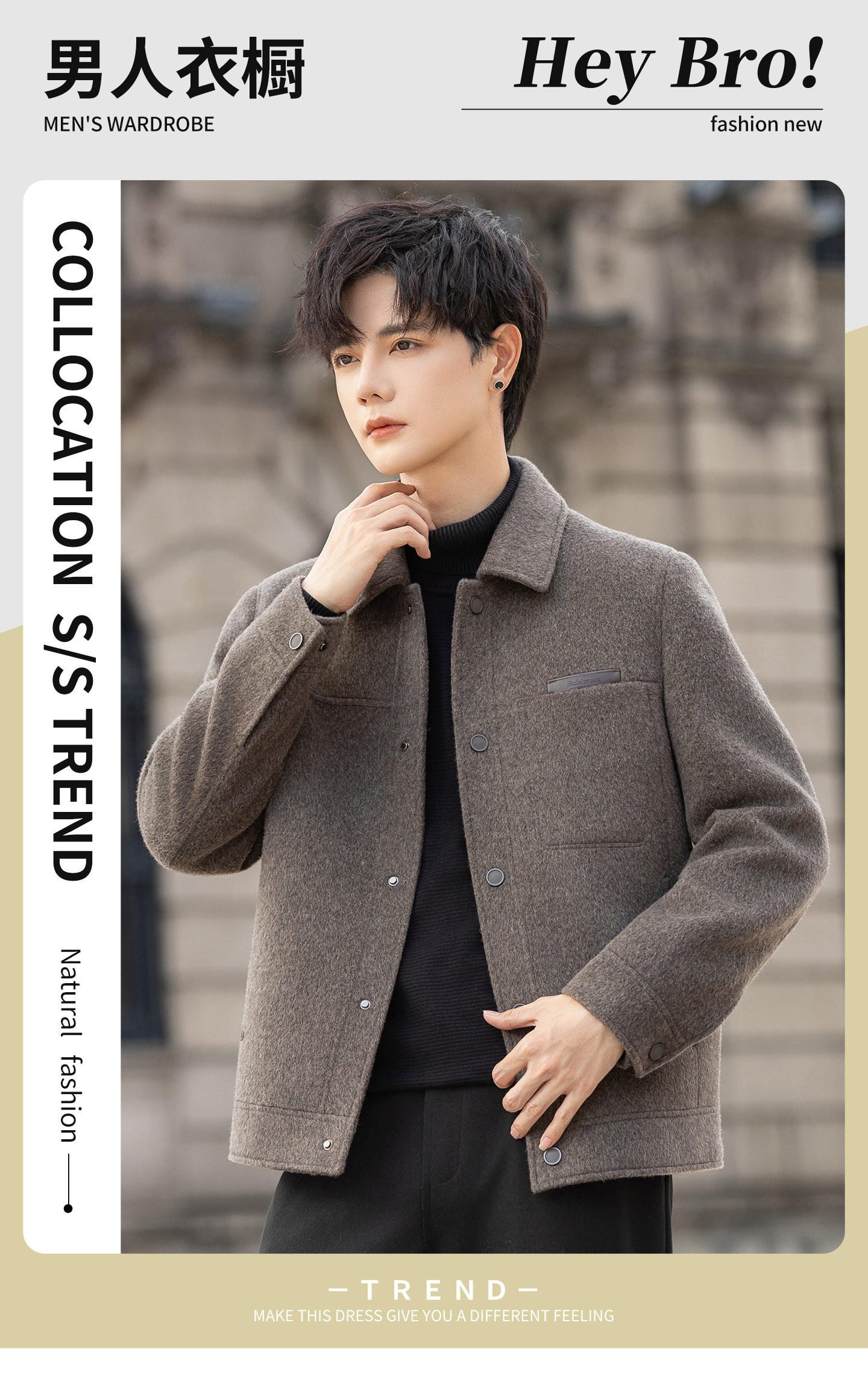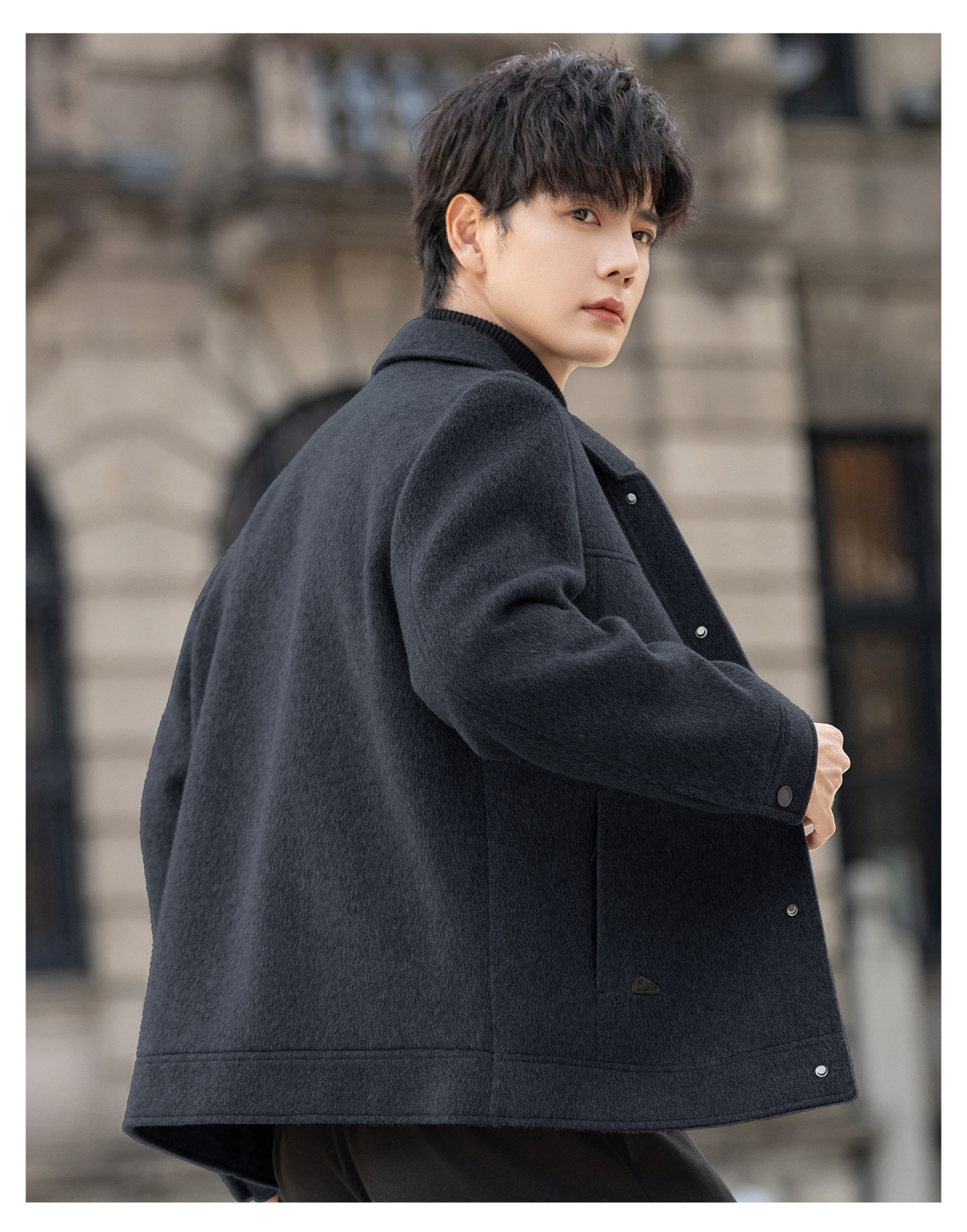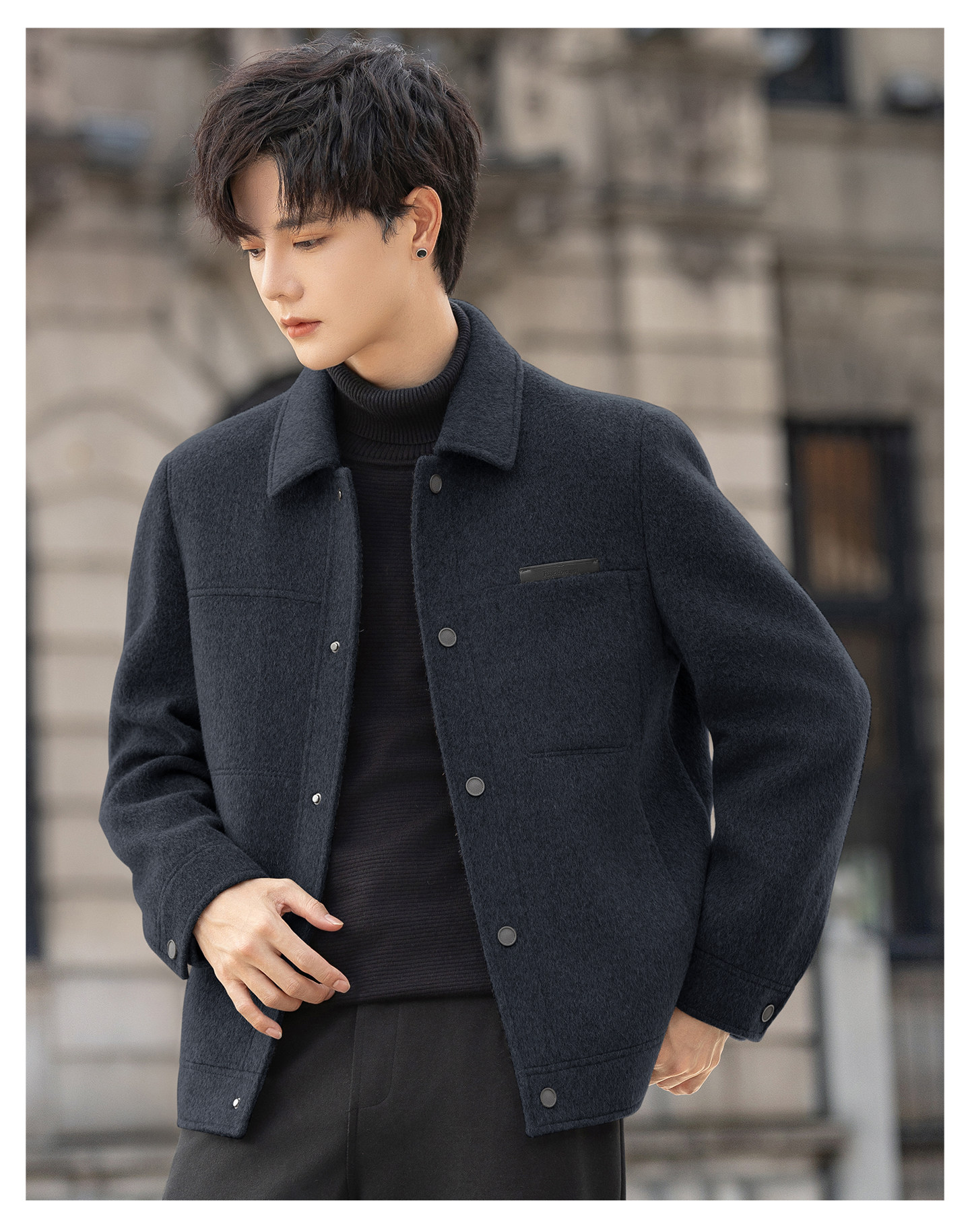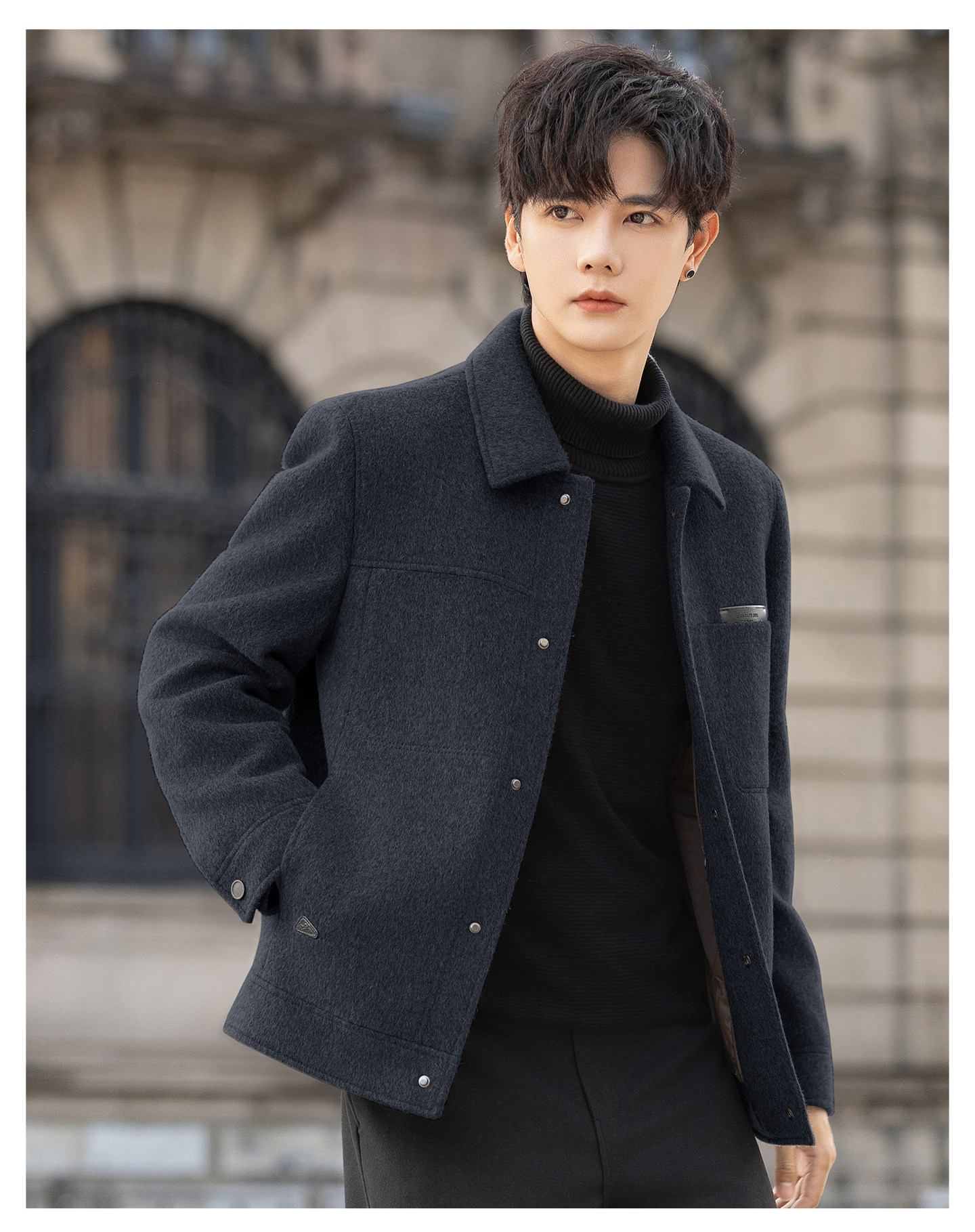 High-End Double-Sided Fleece Jacket for Men, 100% Pure Wool Woolen Coat, Short Lapel down Jacket, Thickened for Winter
