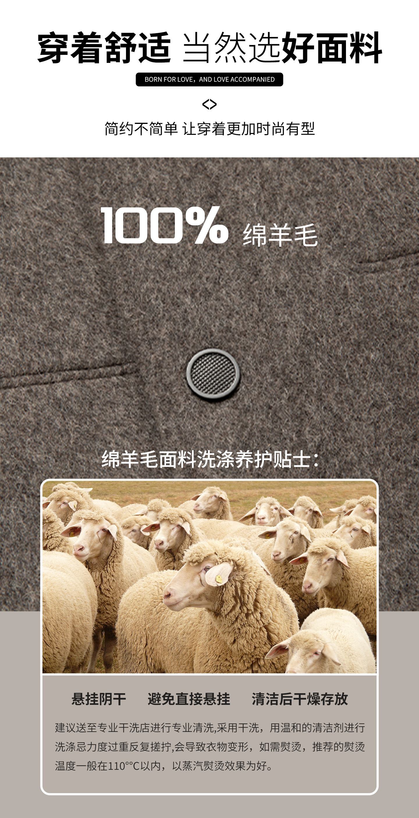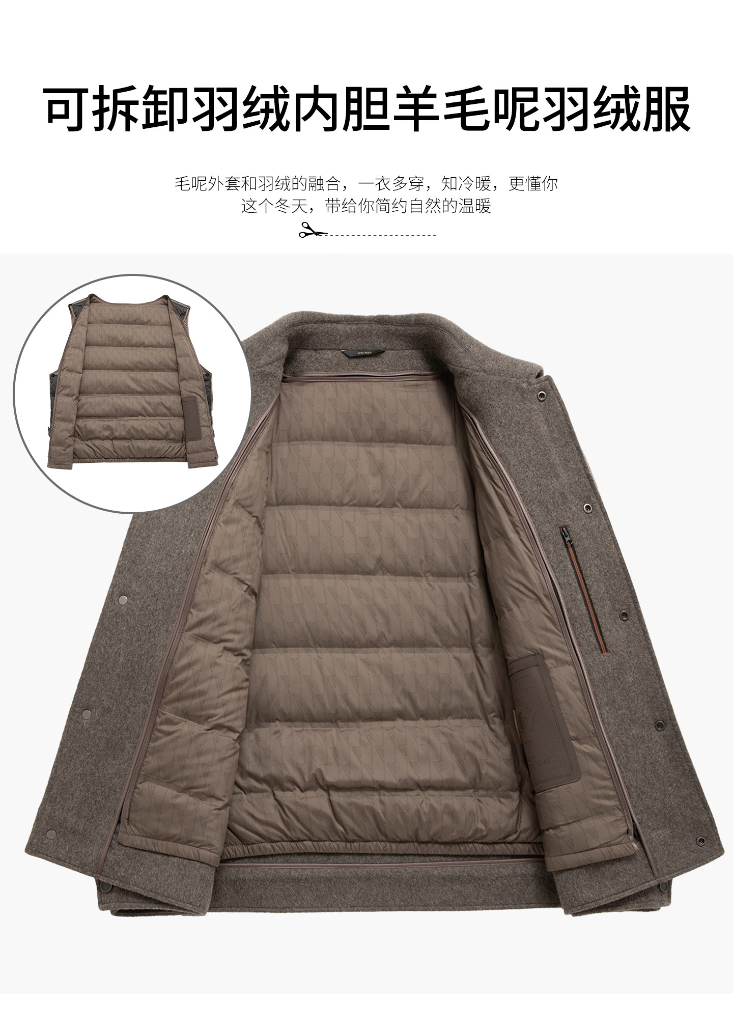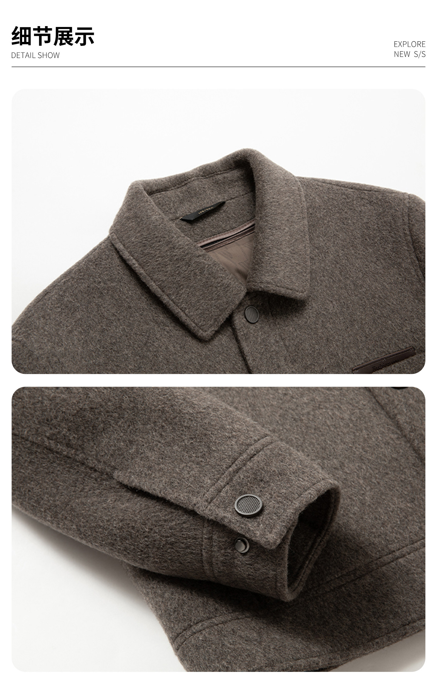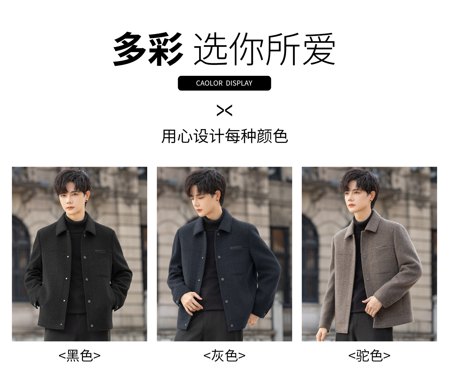 High-End Double-Sided Fleece Jacket for Men, 100% Pure Wool Woolen Coat, Short Lapel down Jacket, Thickened for Winter