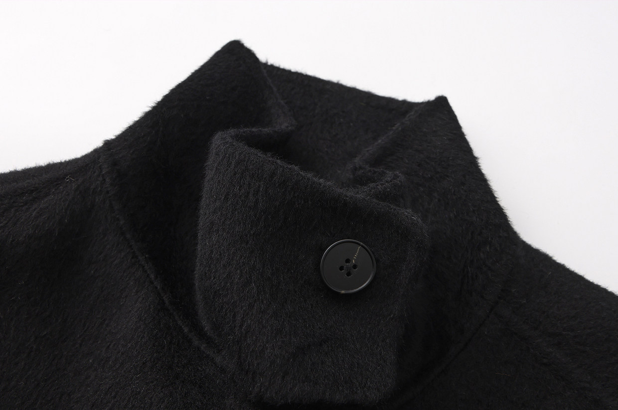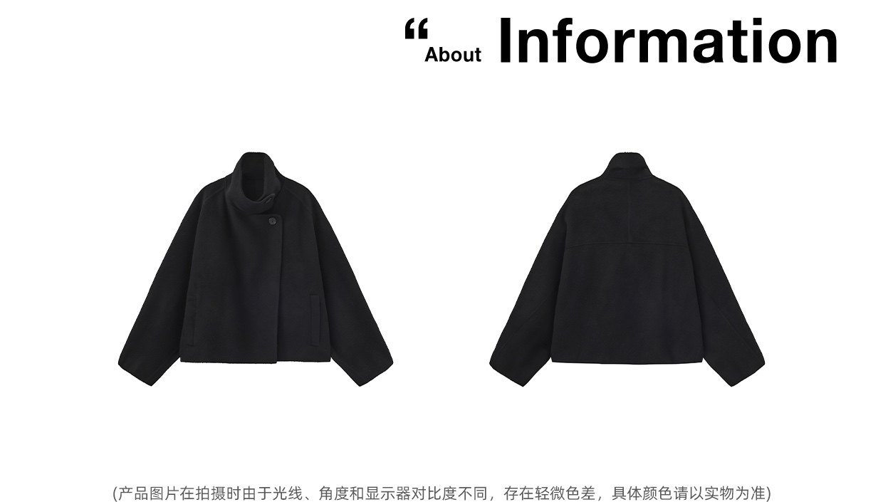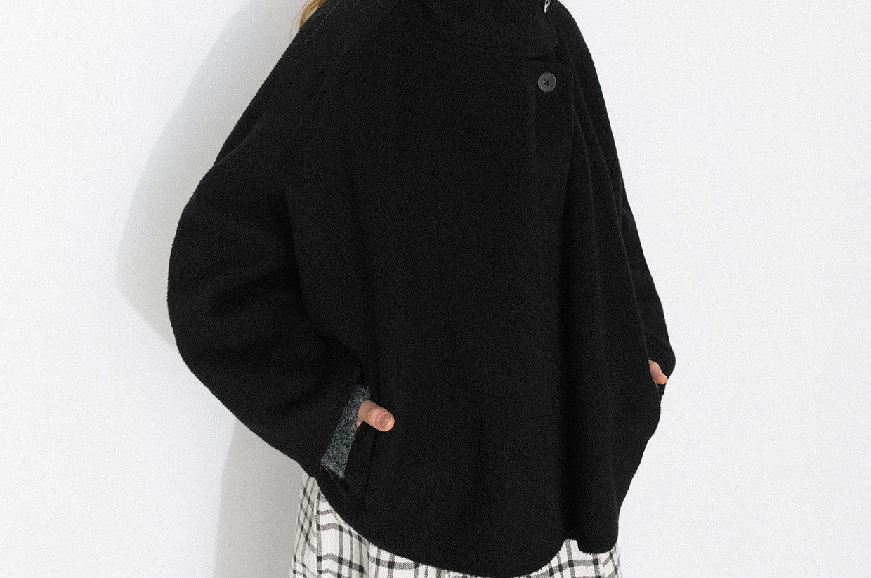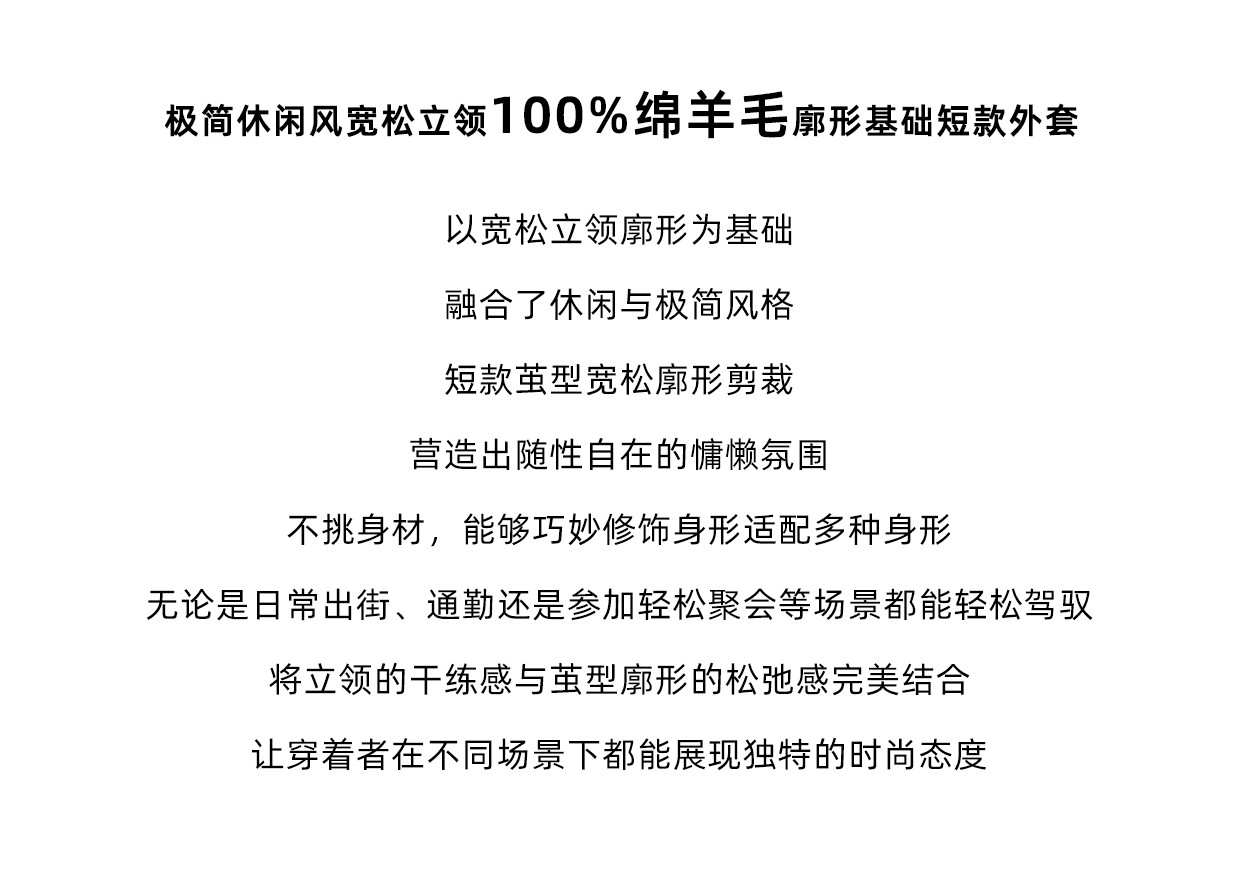 Cubic Autumn and Winter Classic Black Stand-Up Collar Loose 100% Sheep Wool Silhouette Short Coat Jacket Ec6060