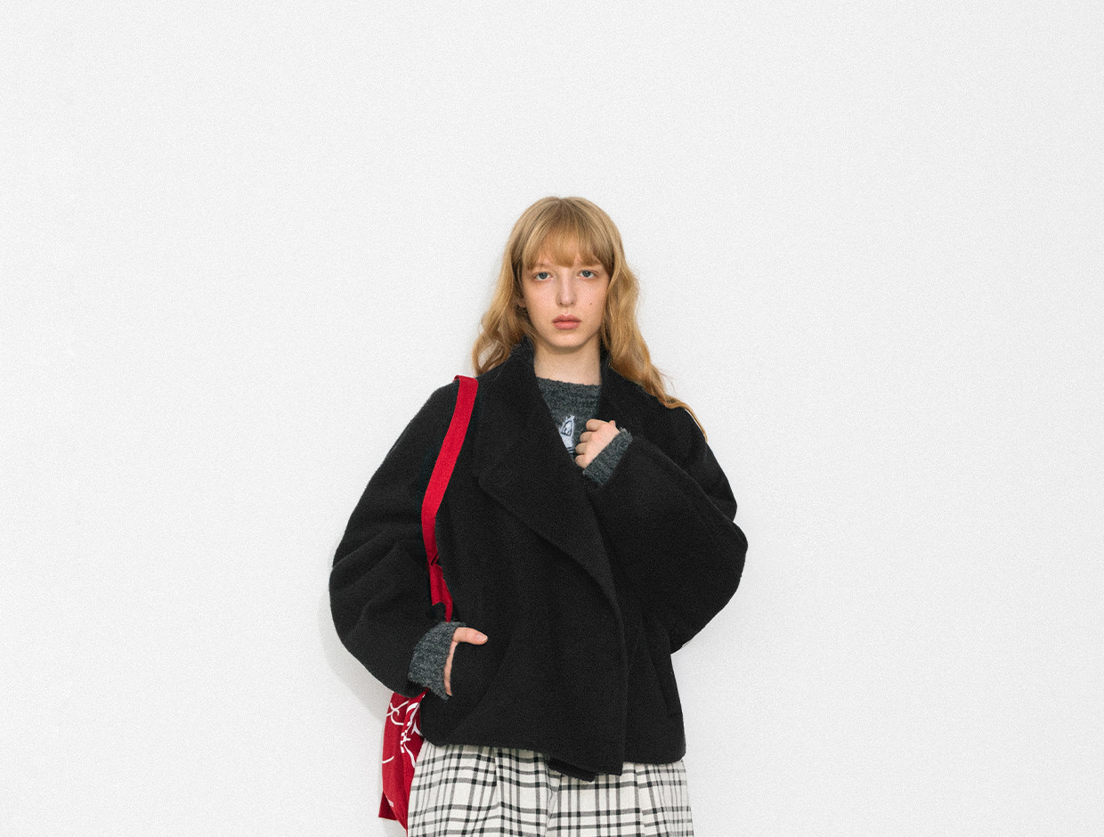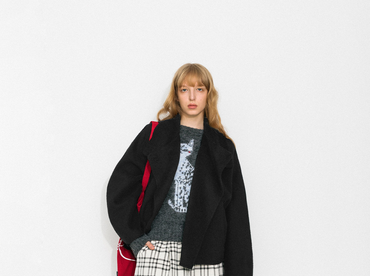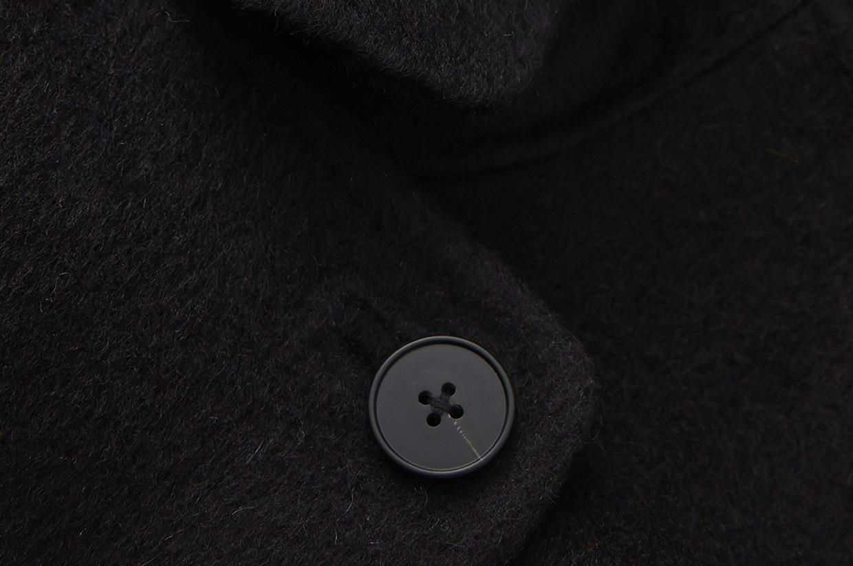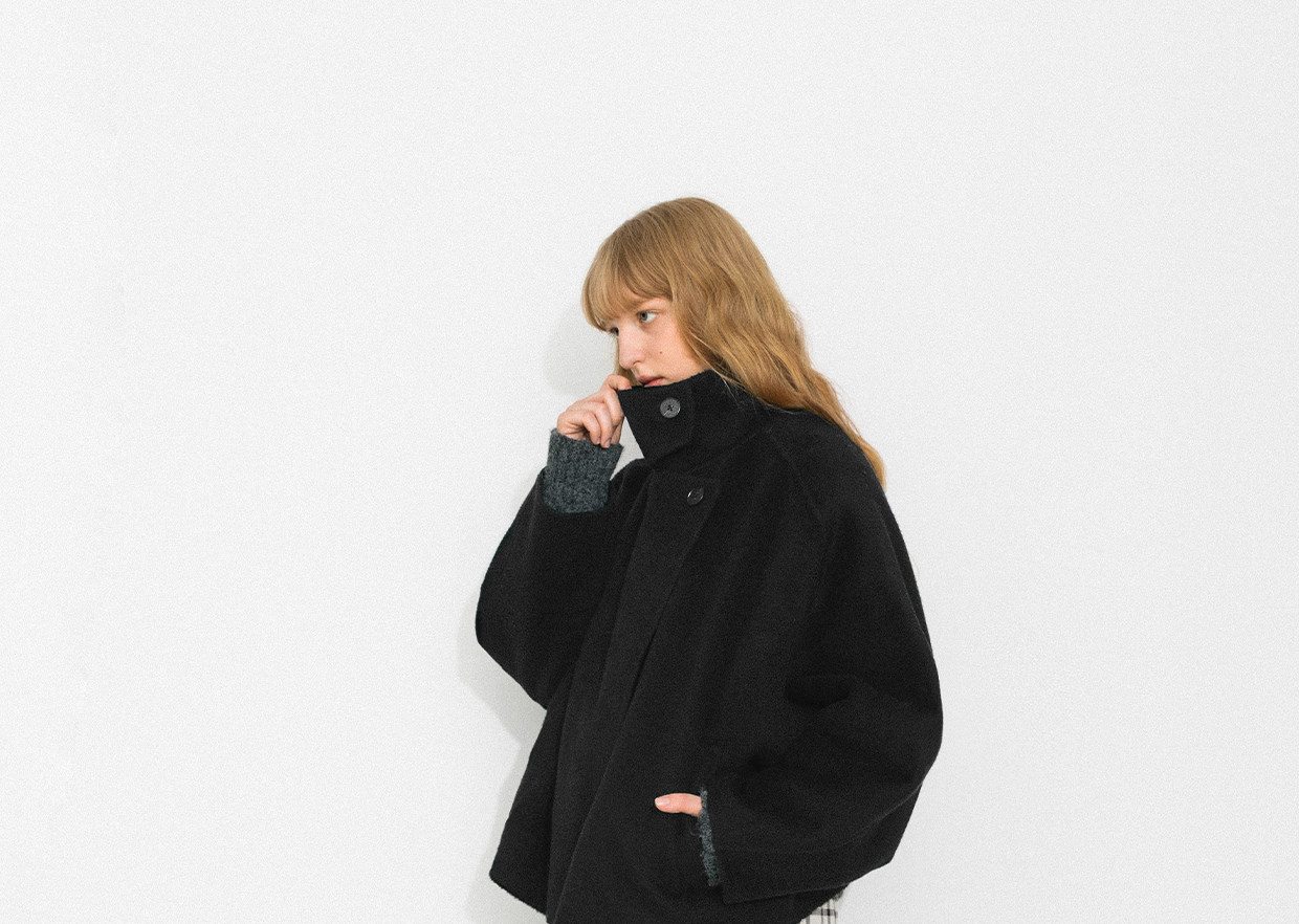Cubic Autumn and Winter Classic Black Stand-Up Collar Loose 100% Sheep Wool Silhouette Short Coat Jacket Ec6060
