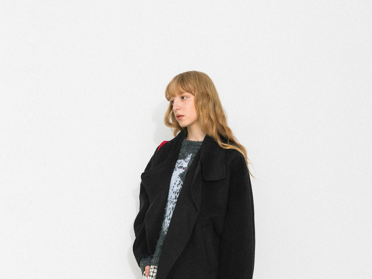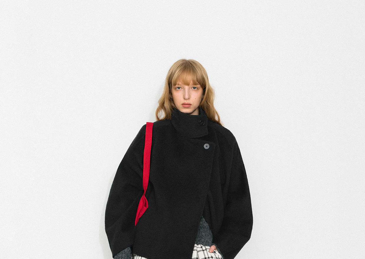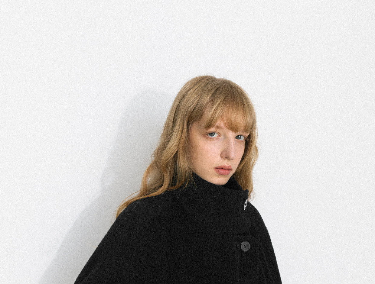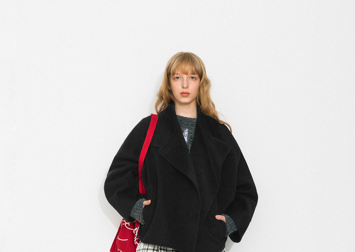 Cubic Autumn and Winter Classic Black Stand-Up Collar Loose 100% Sheep Wool Silhouette Short Coat Jacket Ec6060
