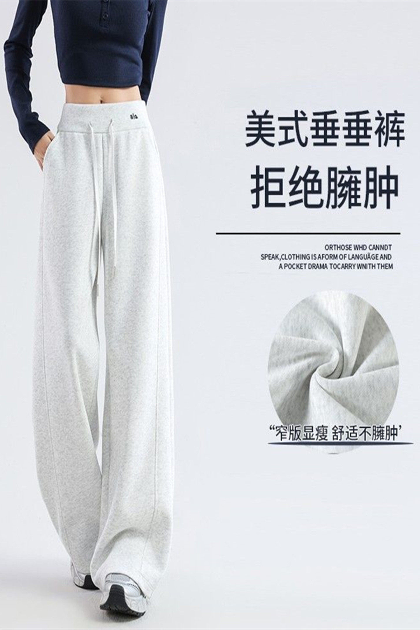 Linhuan White-Gray American-Style Sweatpants for Women, Autumn and Winter High-Waisted Loose Casual Wide-Leg Pants, Petite Straight-Leg Soft and Comfortable Sweatpants