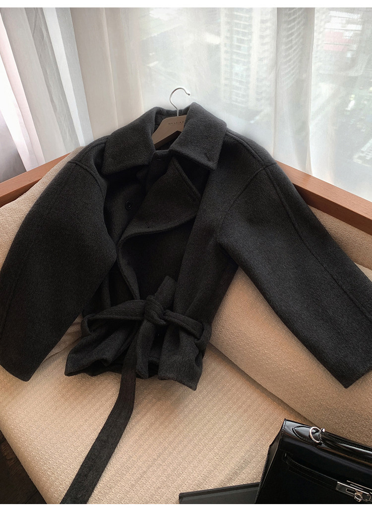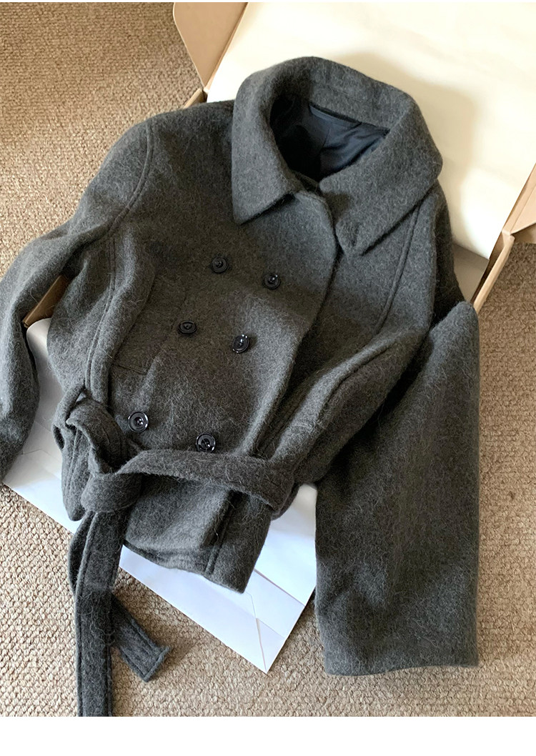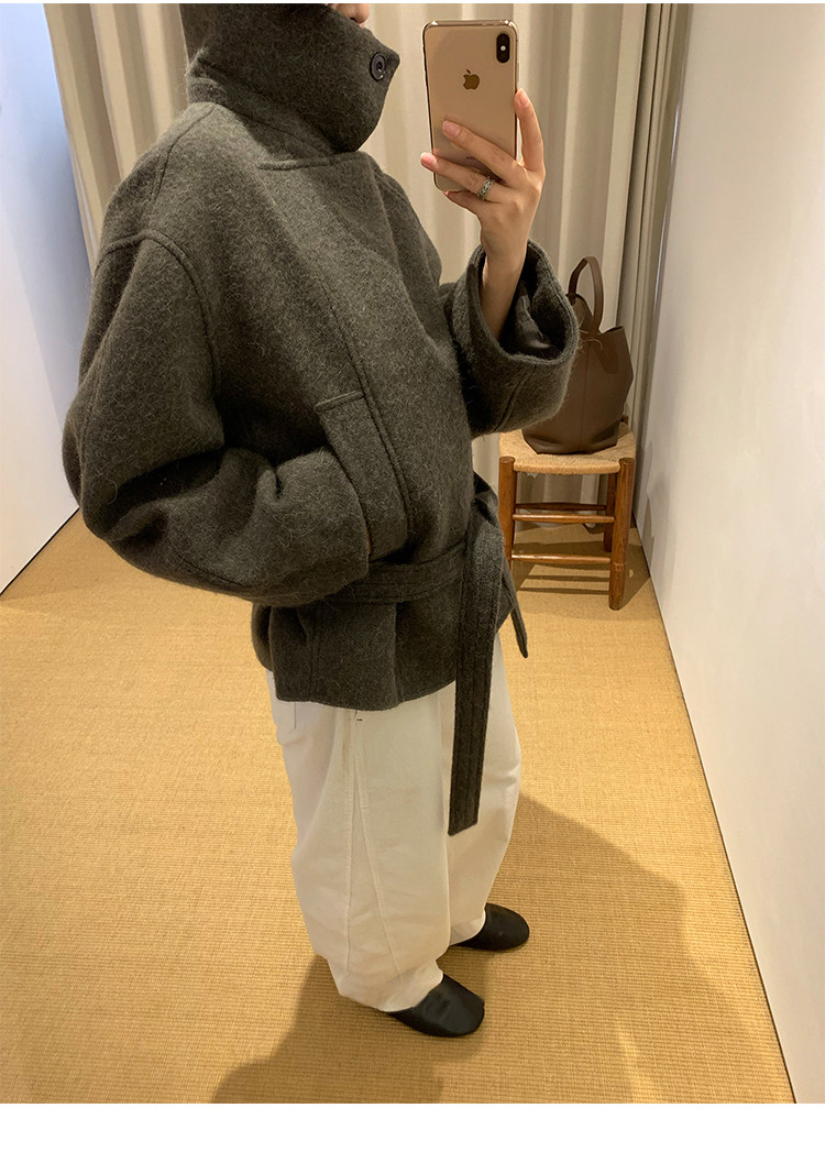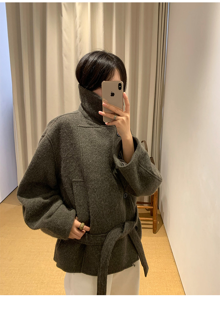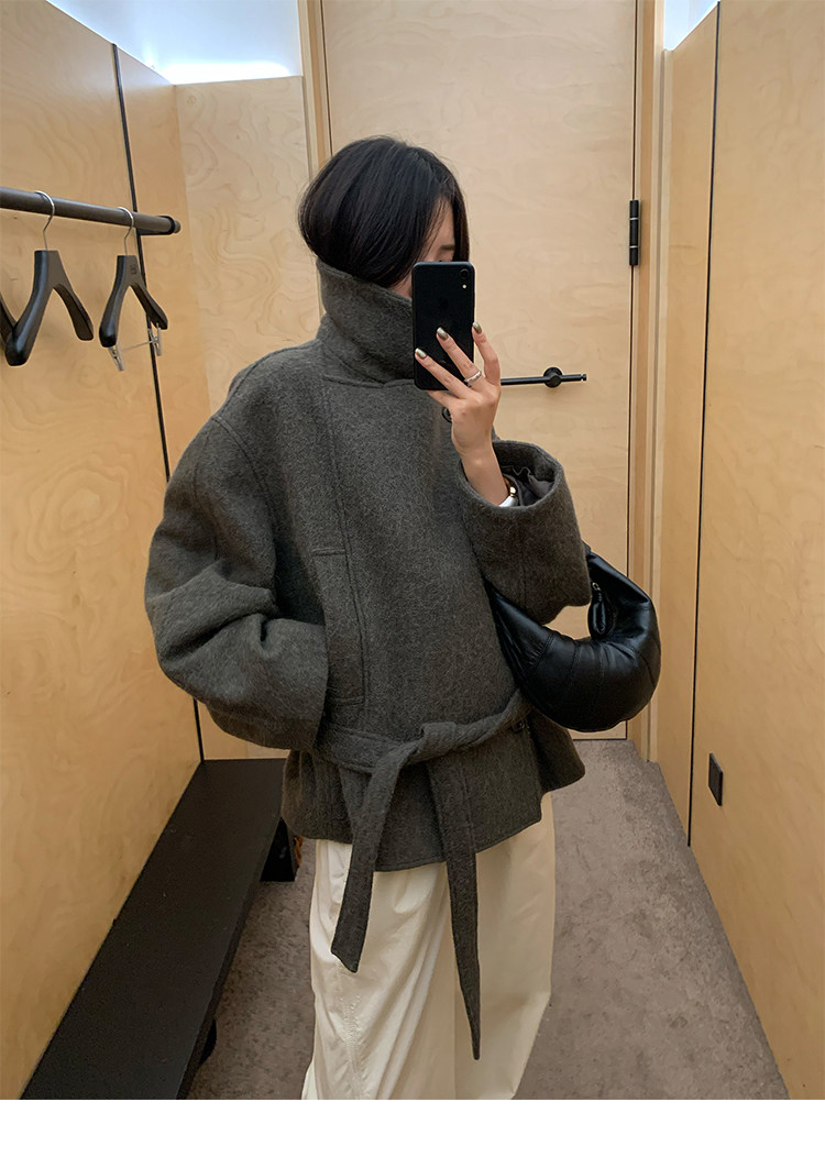 Kim Min-Hee Style Gray Short Woolen Coat for Women 2025 Autumn and Winter Stand Collar Thickened Petite Wool Coat