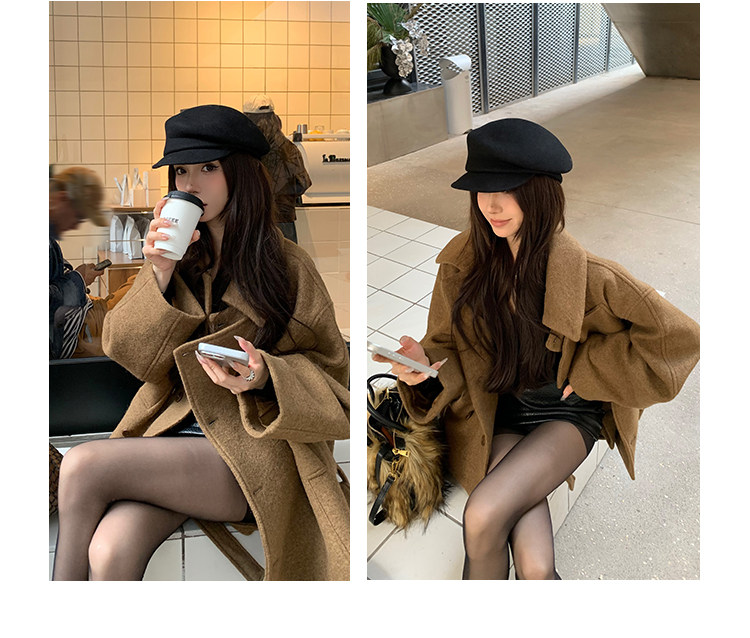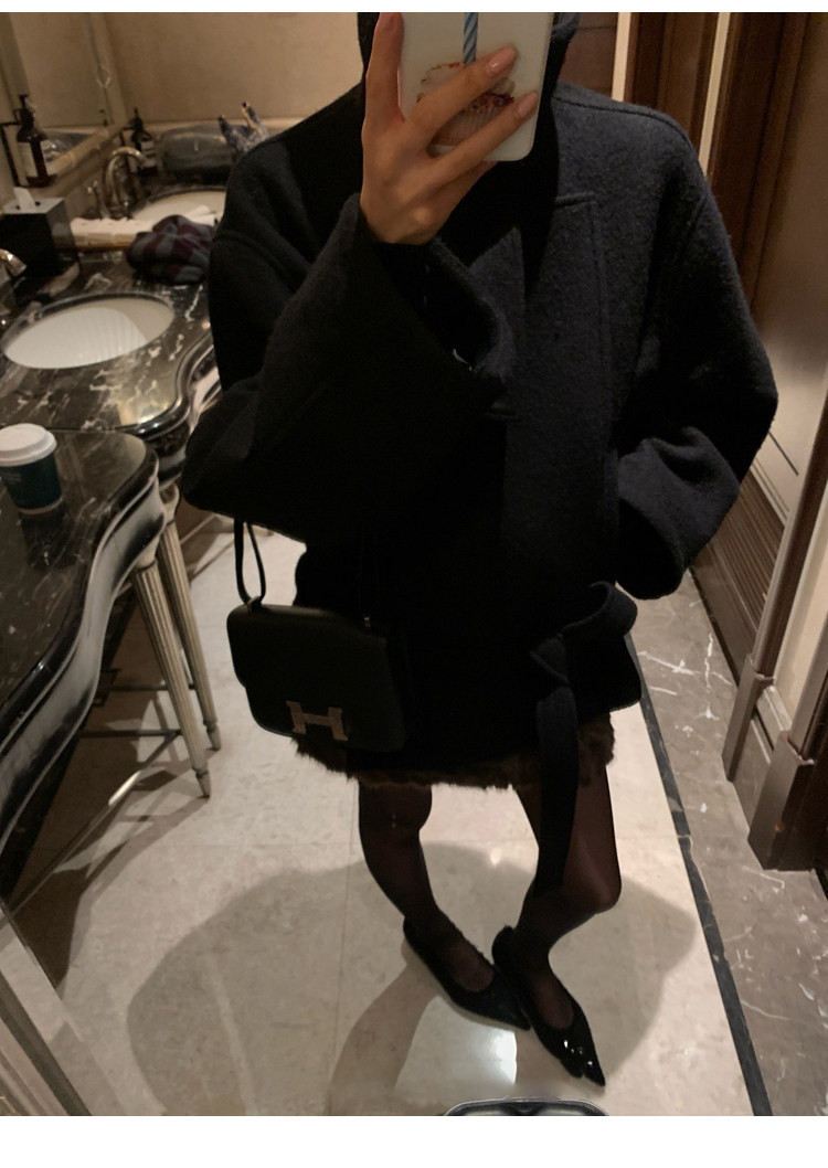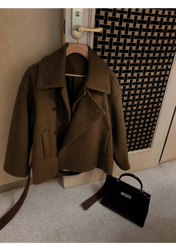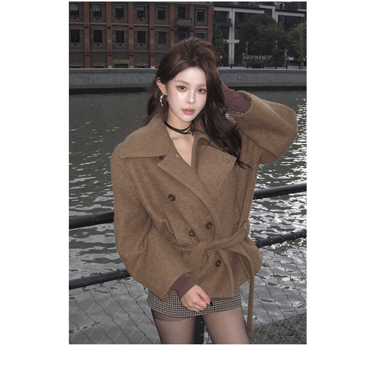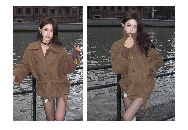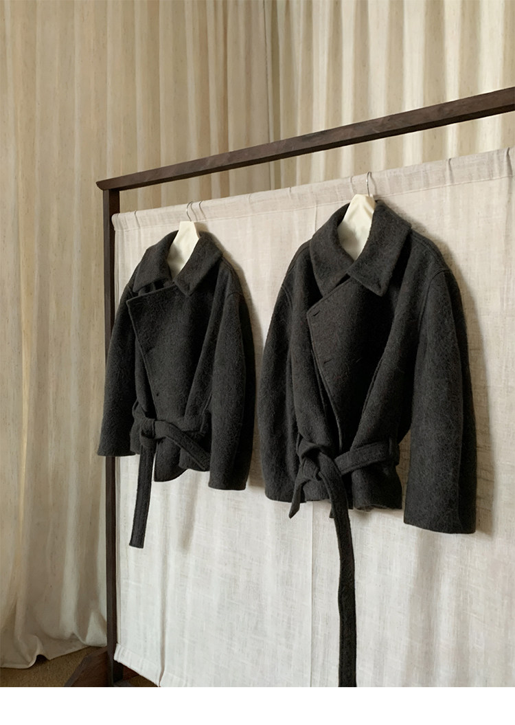 Kim Min-Hee Style Gray Short Woolen Coat for Women 2025 Autumn and Winter Stand Collar Thickened Petite Wool Coat