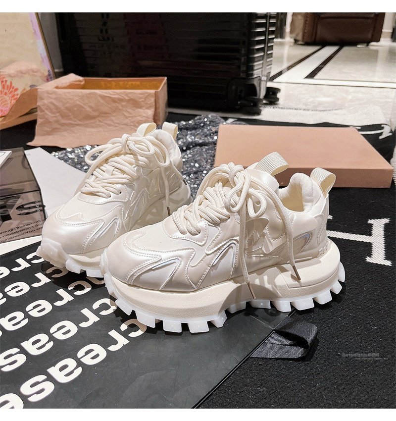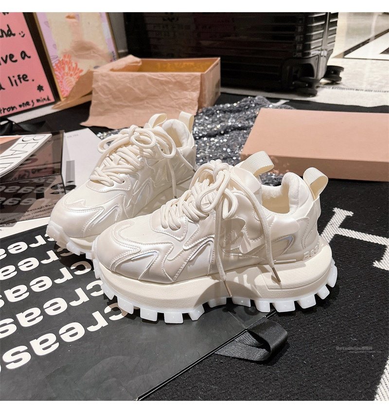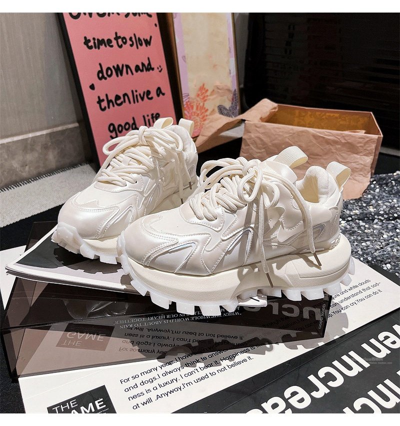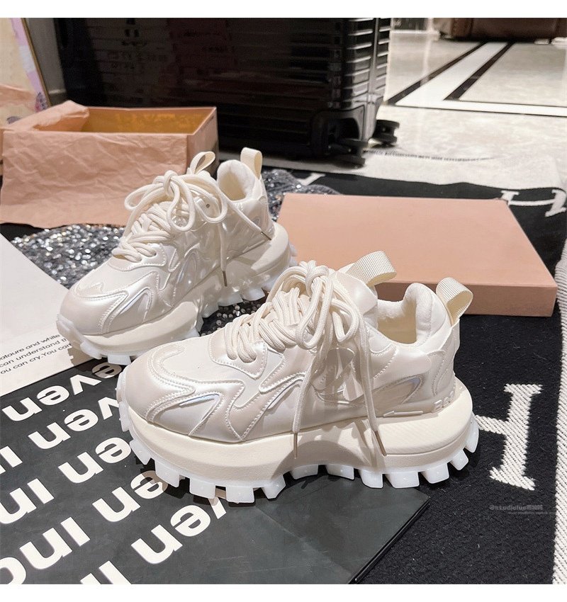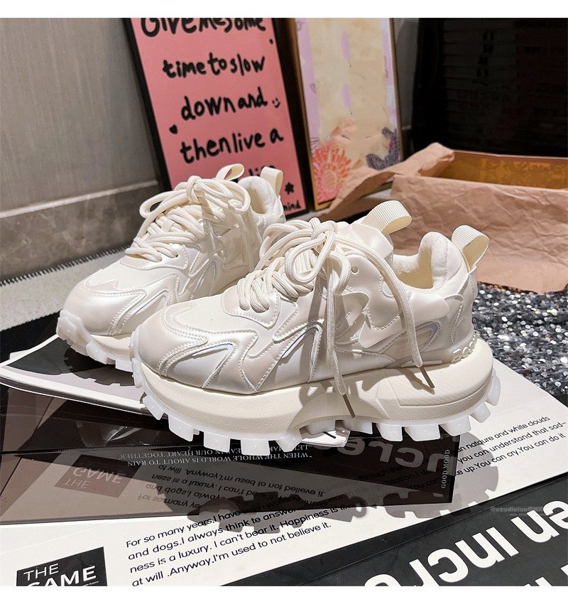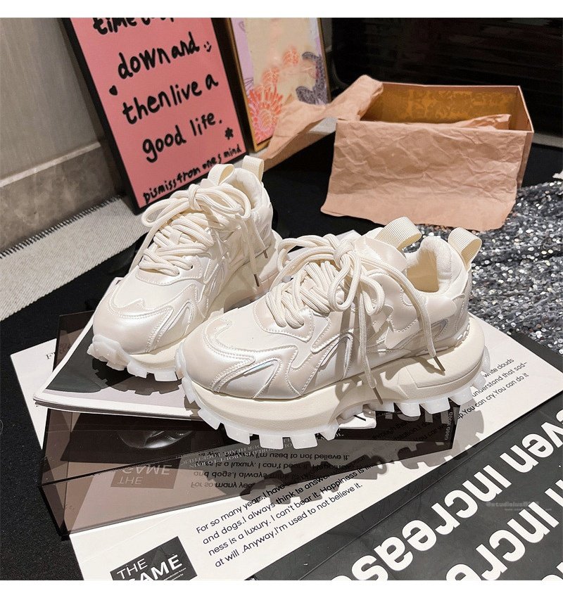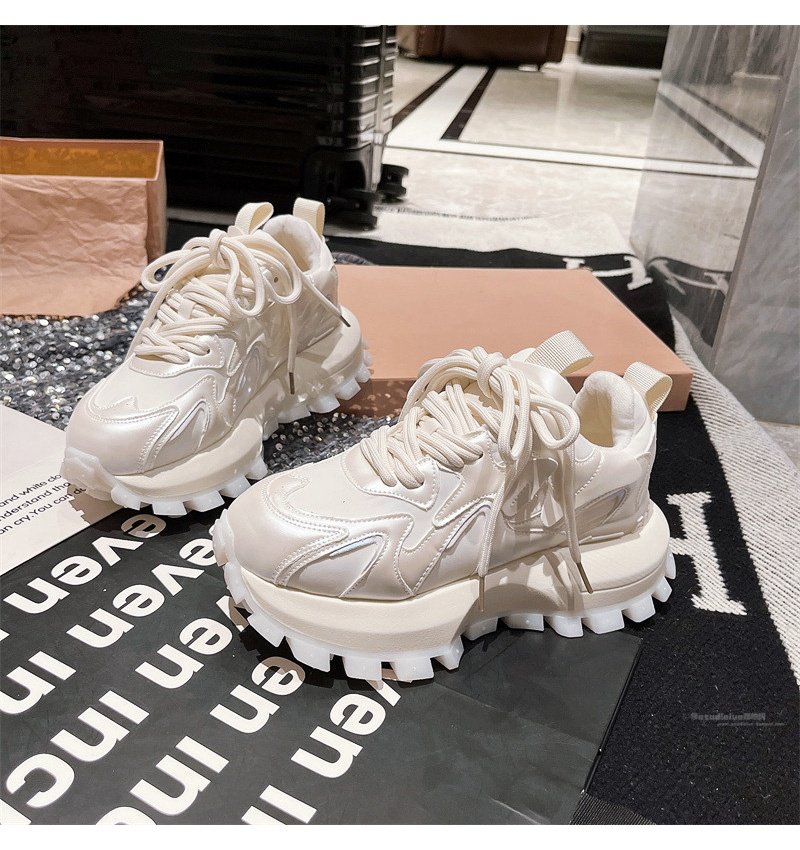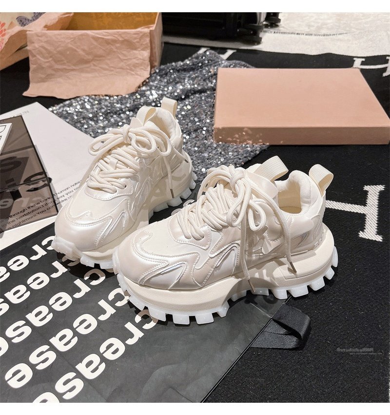 Hong Kong Genuine Leather Lace-Up Platform Dad Shoes for Women 2025 Spring and Autumn New Slimming Sneakers Versatile White Shoes