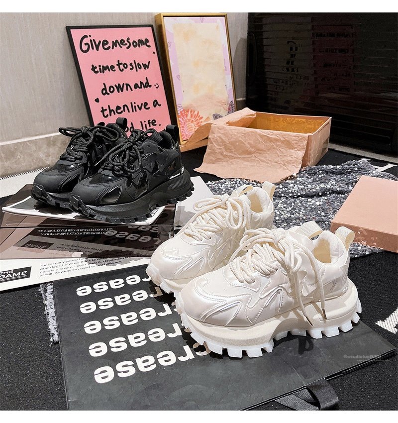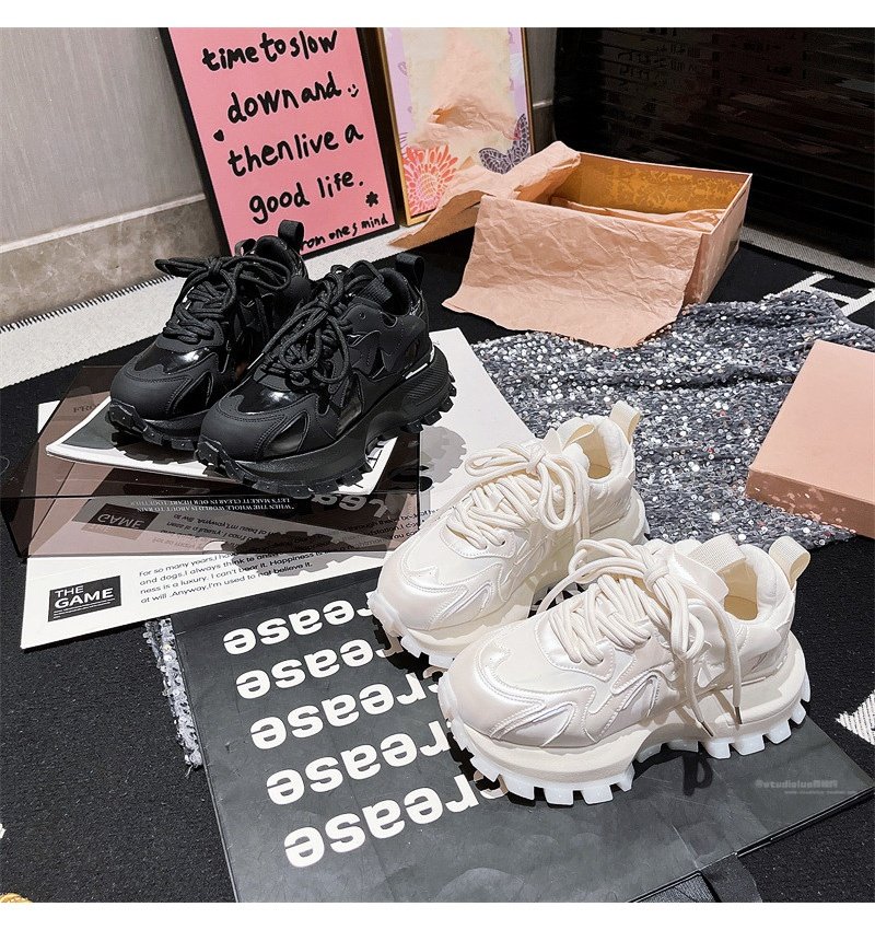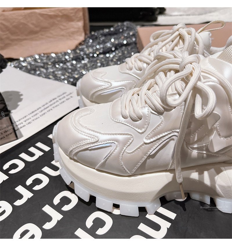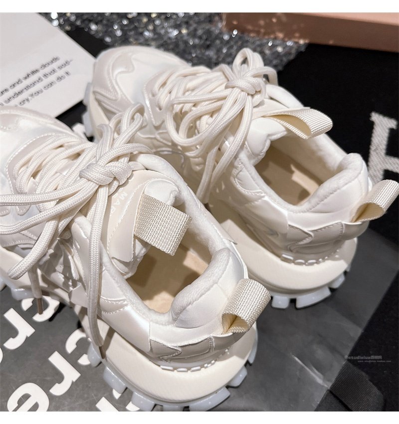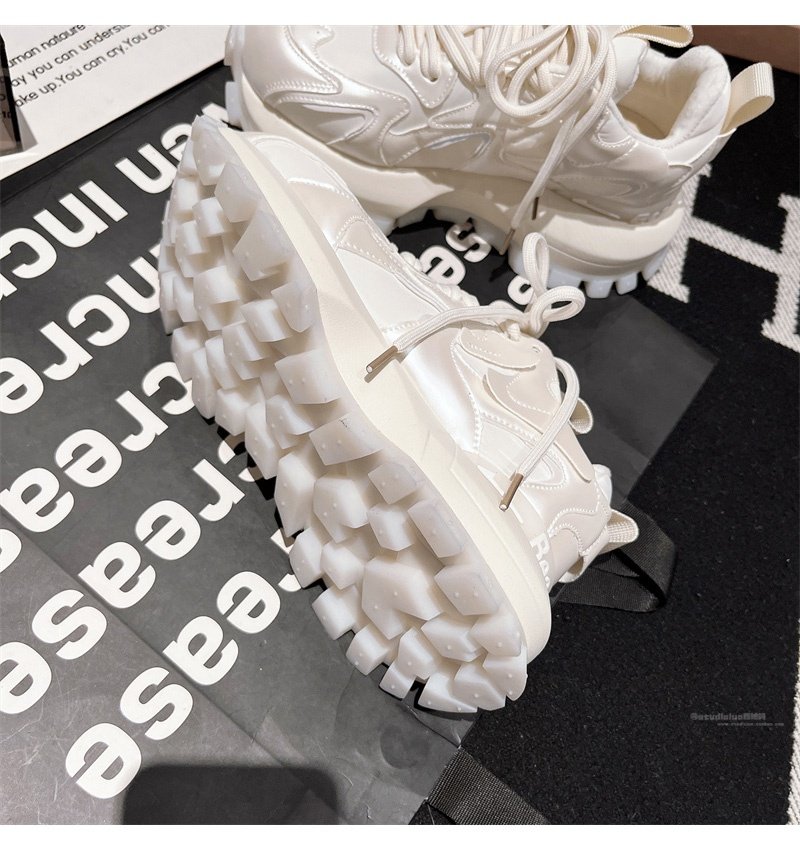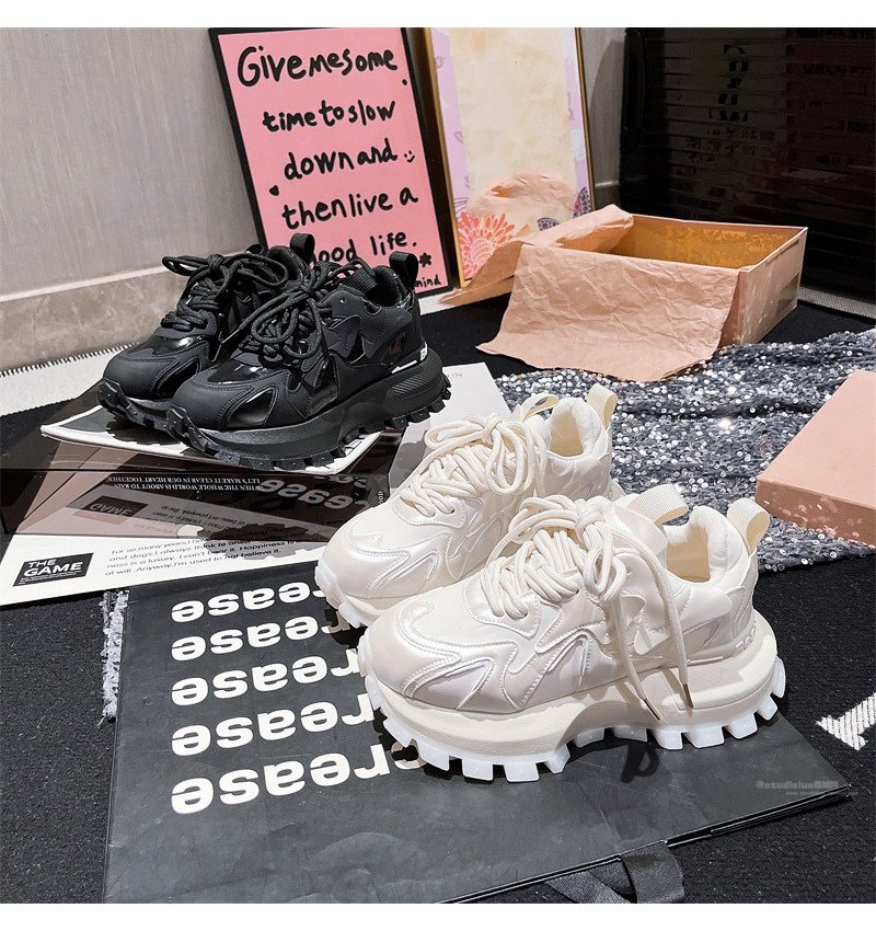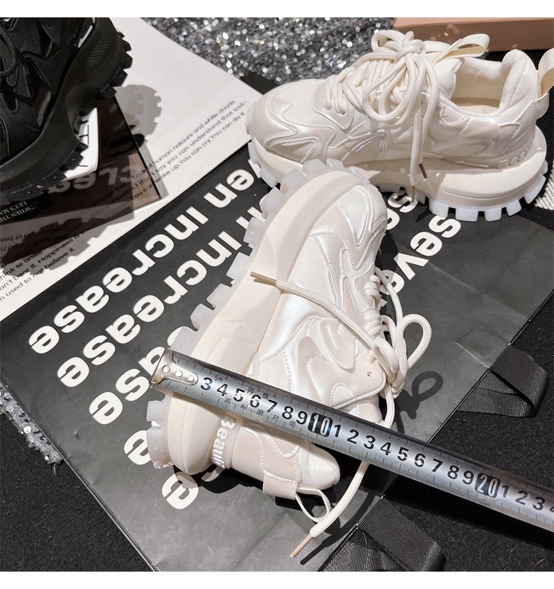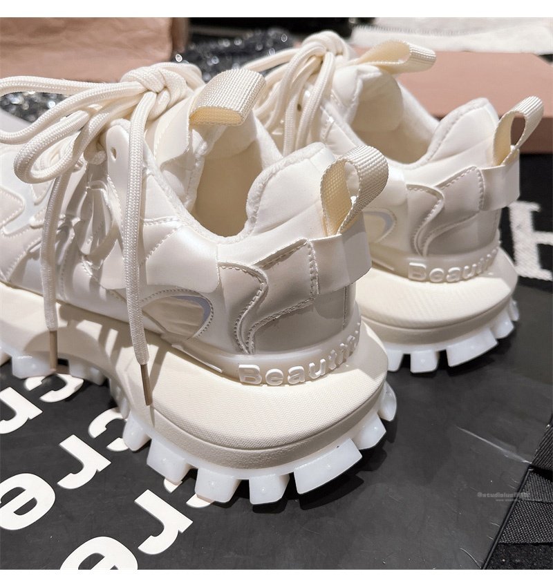 Hong Kong Genuine Leather Lace-Up Platform Dad Shoes for Women 2025 Spring and Autumn New Slimming Sneakers Versatile White Shoes