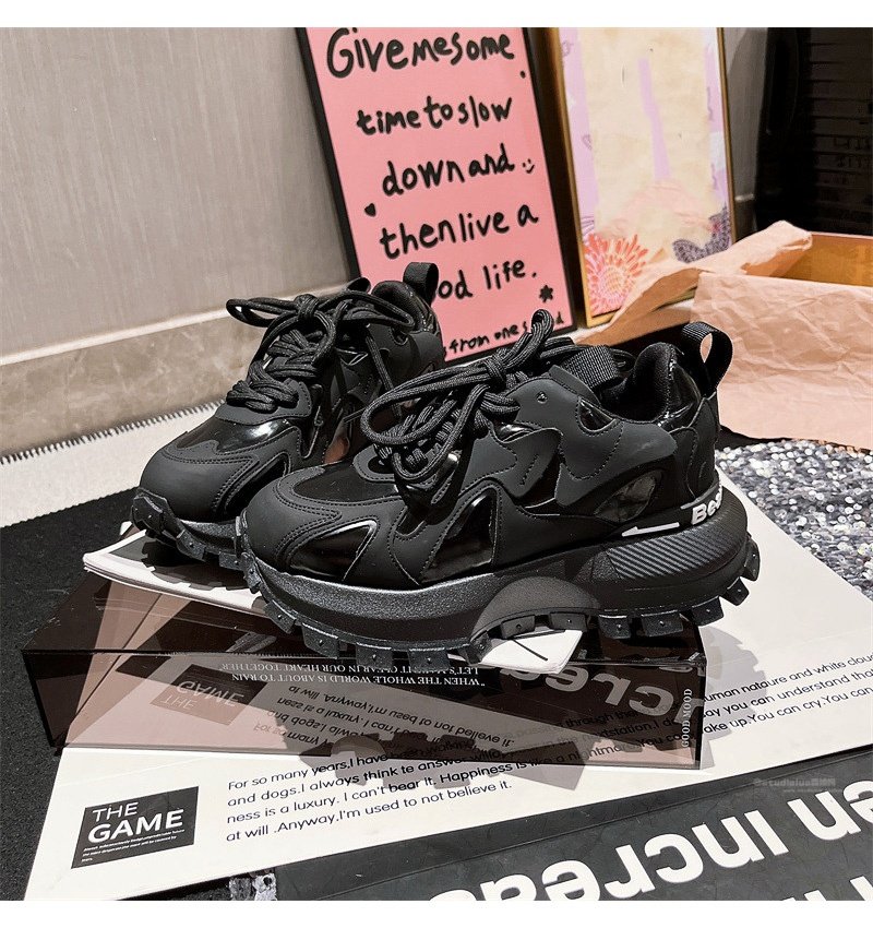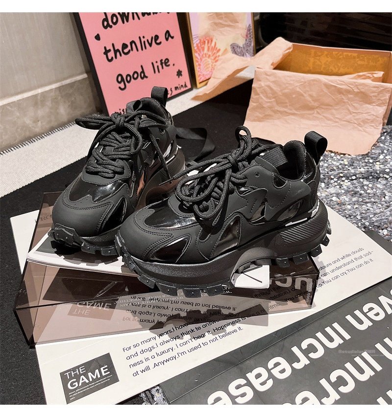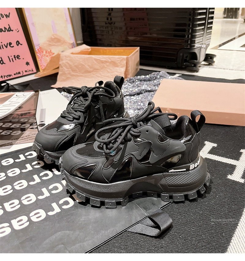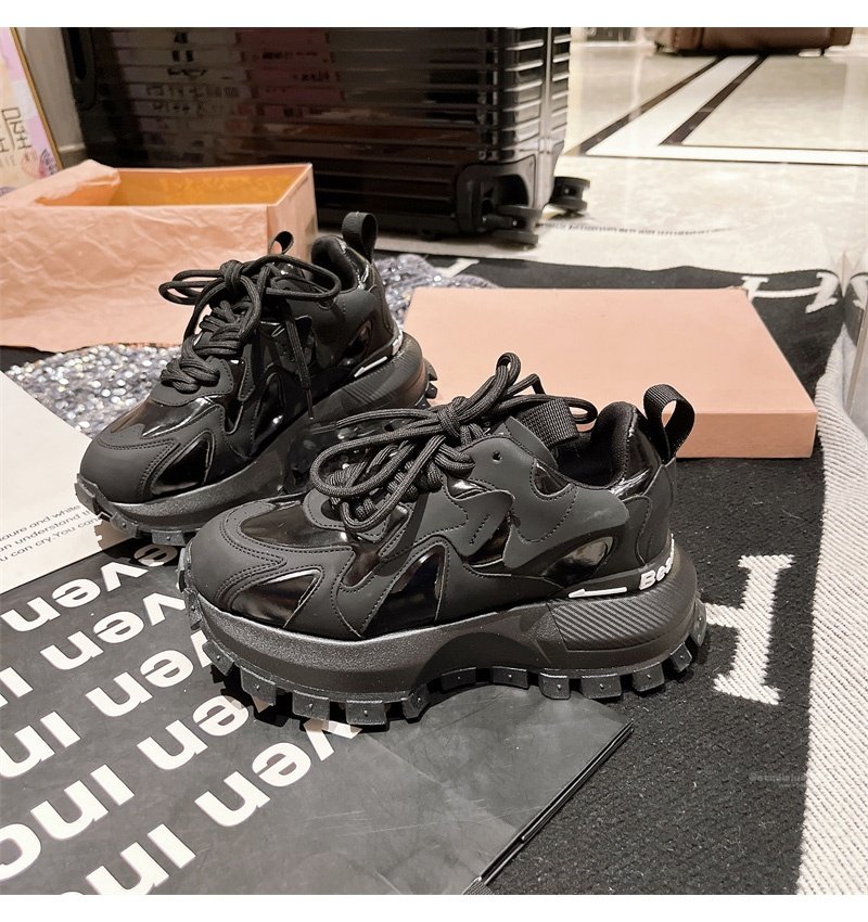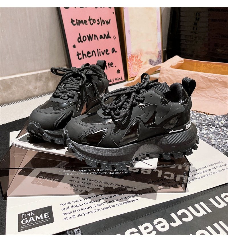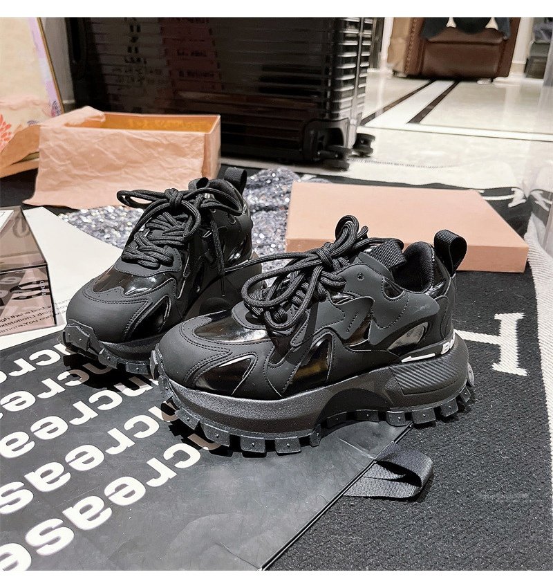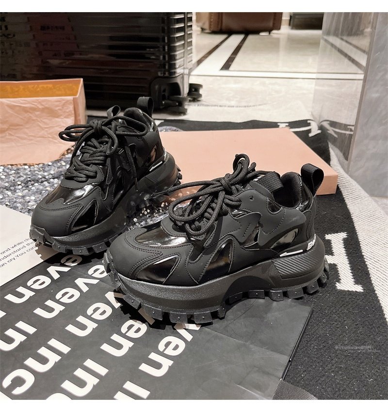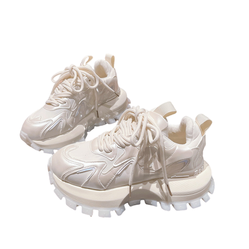Hong Kong Genuine Leather Lace-Up Platform Dad Shoes for Women 2025 Spring and Autumn New Slimming Sneakers Versatile White Shoes