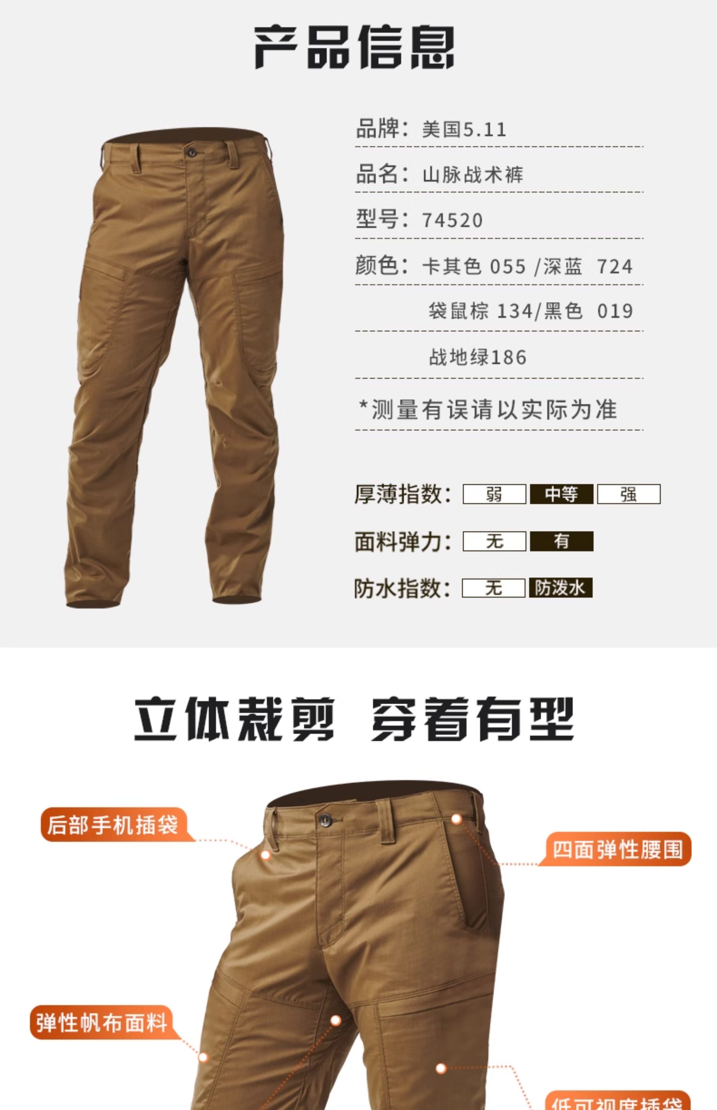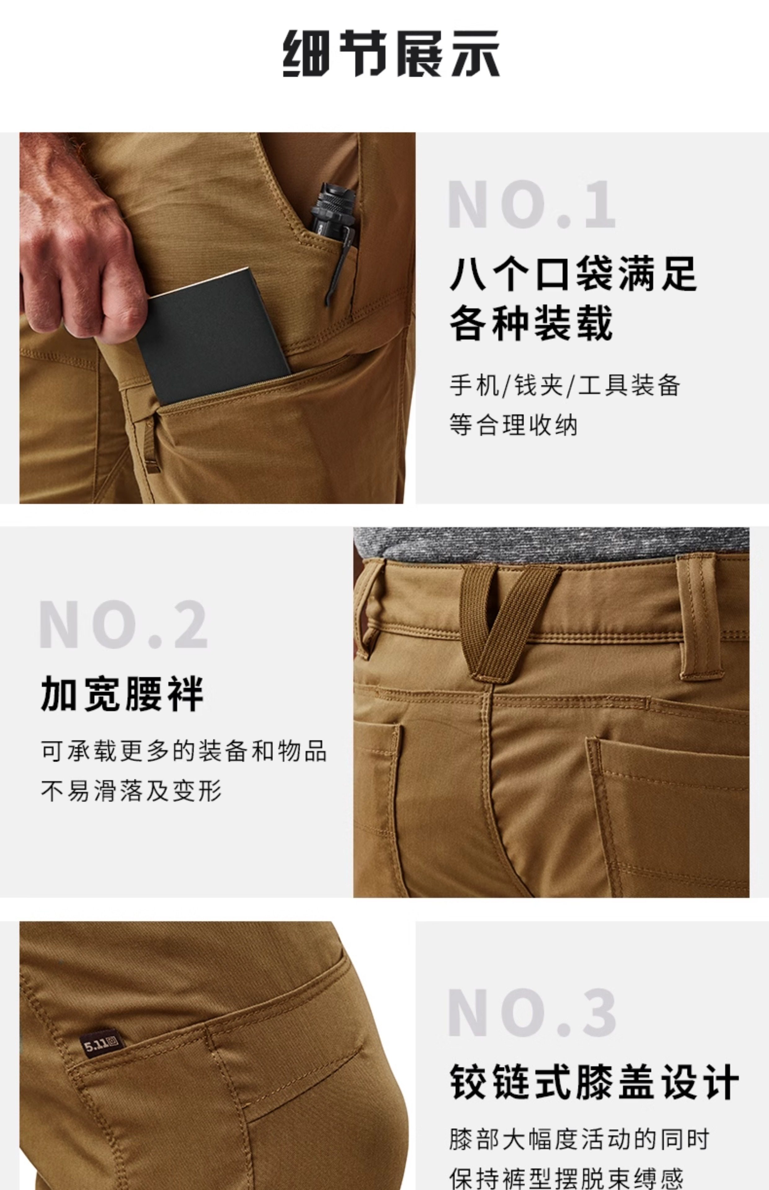 5.11 Mountain Straight Tactical Pants 511 Multi-Pocket Casual Pants Men's Water-Repellent Stretch Tactical Pants 74520