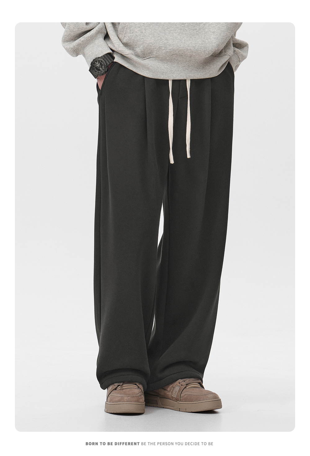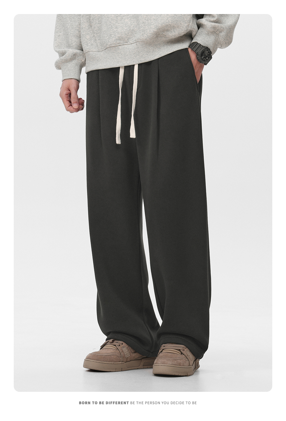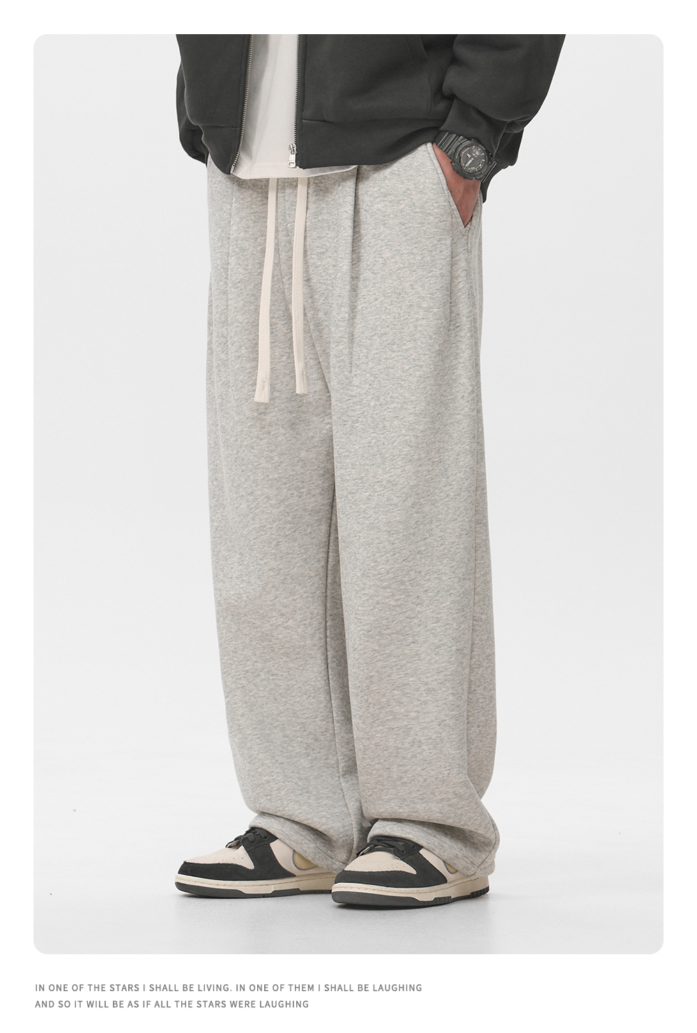 Gwit Three-Color Fleece-Lined Classic Drape Wide-Leg Sweatpants Winter Heavy Thickened Warm Sports Casual Pants for Men