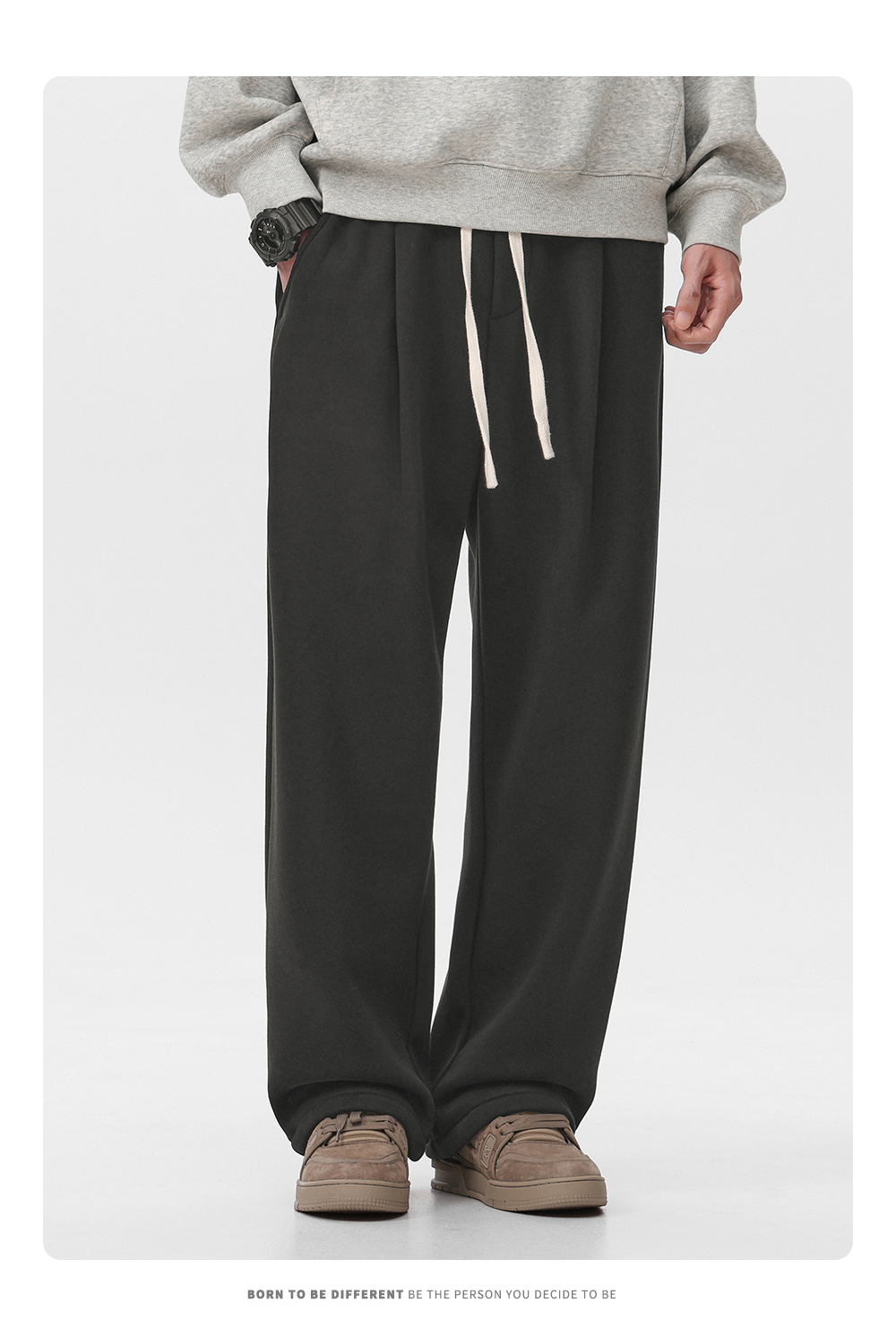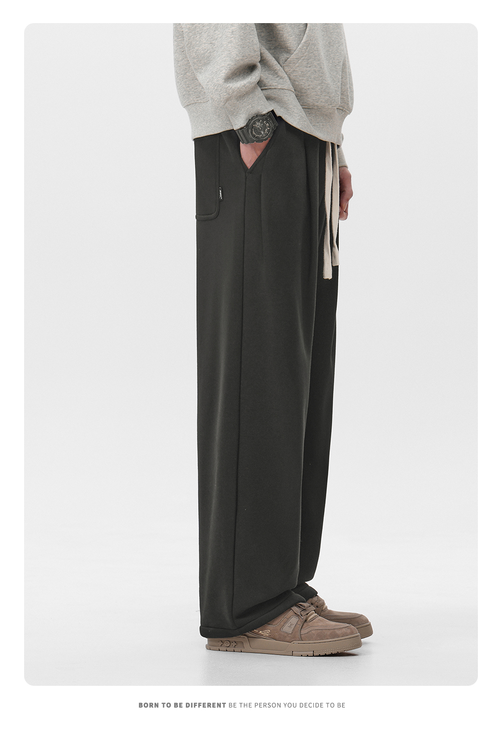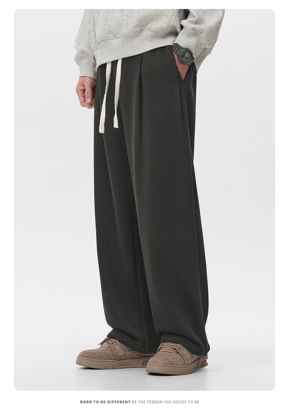Gwit Three-Color Fleece-Lined Classic Drape Wide-Leg Sweatpants Winter Heavy Thickened Warm Sports Casual Pants for Men