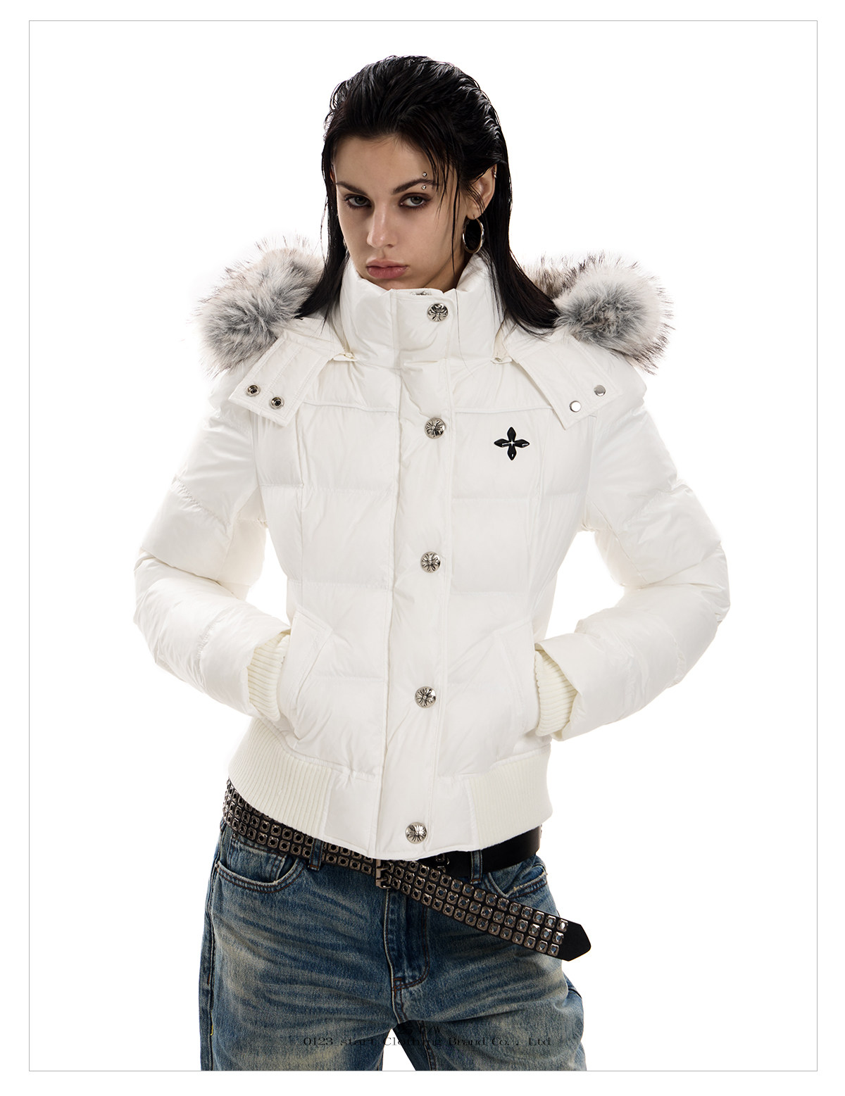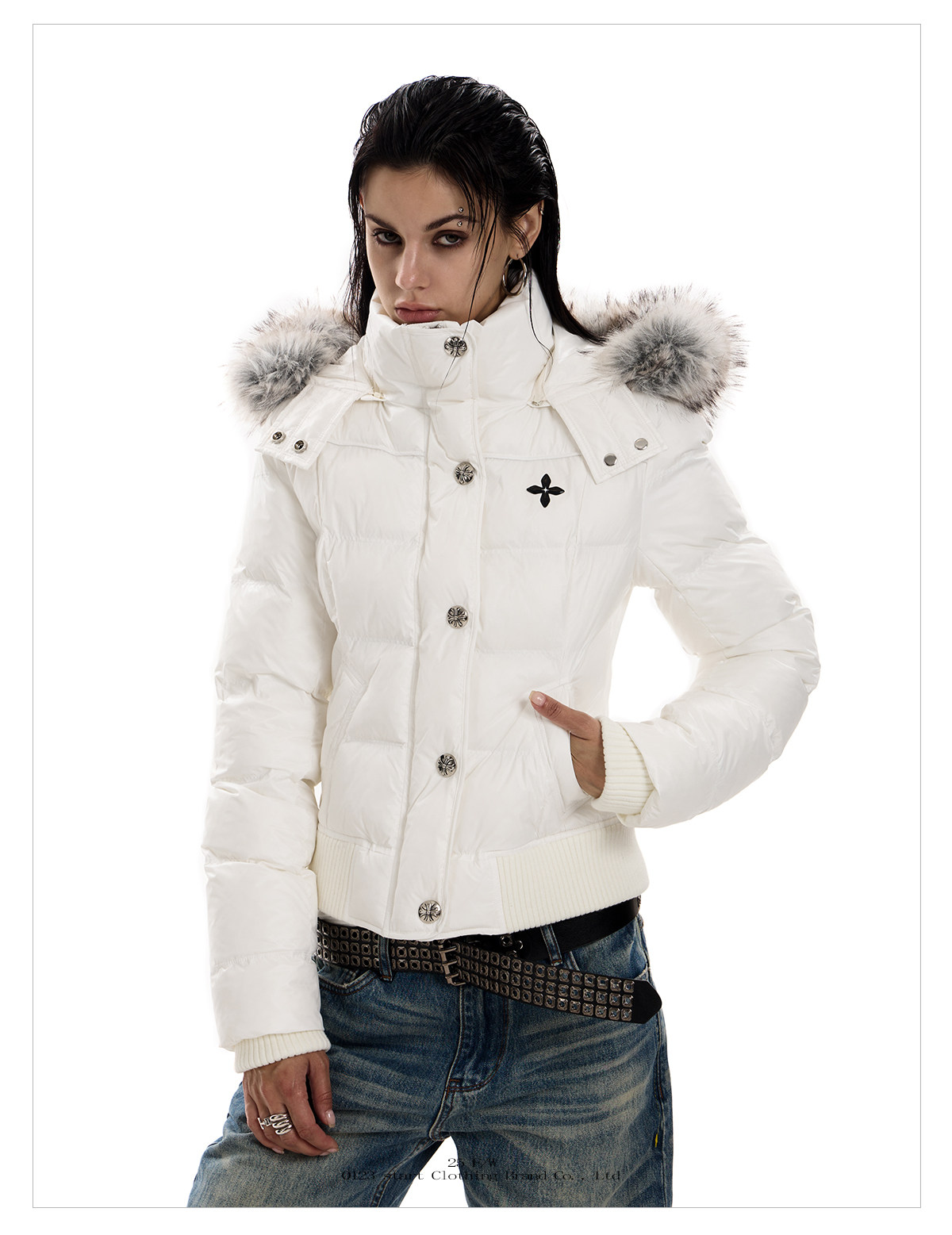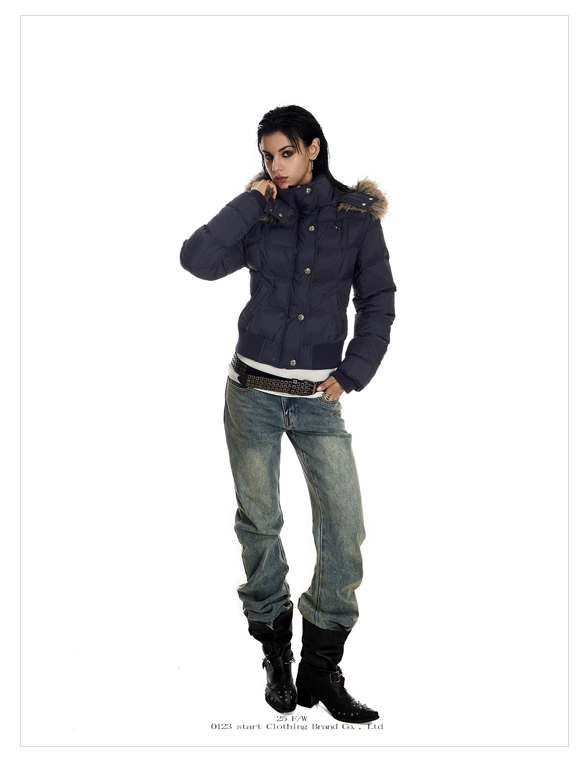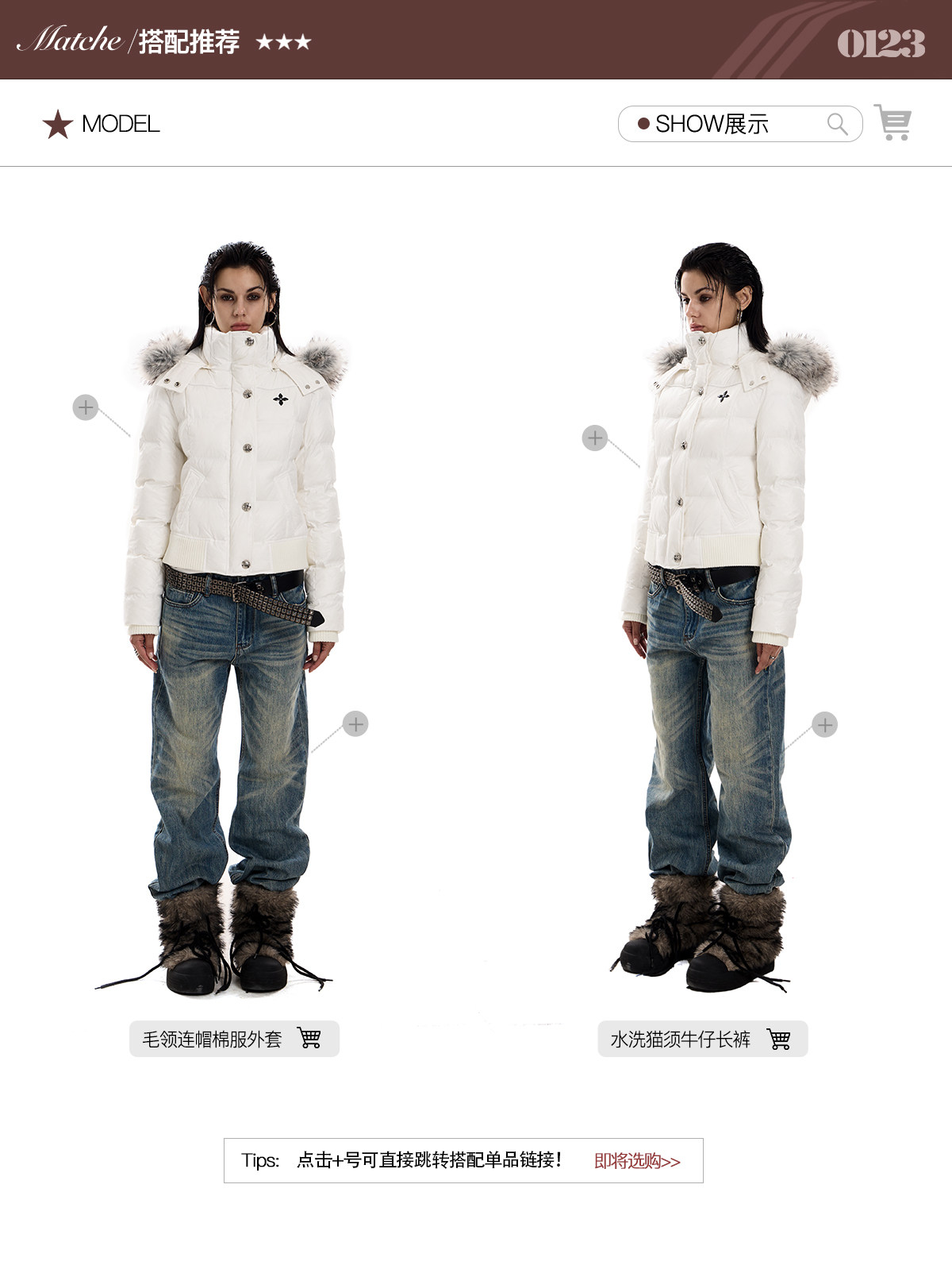 0123Start Fur Collar Slim Fit Hooded Cotton Jacket for Women Trendy Brand Winter New Warm Short White Cotton Coat