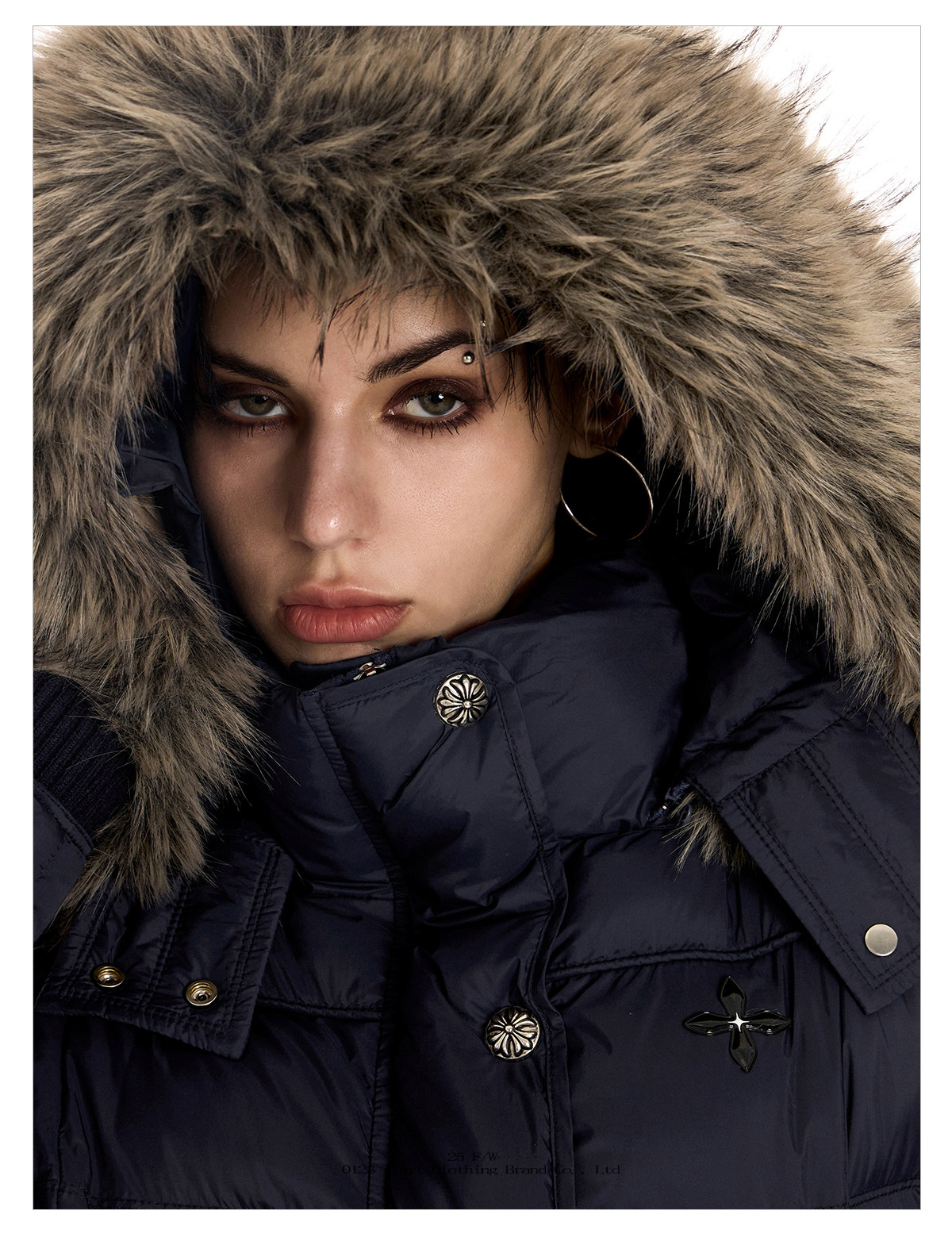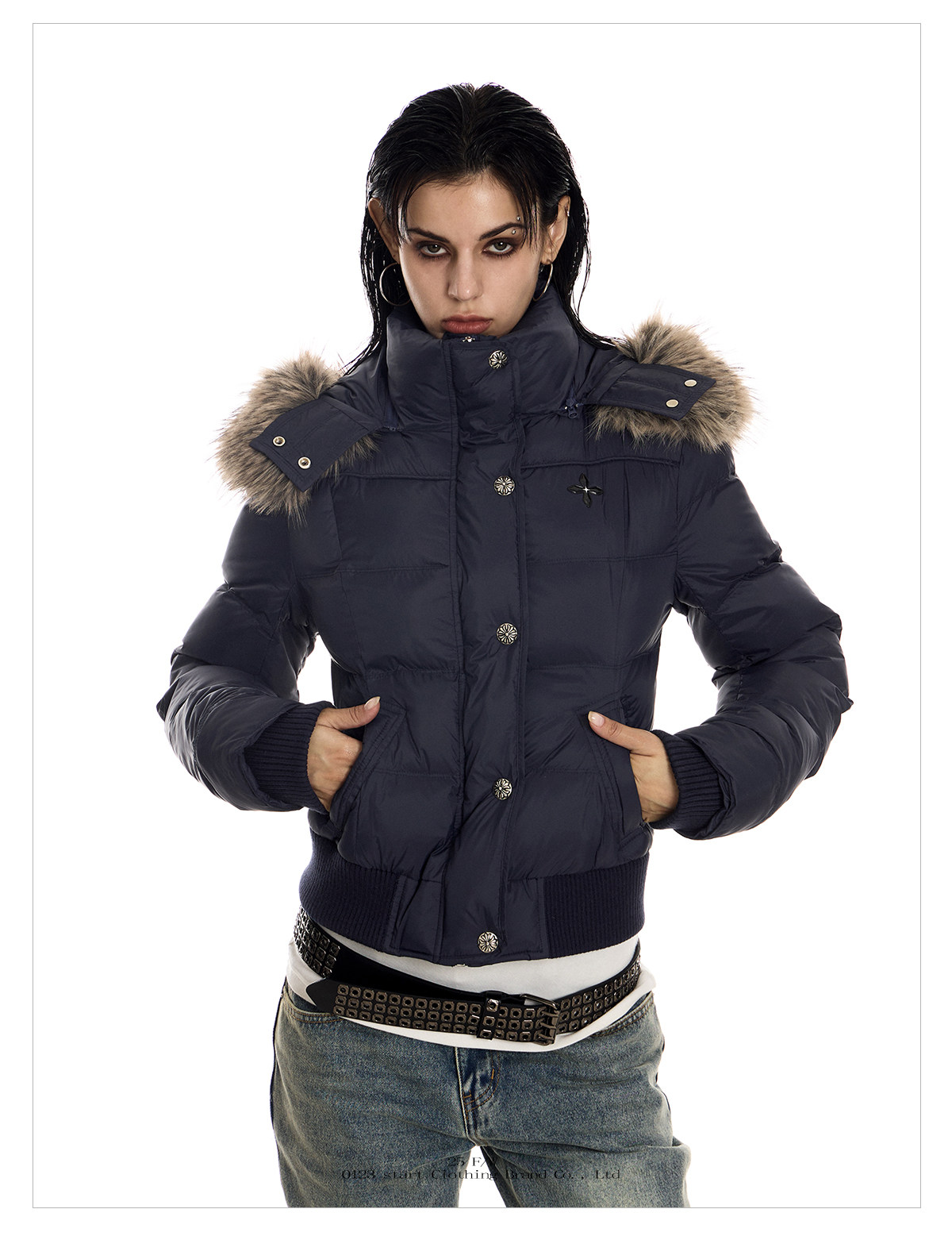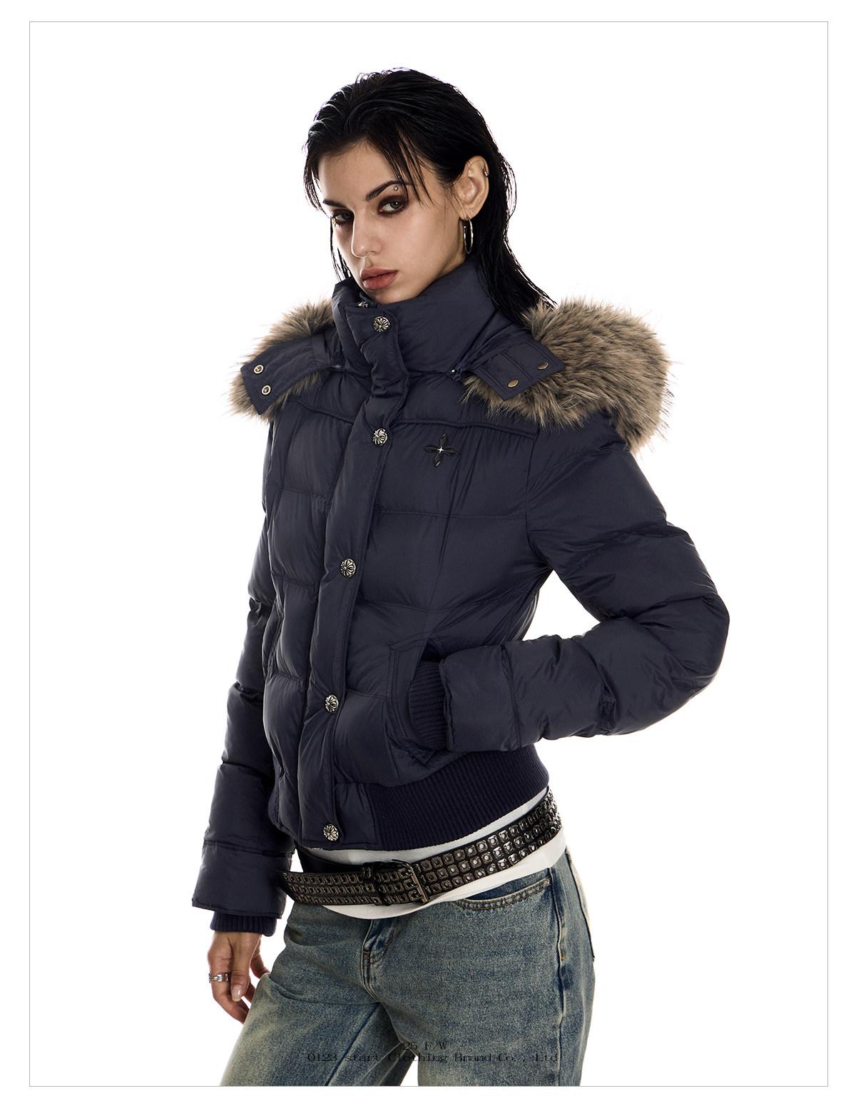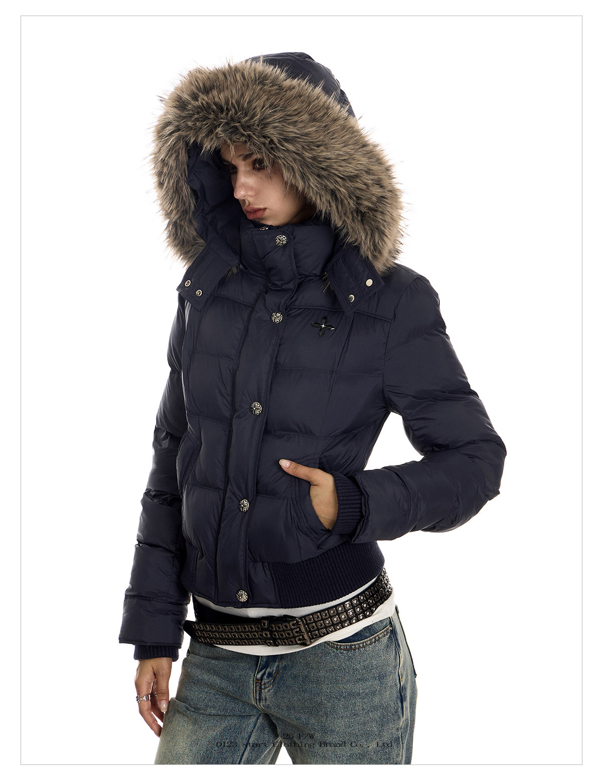 0123Start Fur Collar Slim Fit Hooded Cotton Jacket for Women Trendy Brand Winter New Warm Short White Cotton Coat