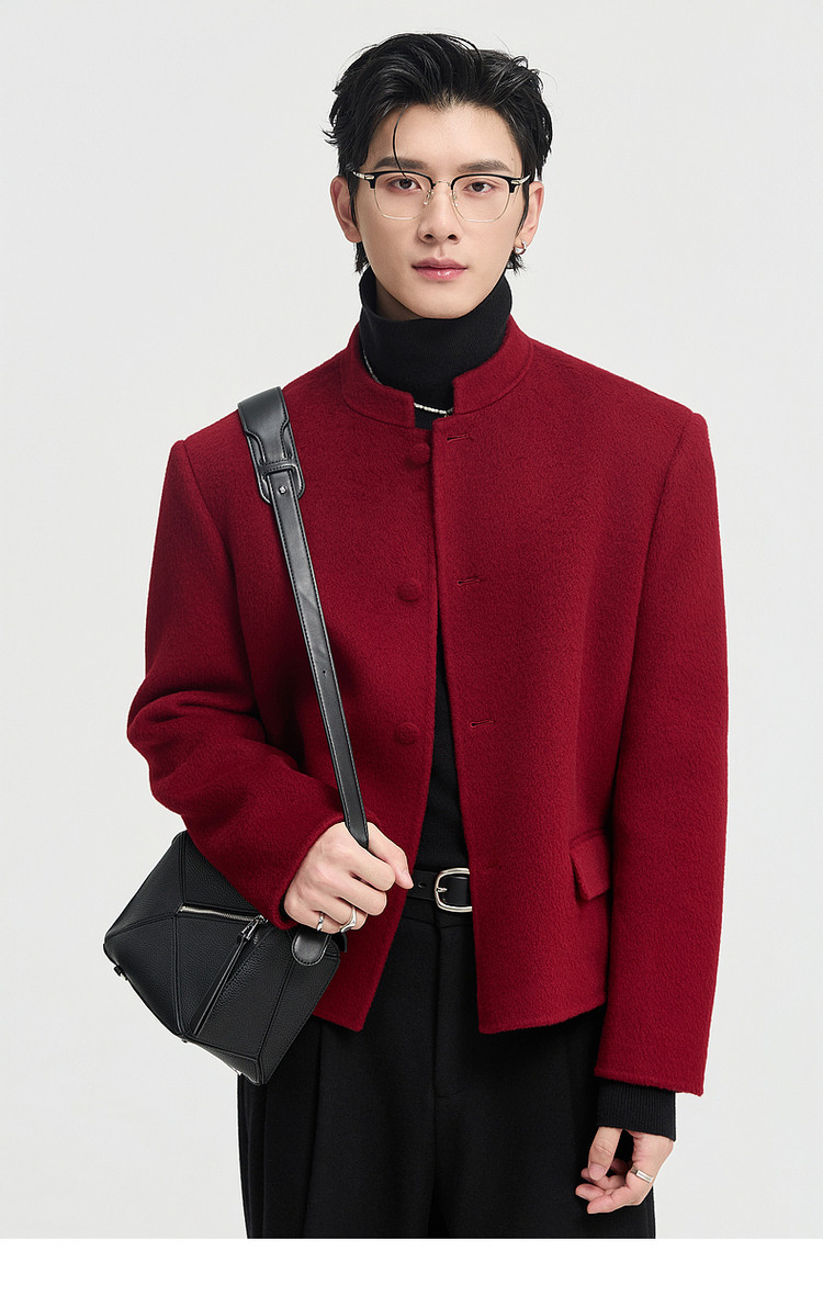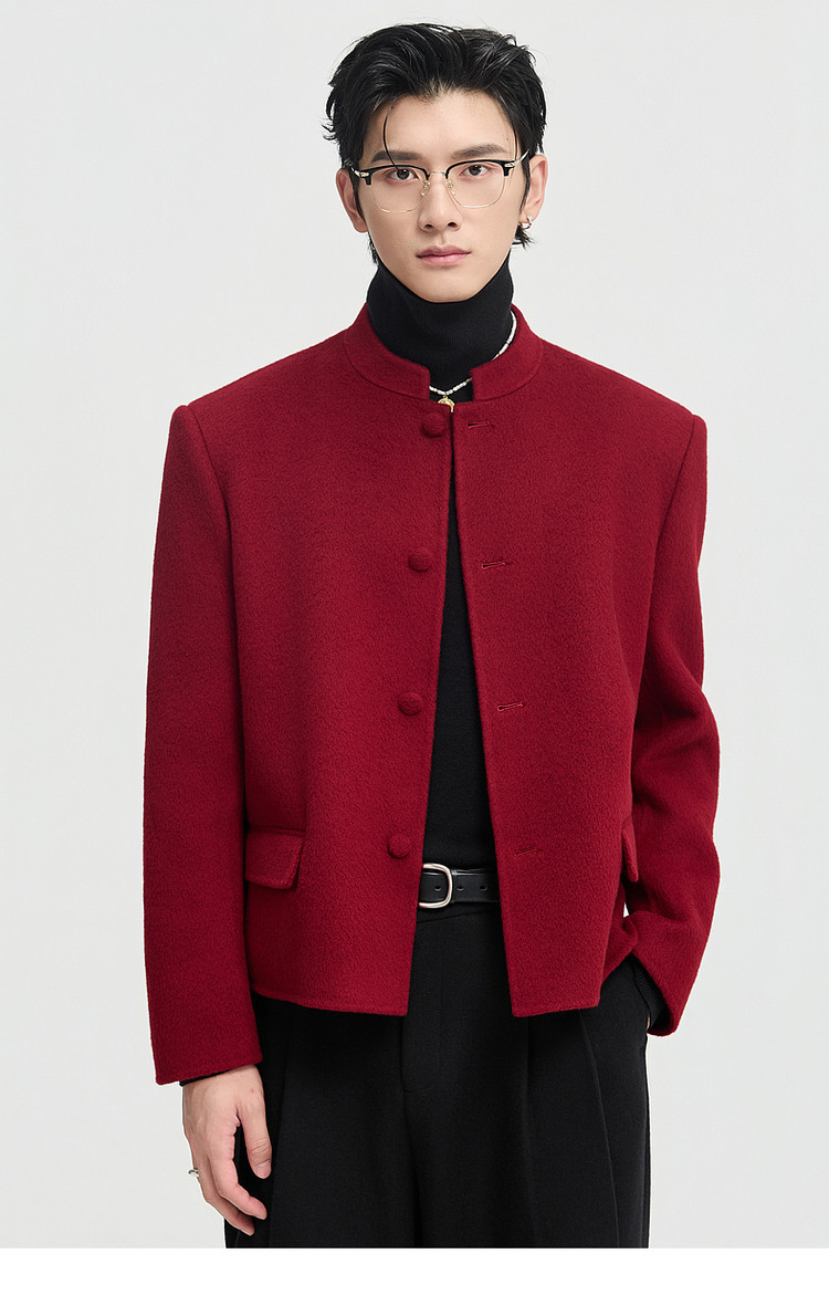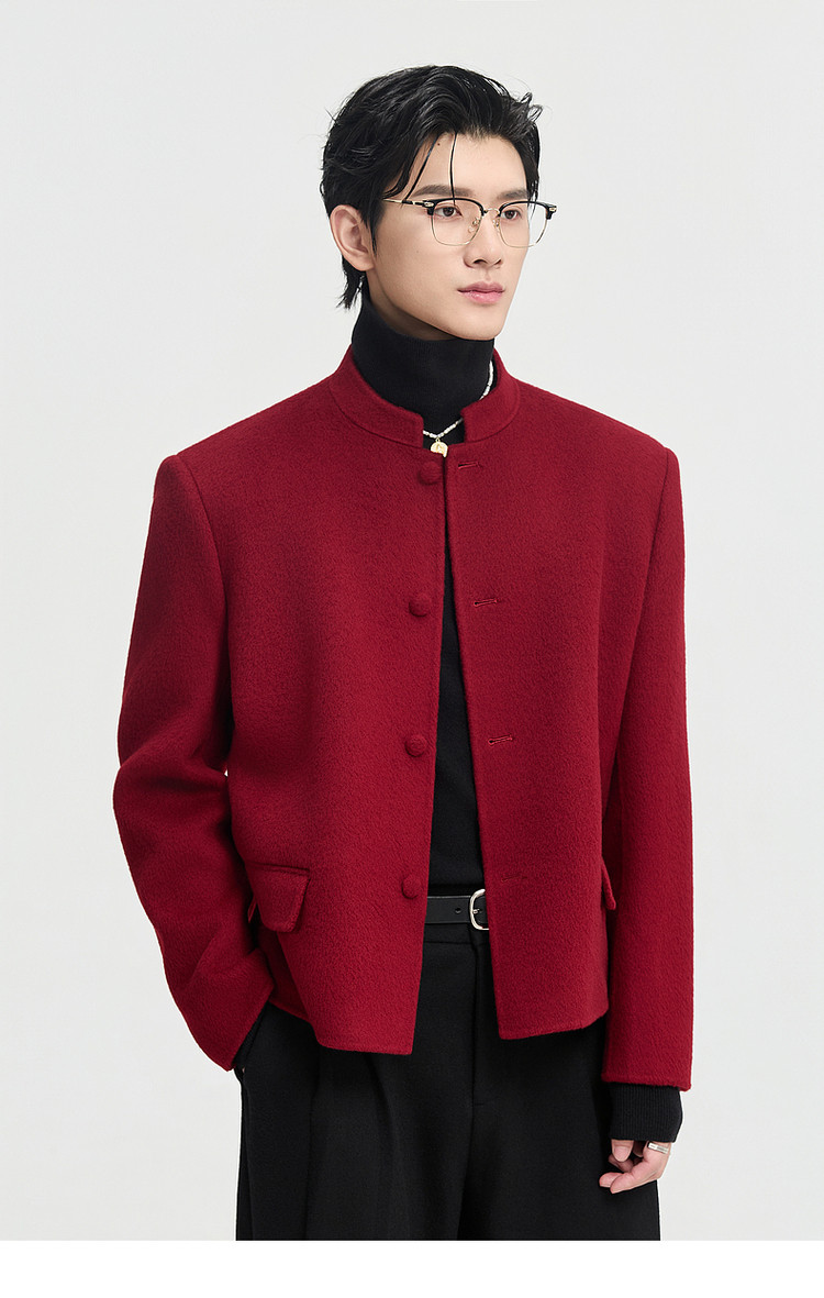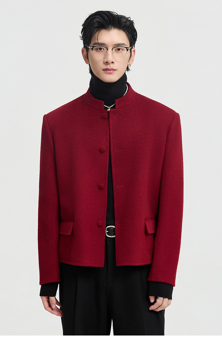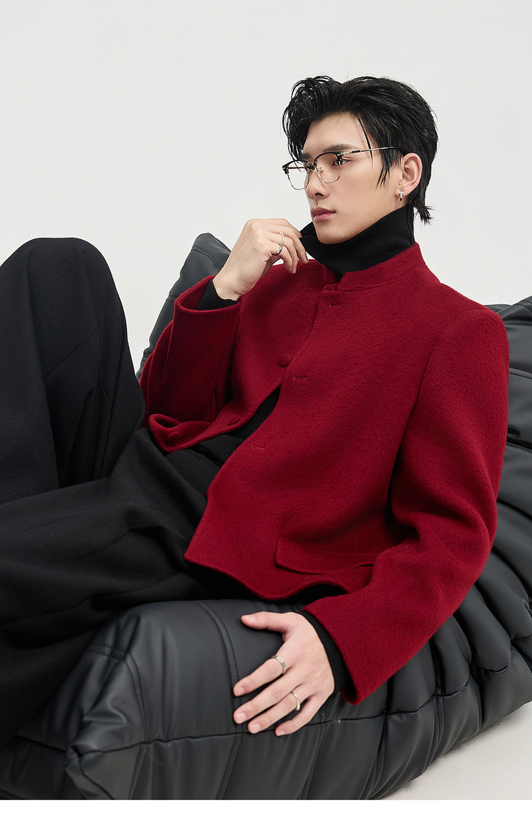 [Same Style as Zheng Yecheng] Earl Zhuoer Winter All-Wool Chinese-Style New Double-Sided Woolen Jacket Men's Red Coat