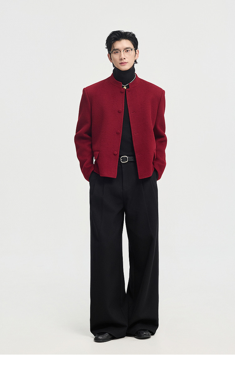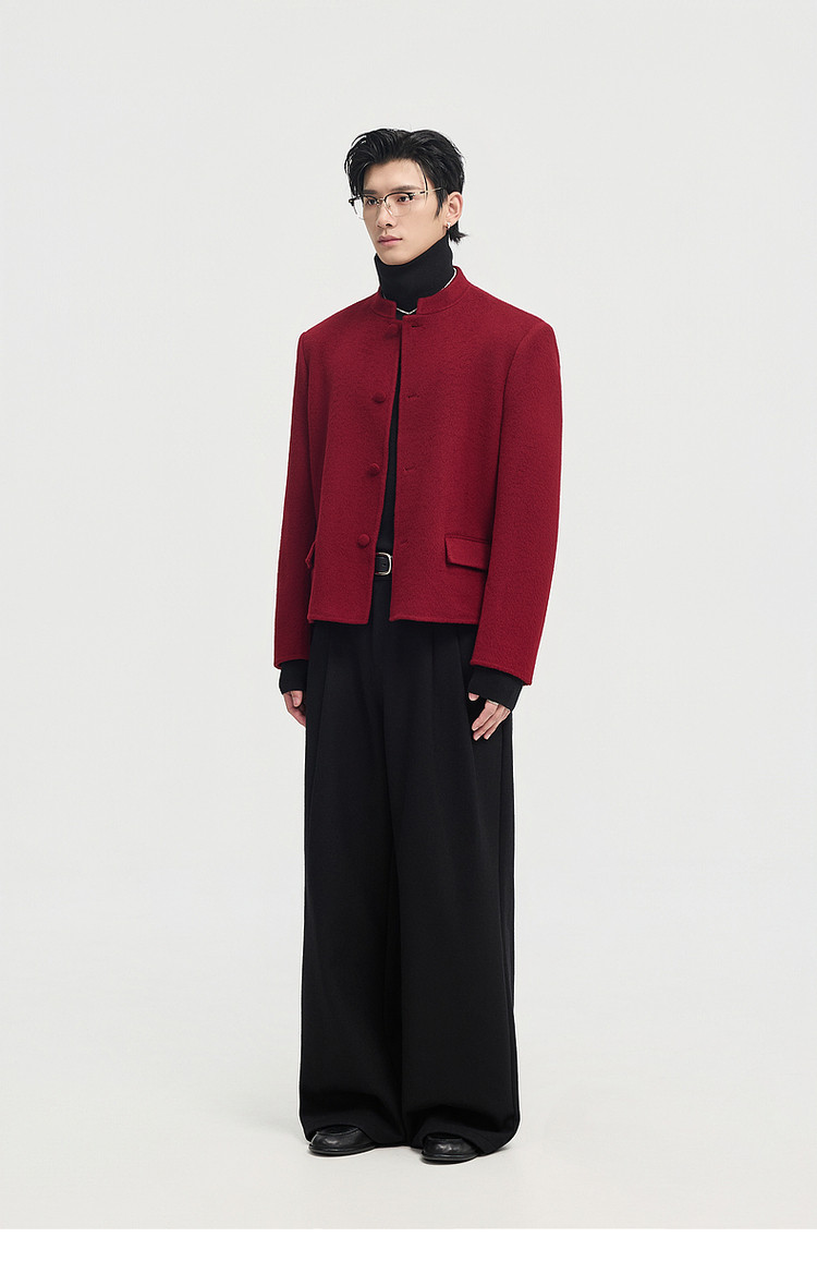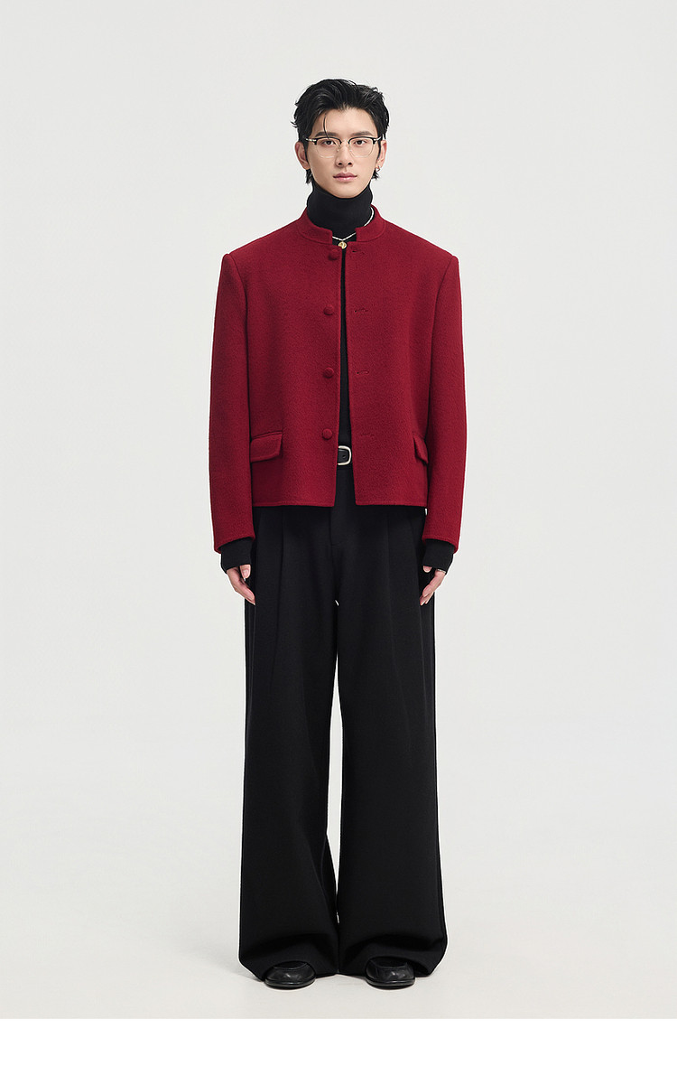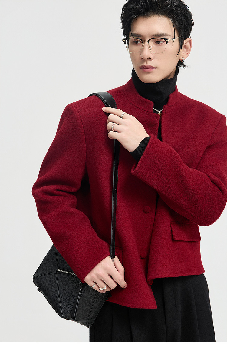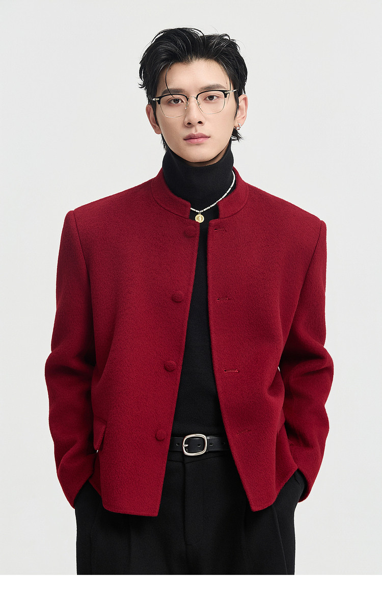 [Same Style as Zheng Yecheng] Earl Zhuoer Winter All-Wool Chinese-Style New Double-Sided Woolen Jacket Men's Red Coat