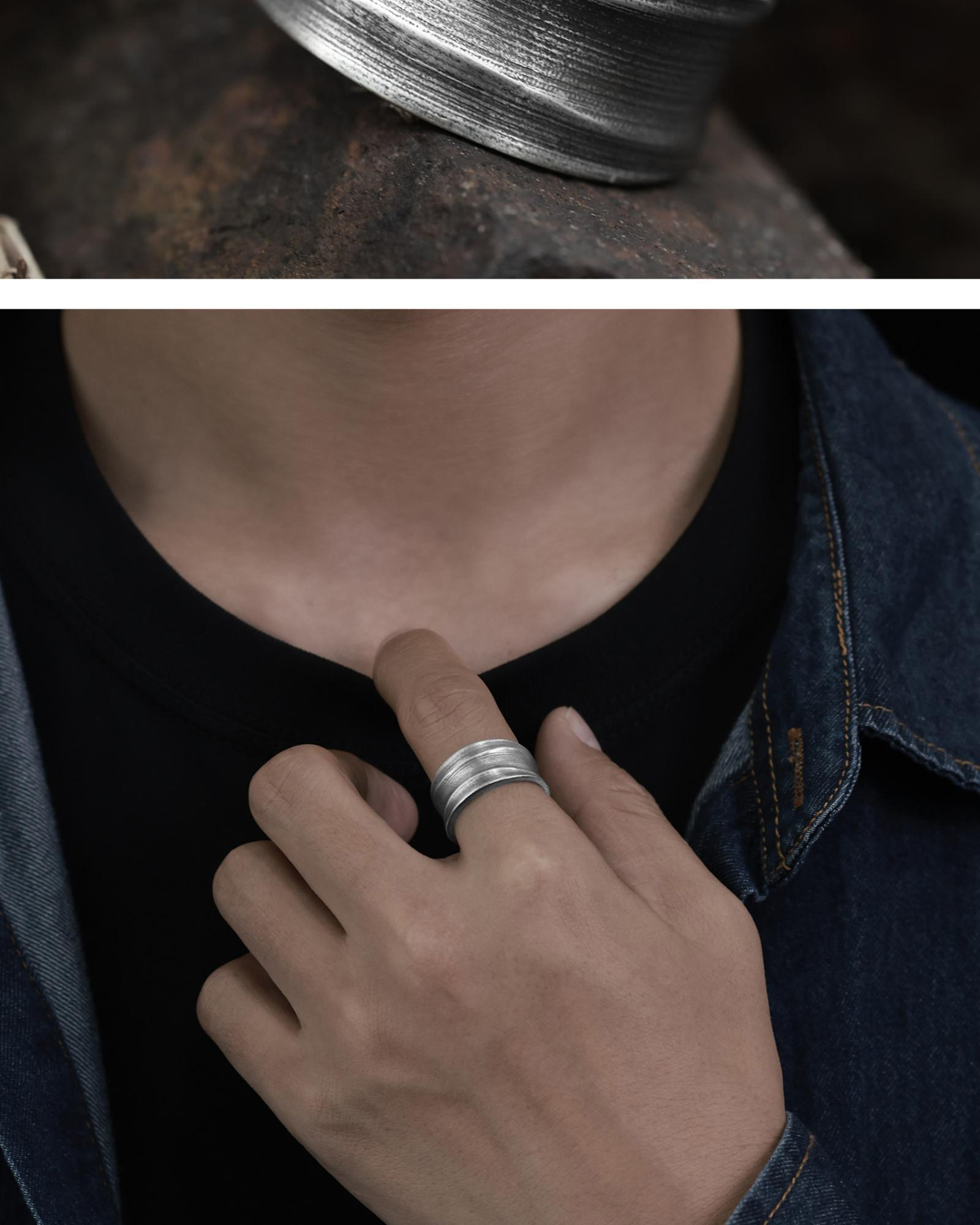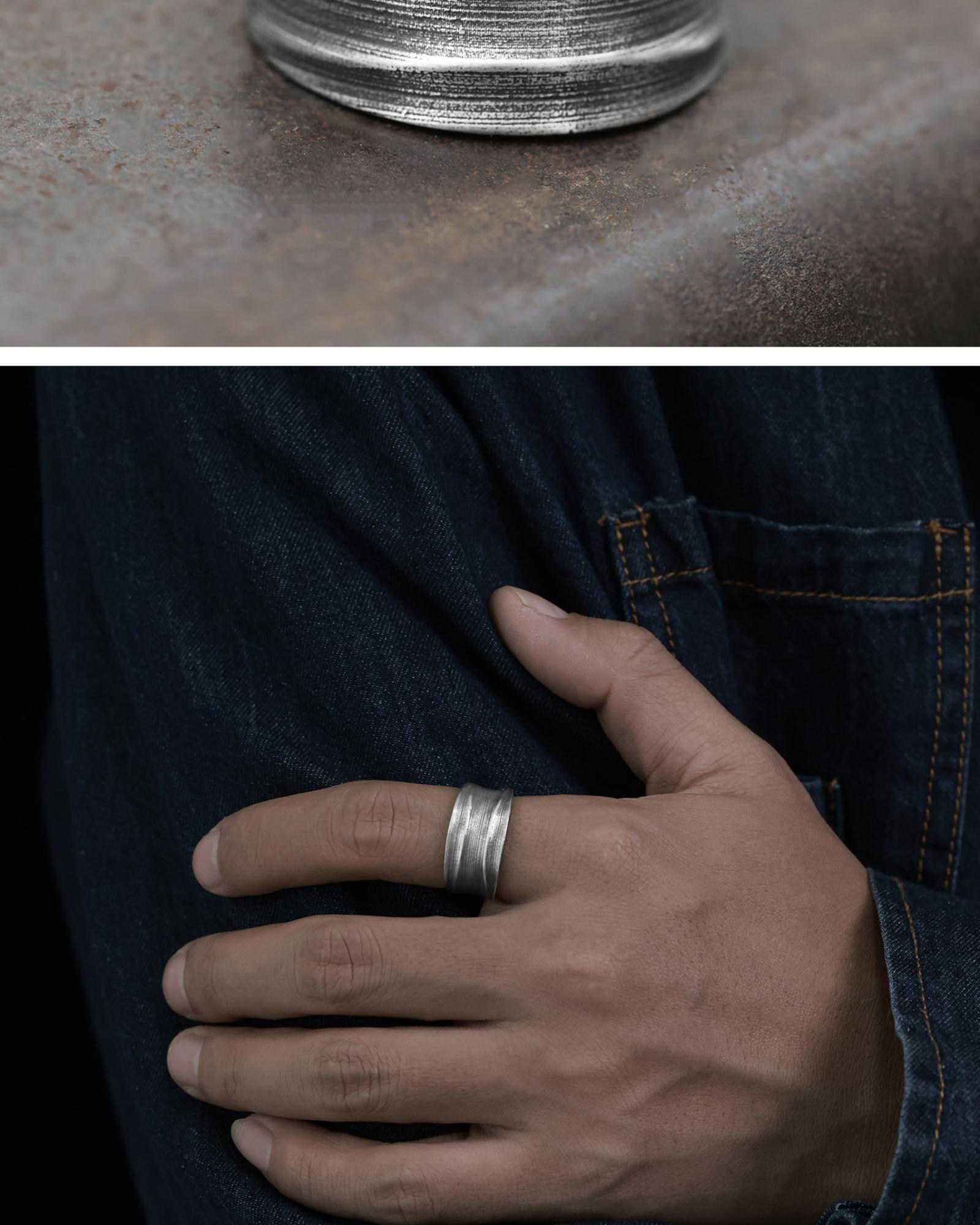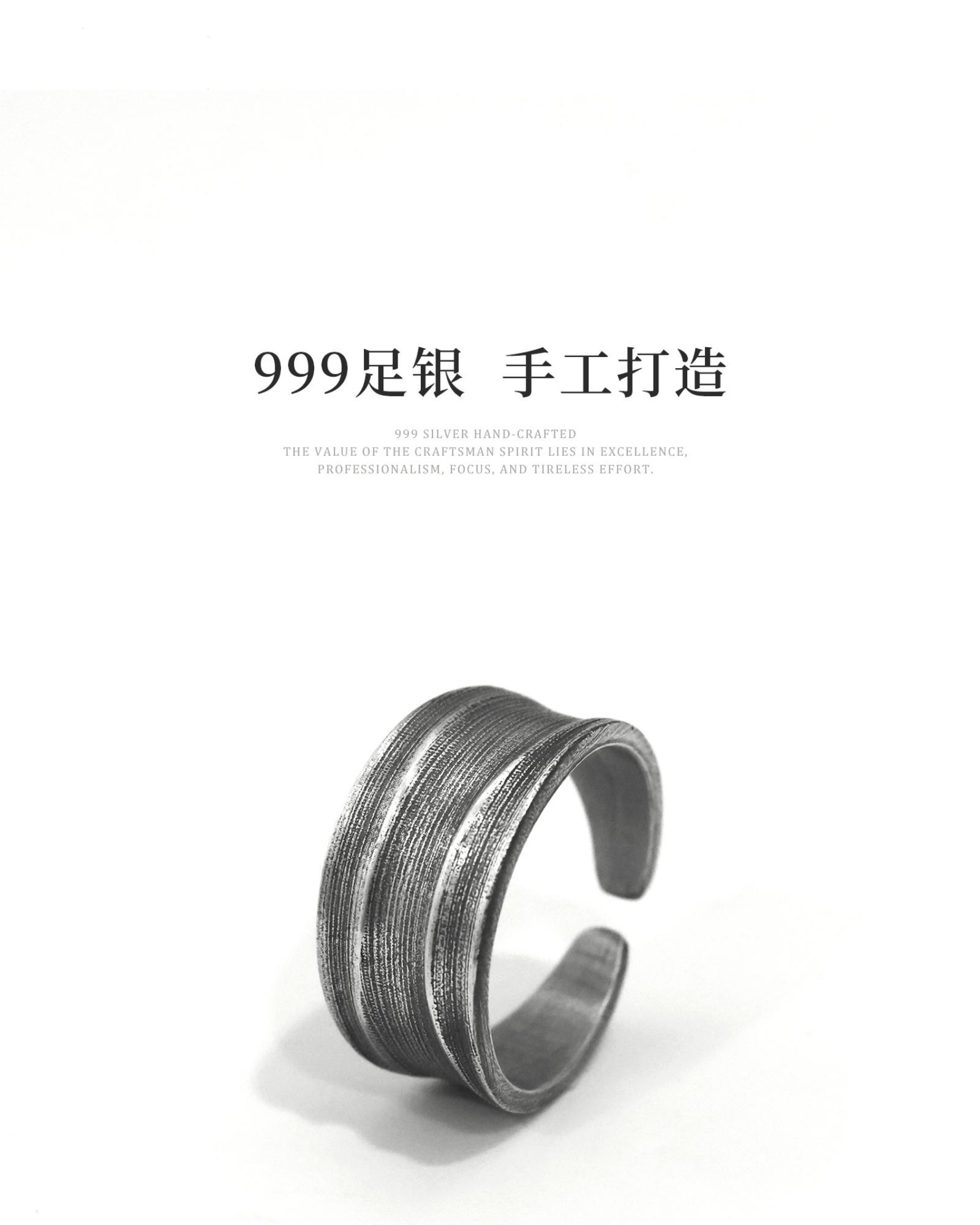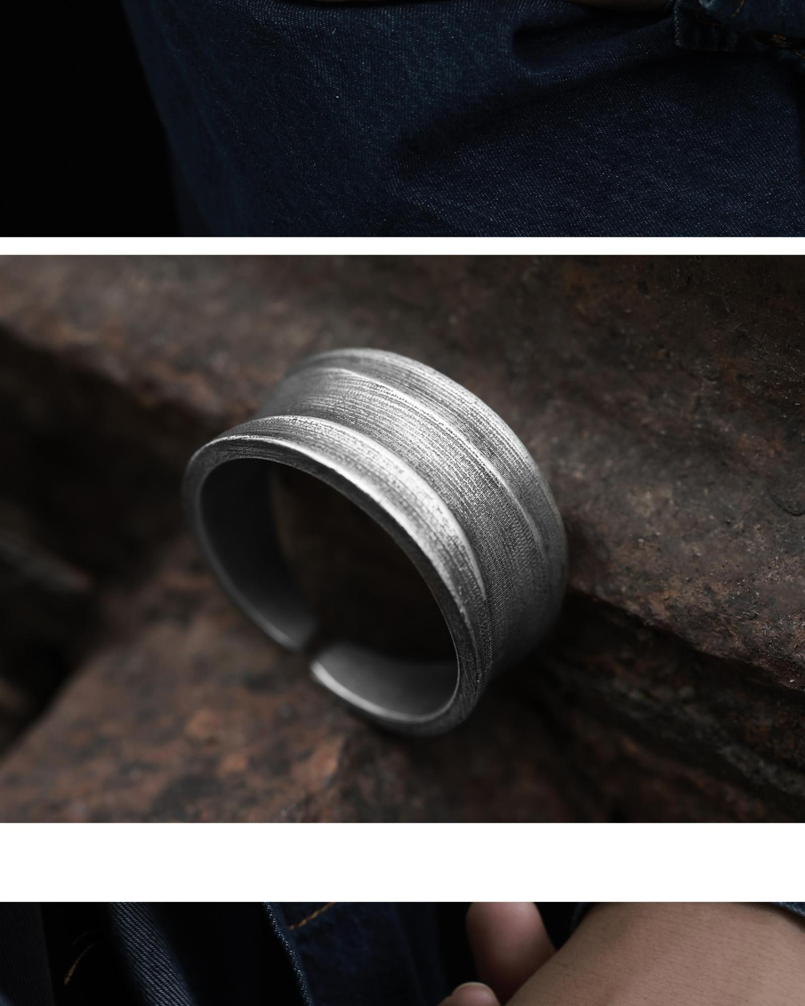 Yinshu Original "Zhiyi" Wide Band Ring for Men, 999 Pure Silver, Single Piece, Minimalist Style, Men's Pure Silver Niche Ring