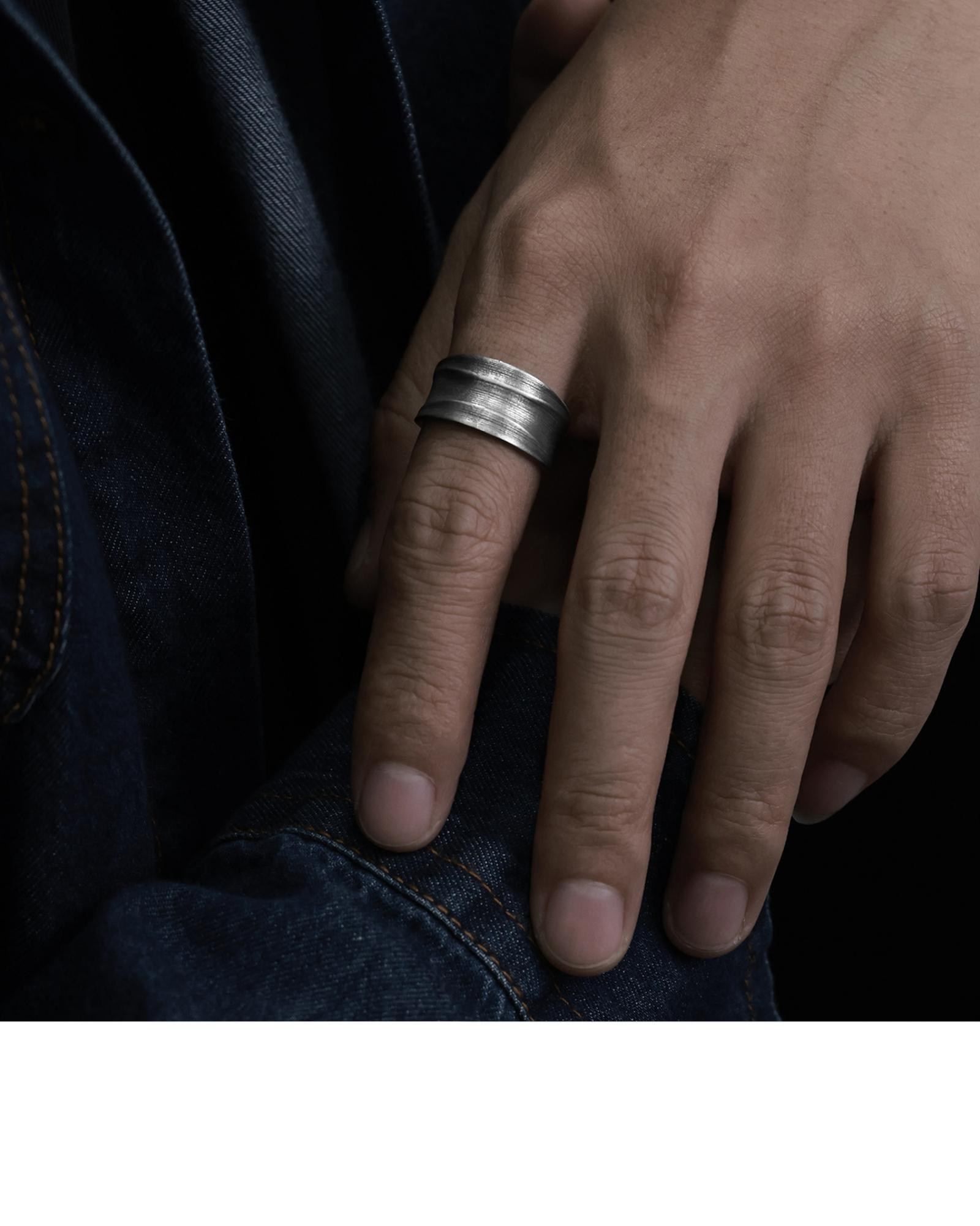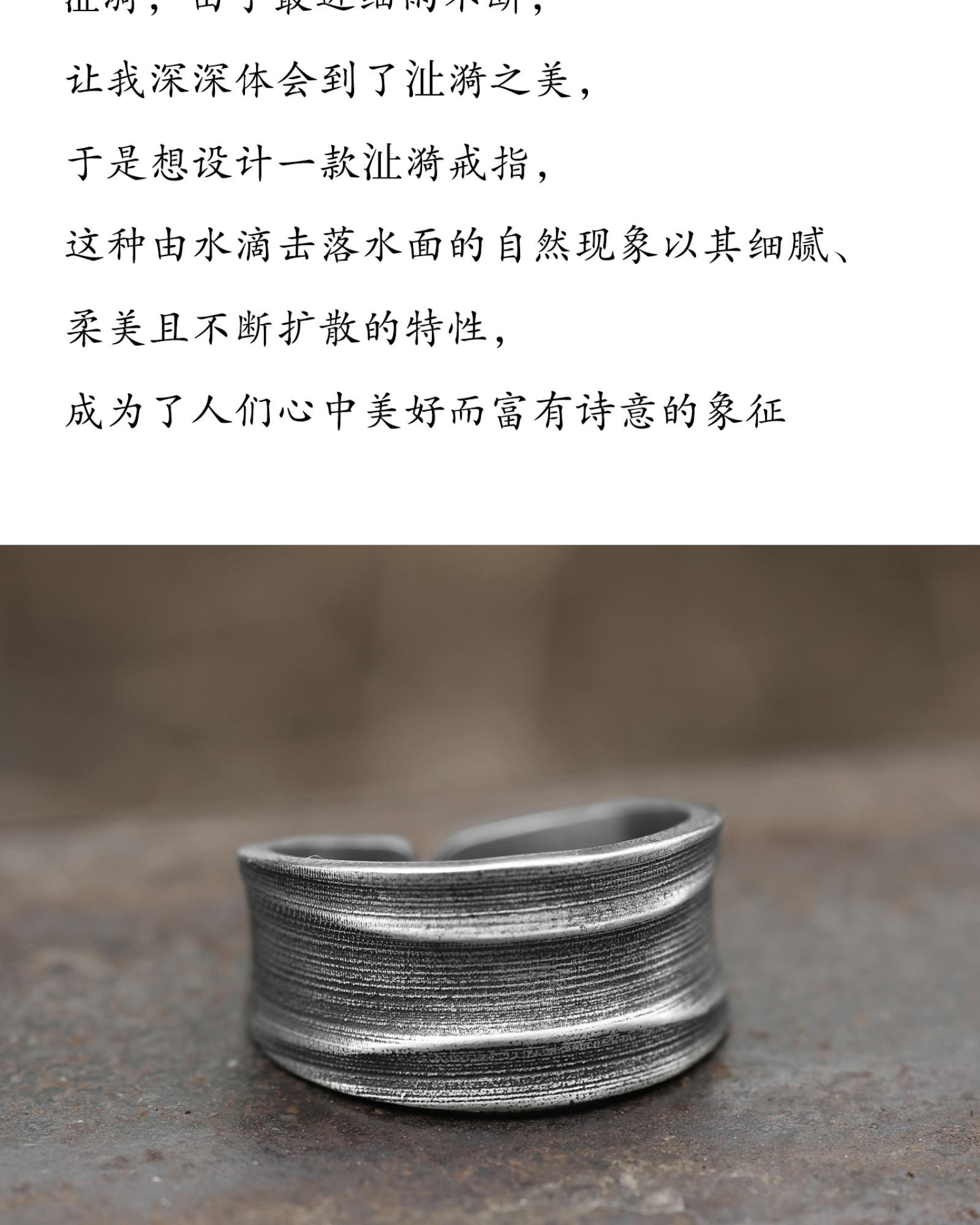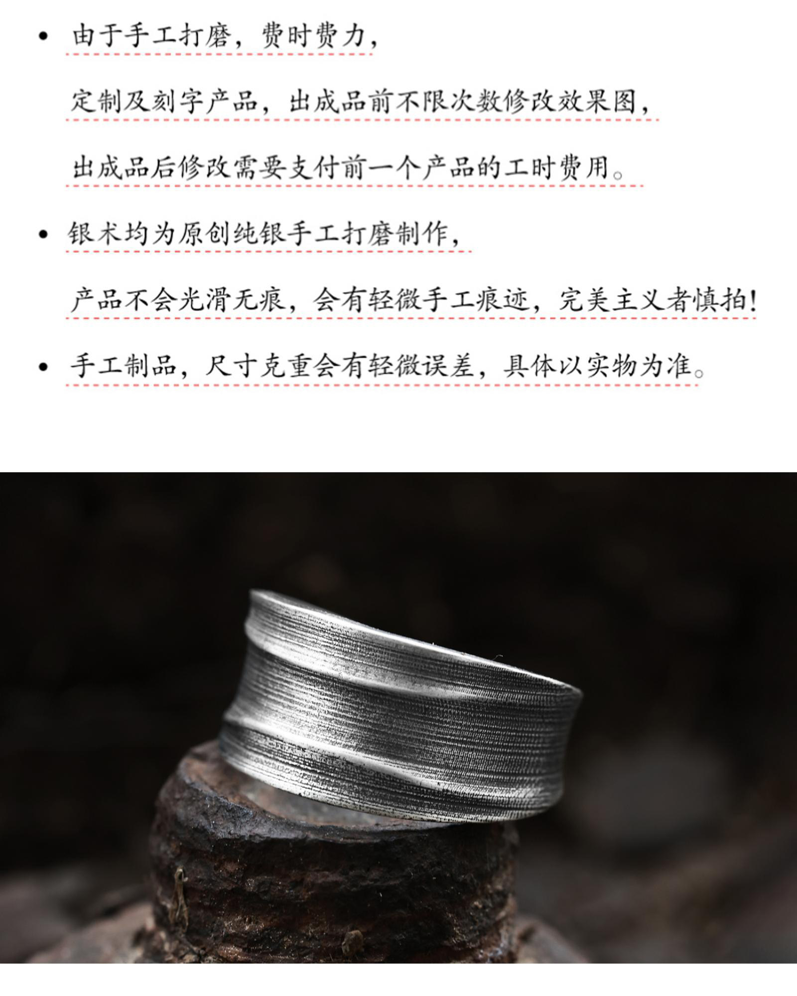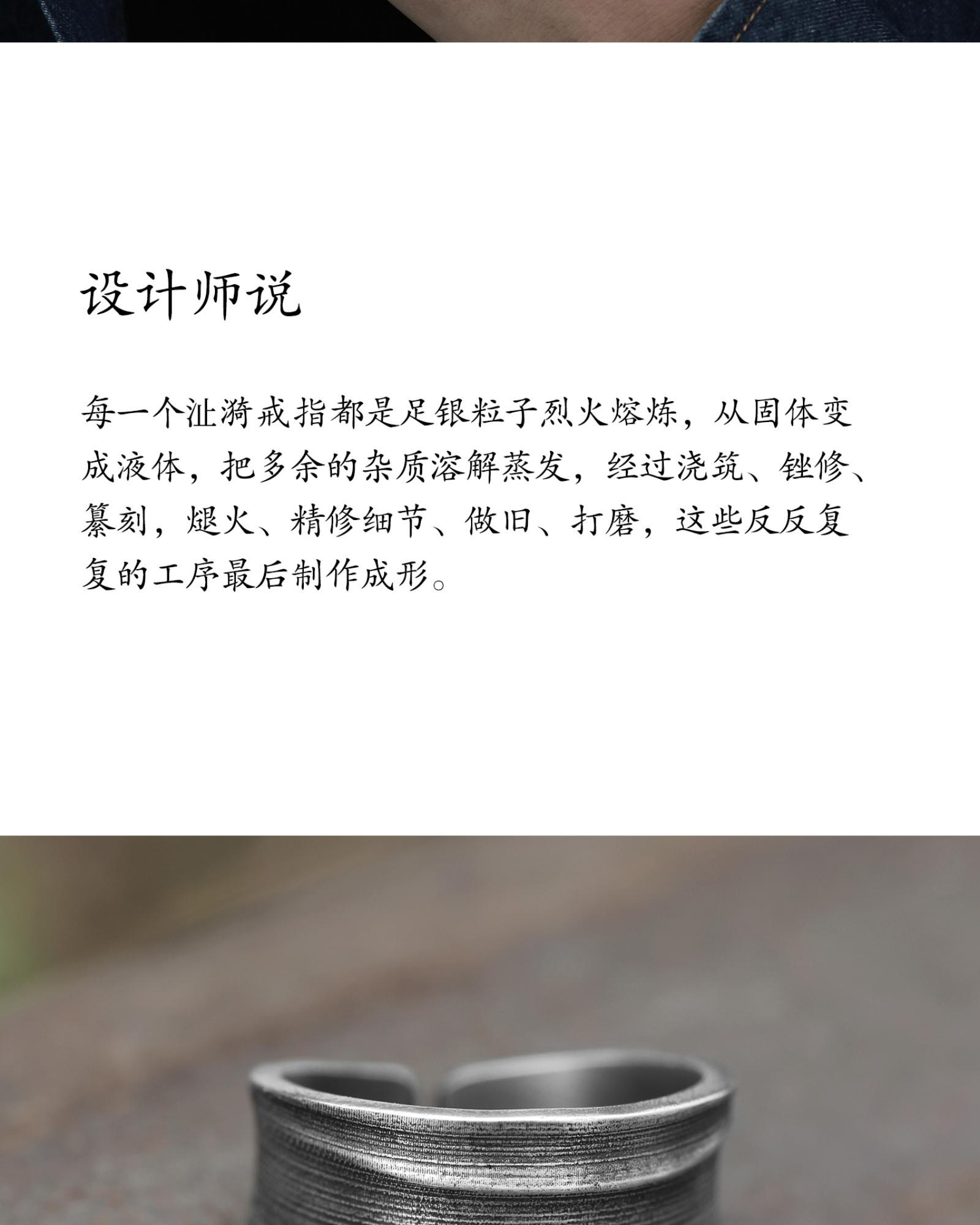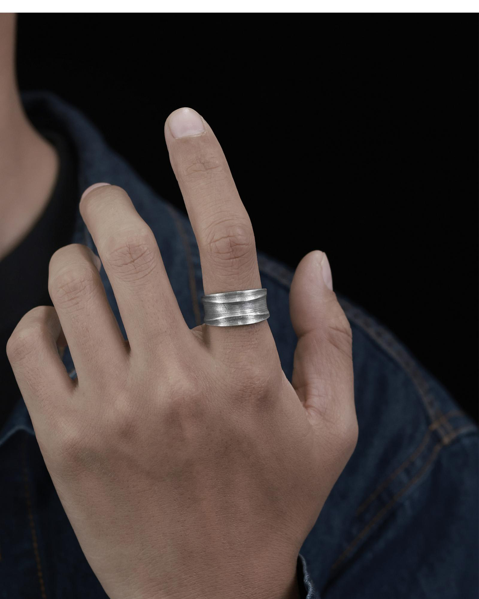 Yinshu Original "Zhiyi" Wide Band Ring for Men, 999 Pure Silver, Single Piece, Minimalist Style, Men's Pure Silver Niche Ring