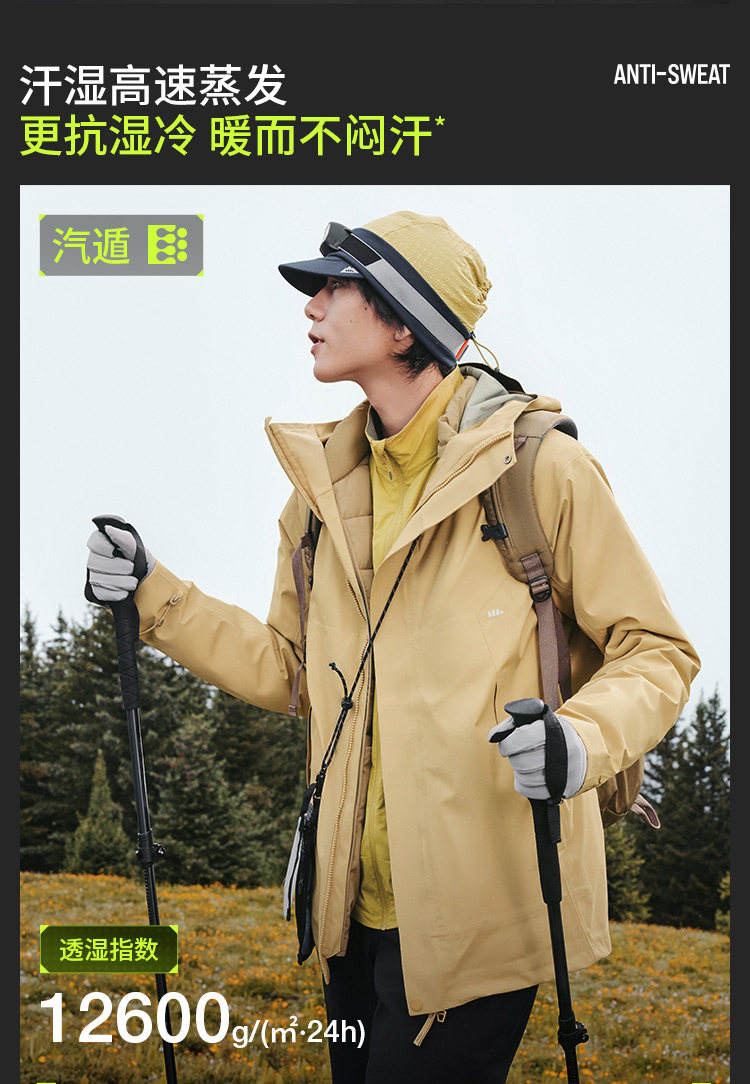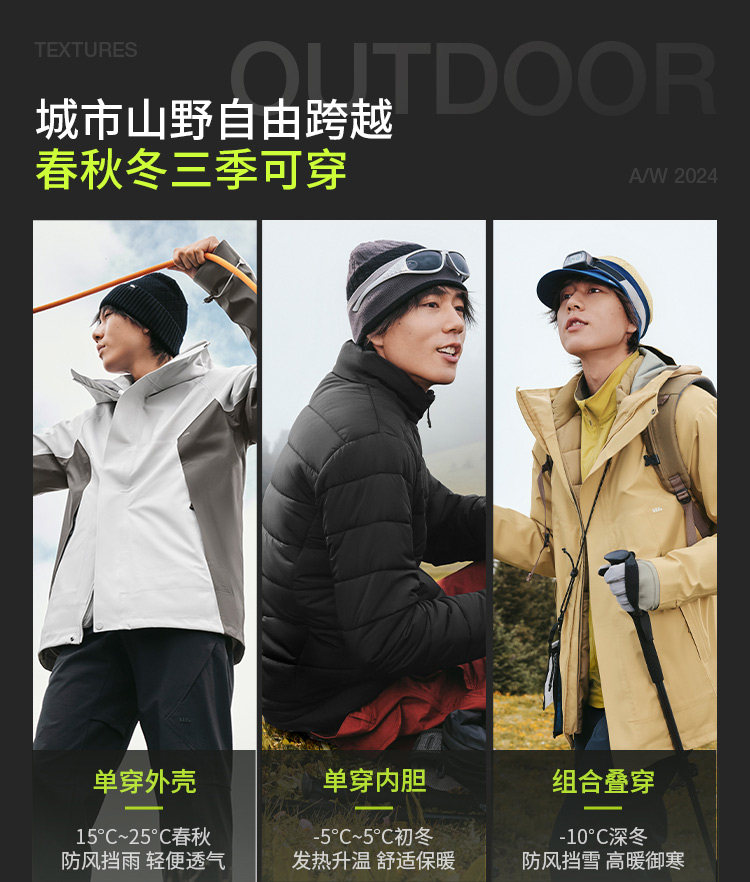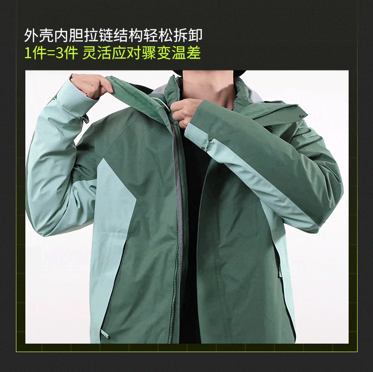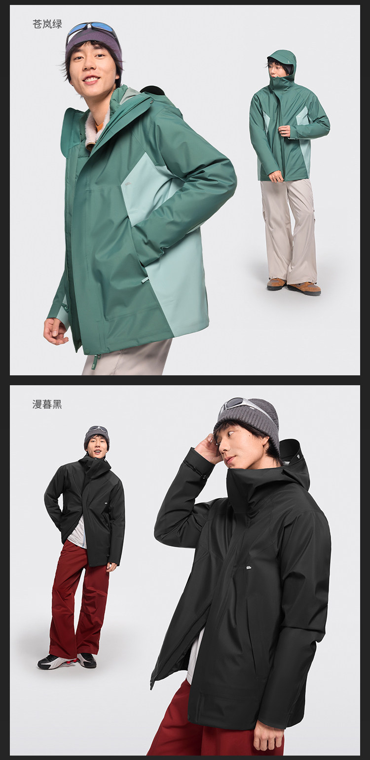 Jiaoxia Men's 3-in-1 Fleece Jacket Waterproof Windproof Thickened Outdoor Wear-Resistant Mountaineering Jacket Warm Coat