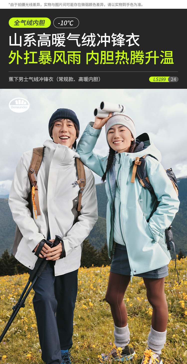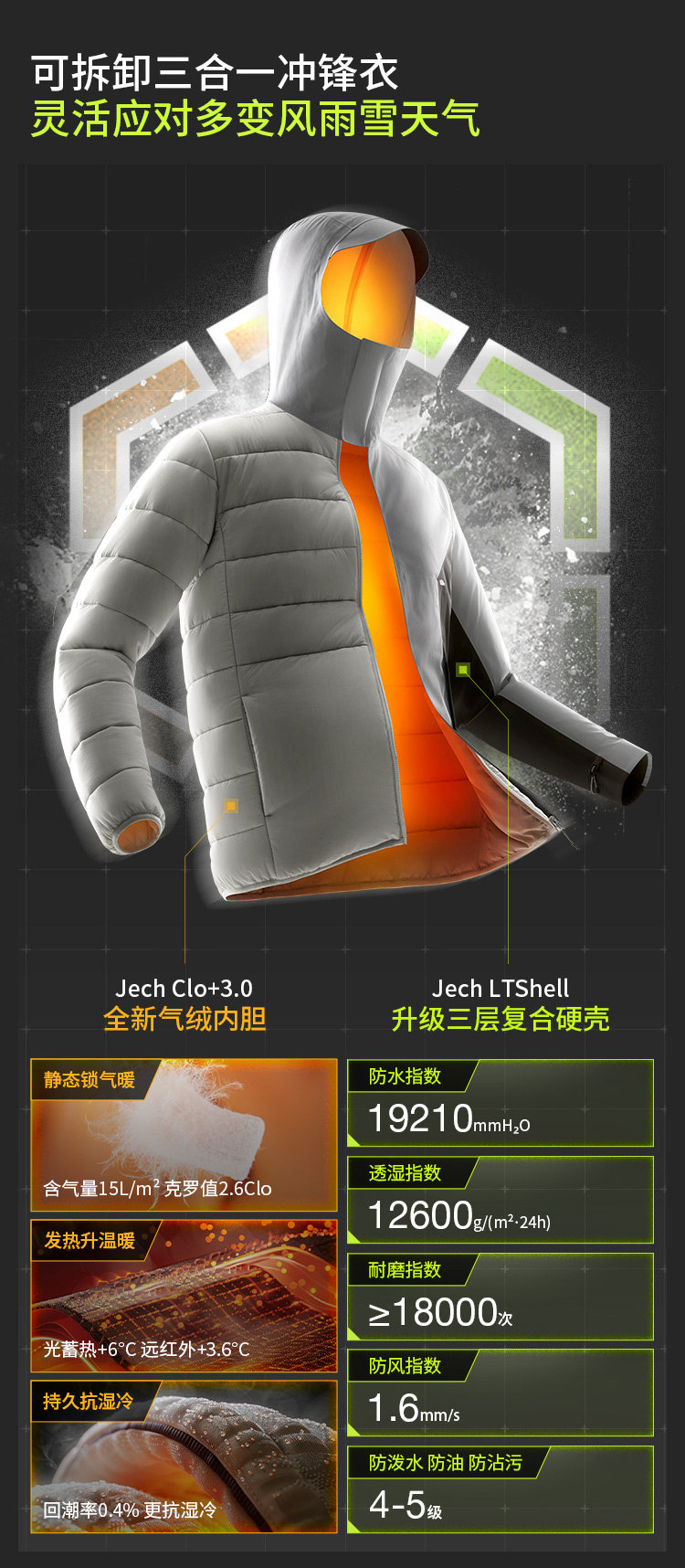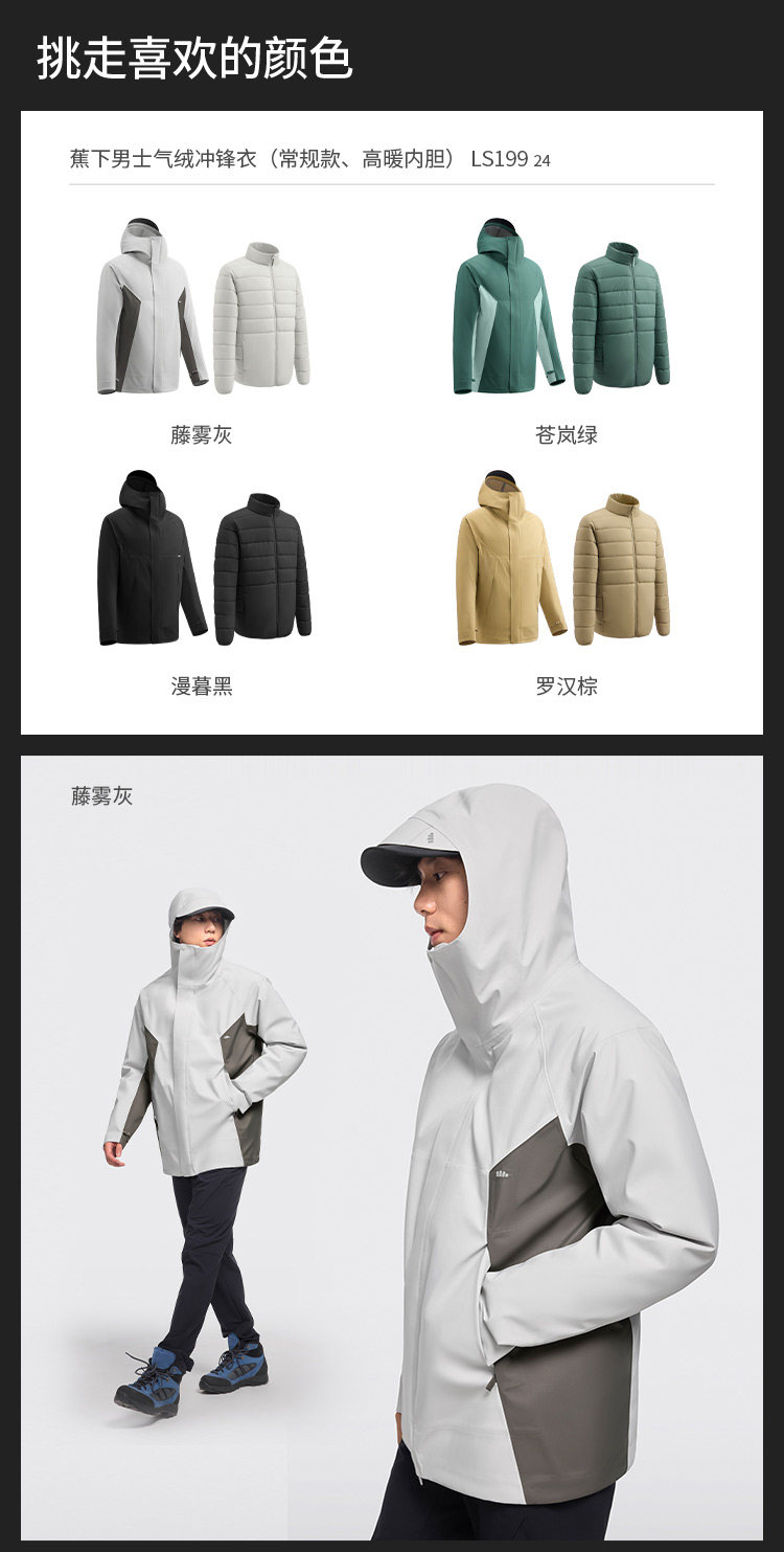 Jiaoxia Men's 3-in-1 Fleece Jacket Waterproof Windproof Thickened Outdoor Wear-Resistant Mountaineering Jacket Warm Coat