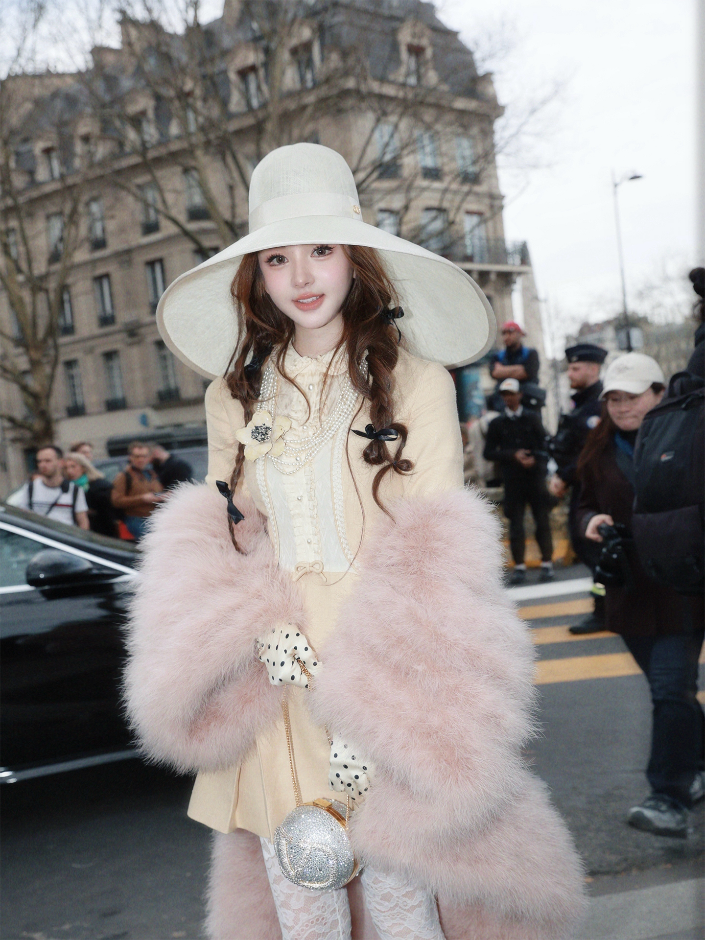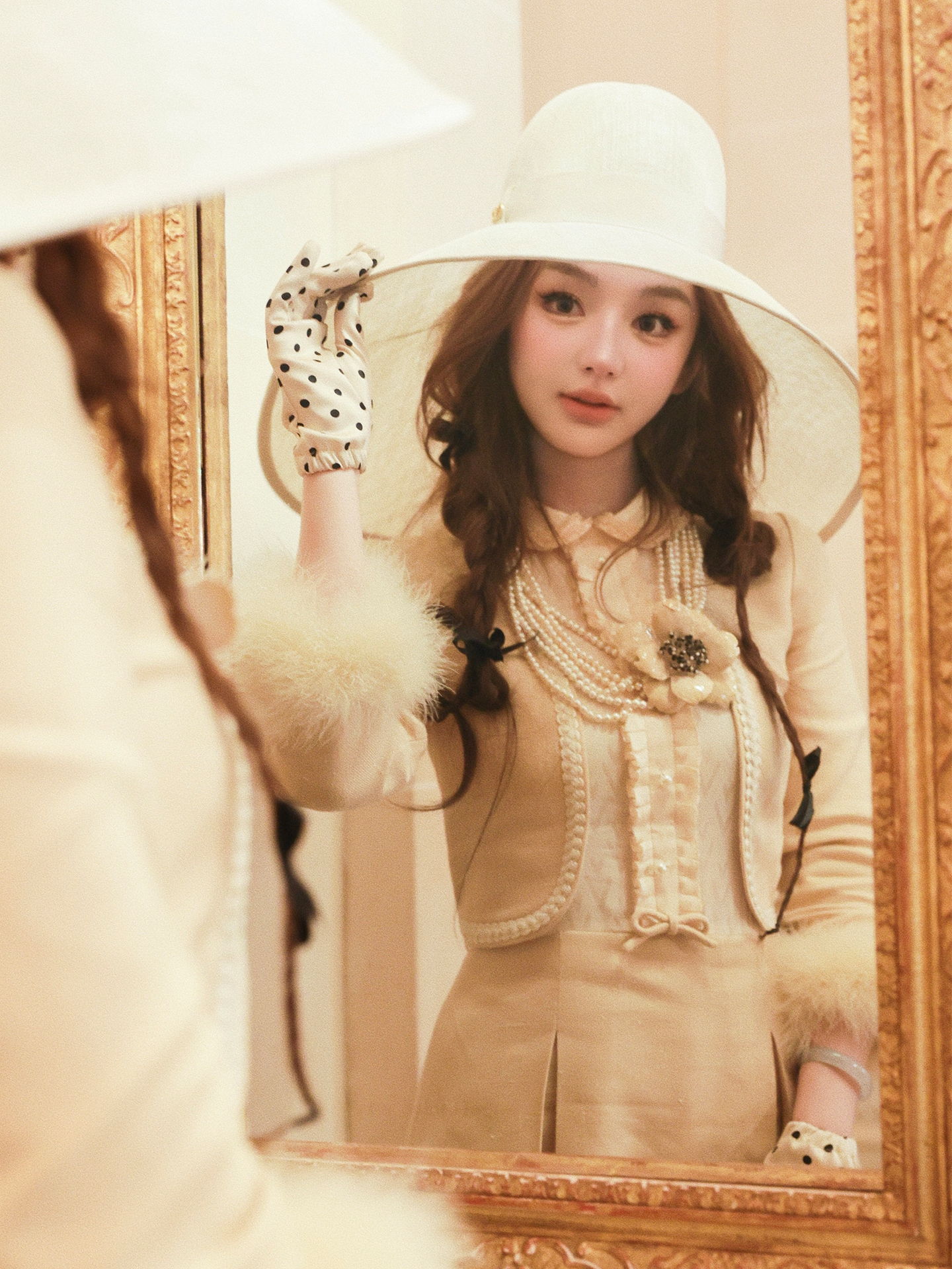 高智黄袖口处精心点缀两圈精选真鸵鸟毛 每一根羽丝都轻盈蓬松 似在微风中舞动