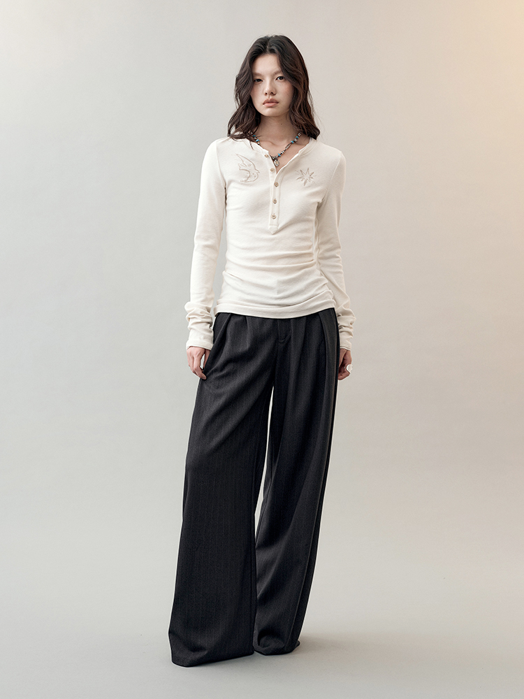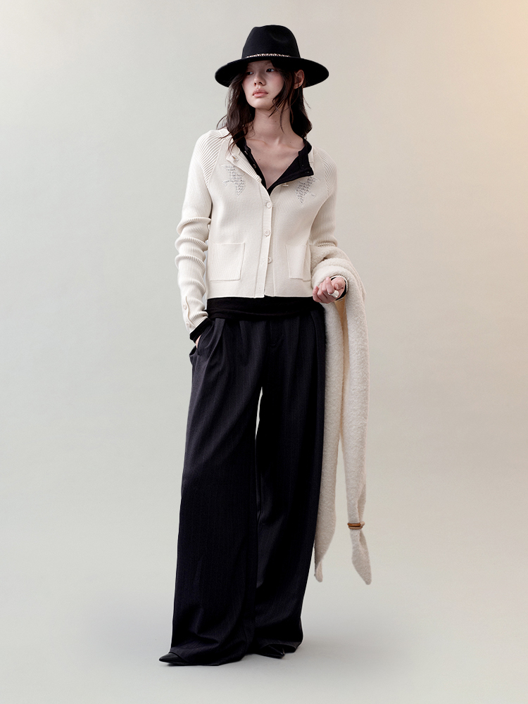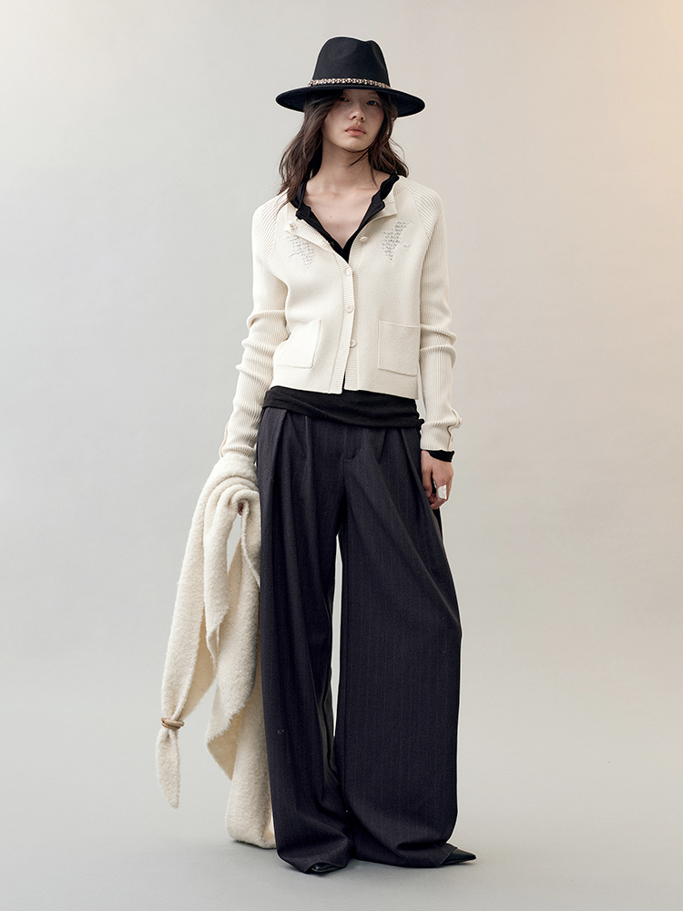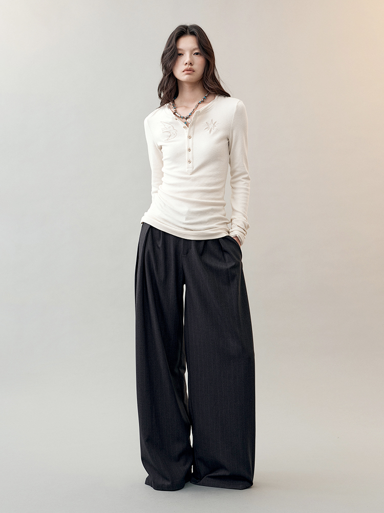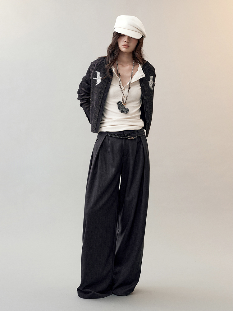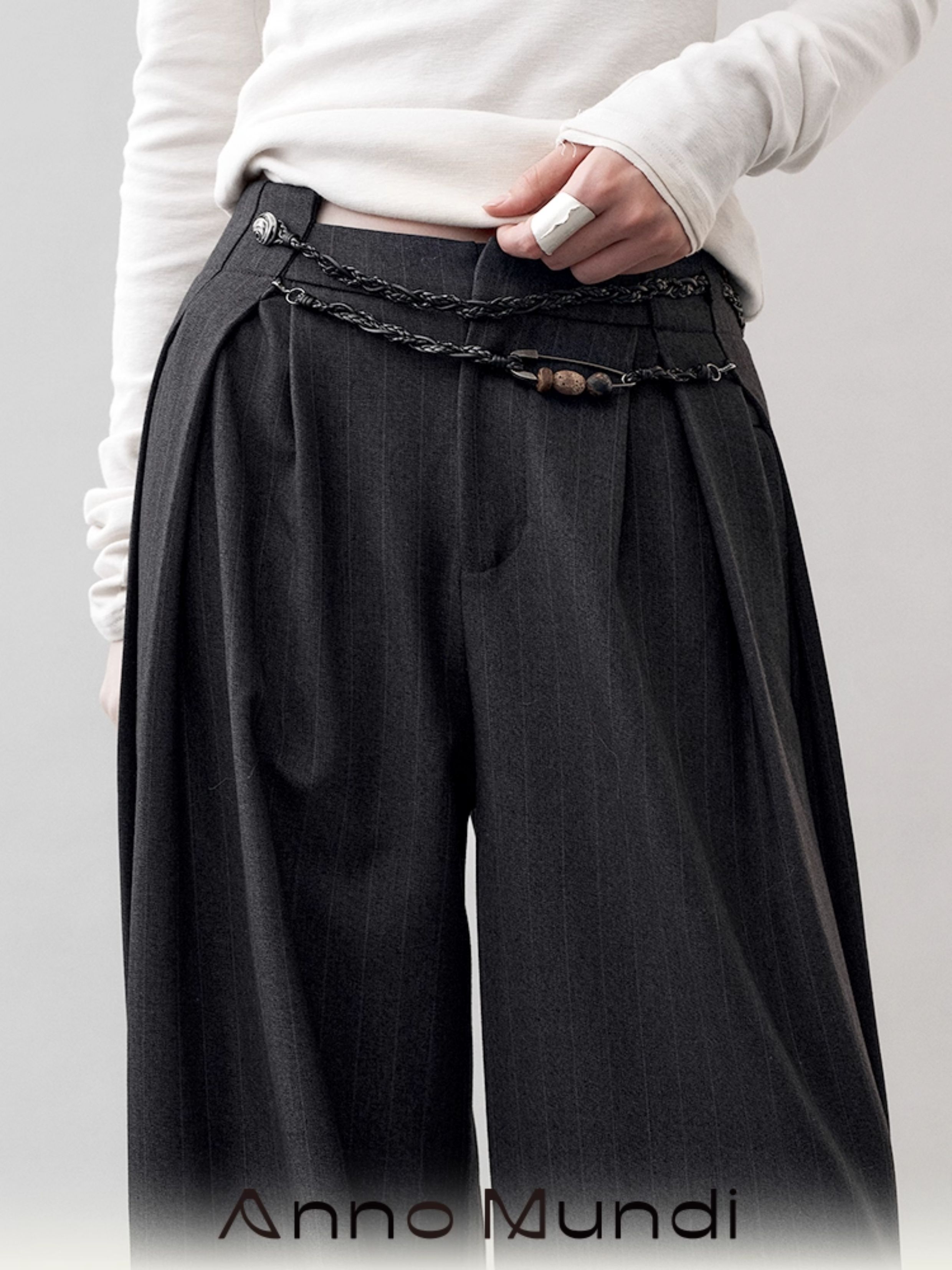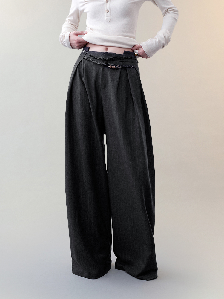 Chuangjiyuan [Waist Rhythm Elegant Design] 2025 Women's Pants with Layered Waistband Design, Deconstructed Wide-Leg Dress Pants