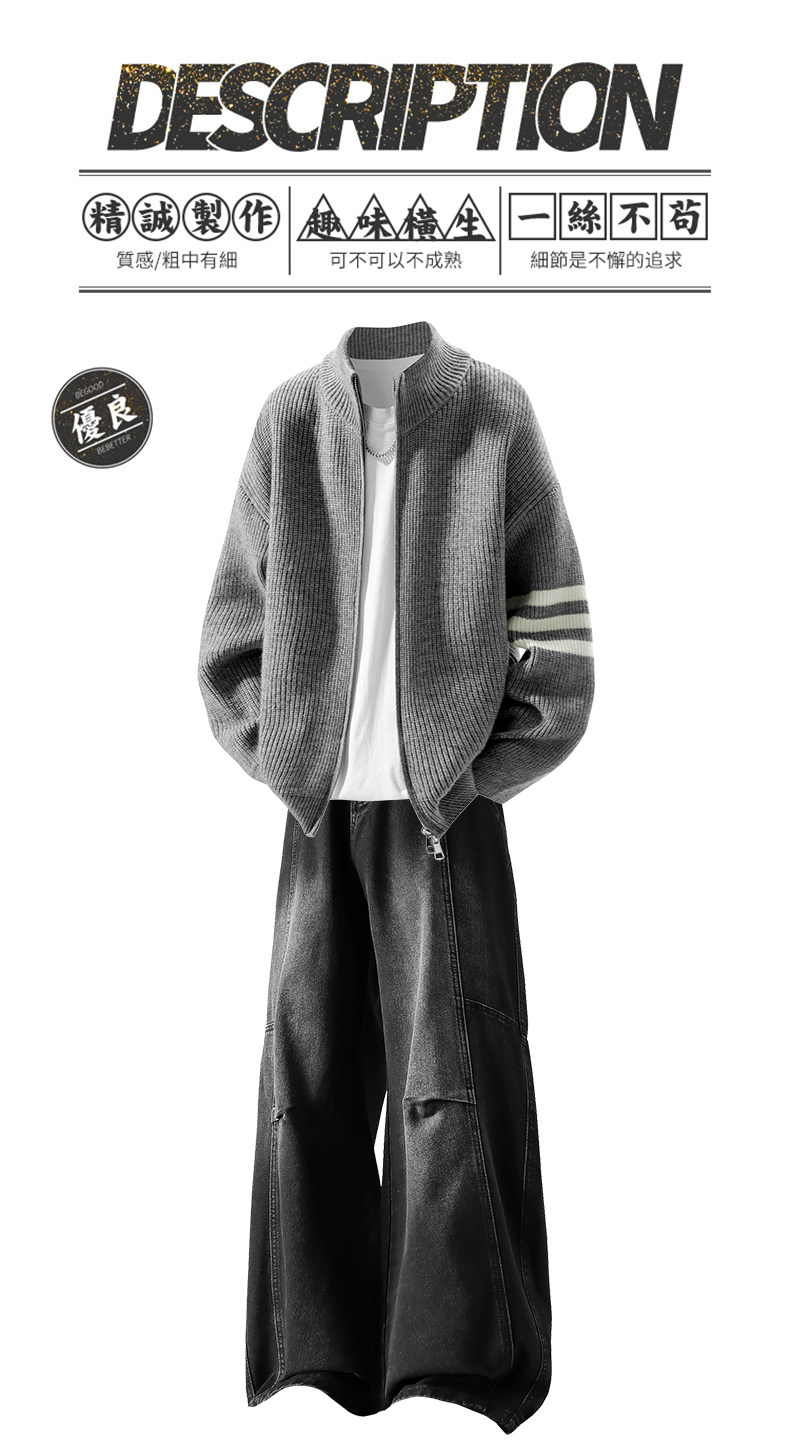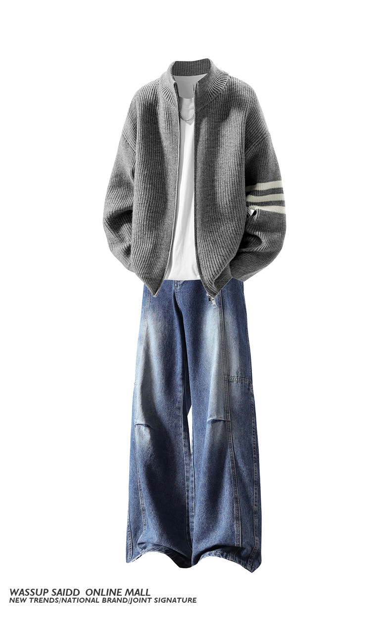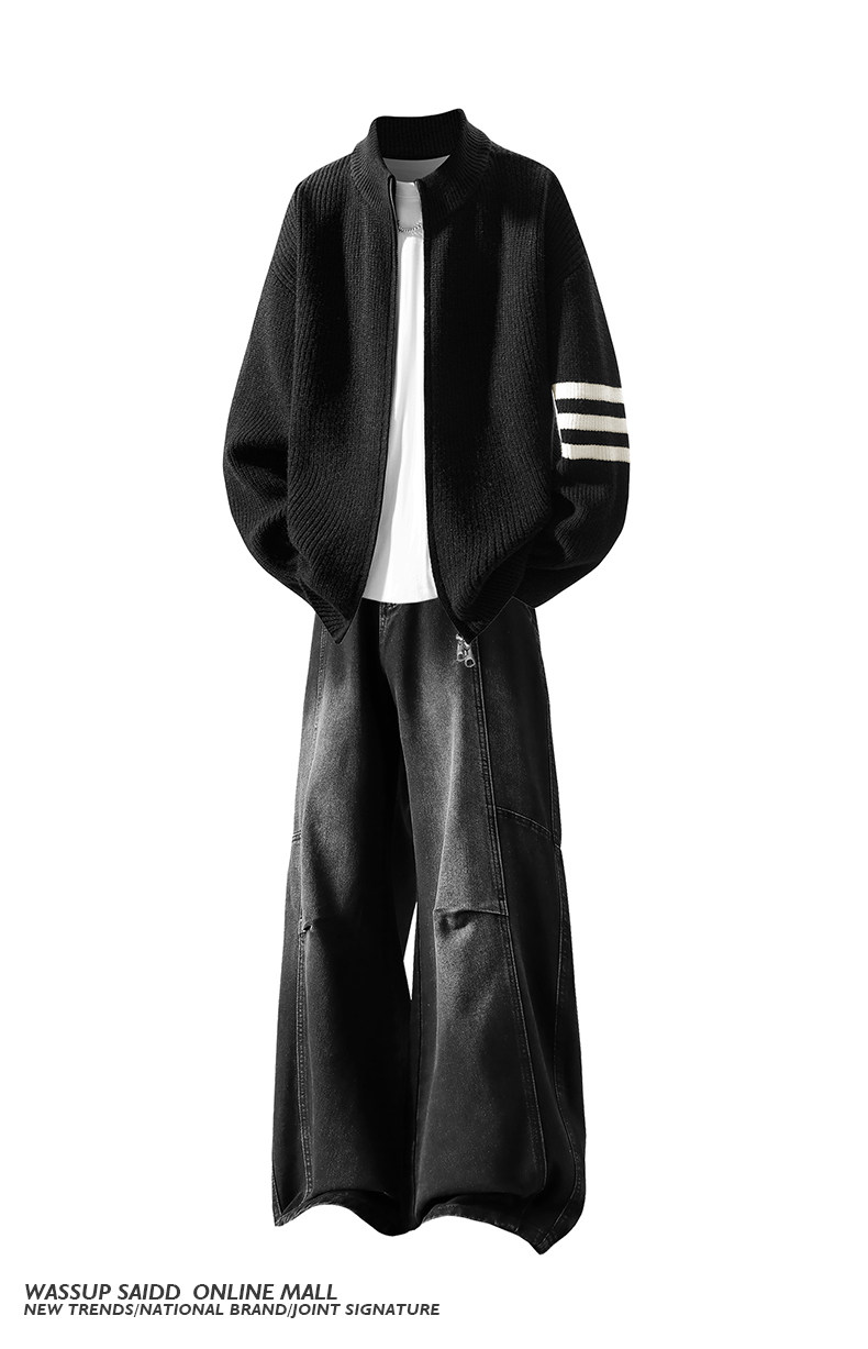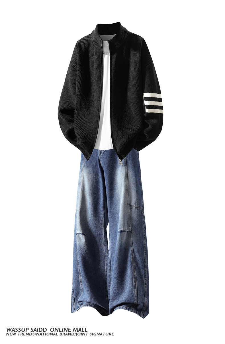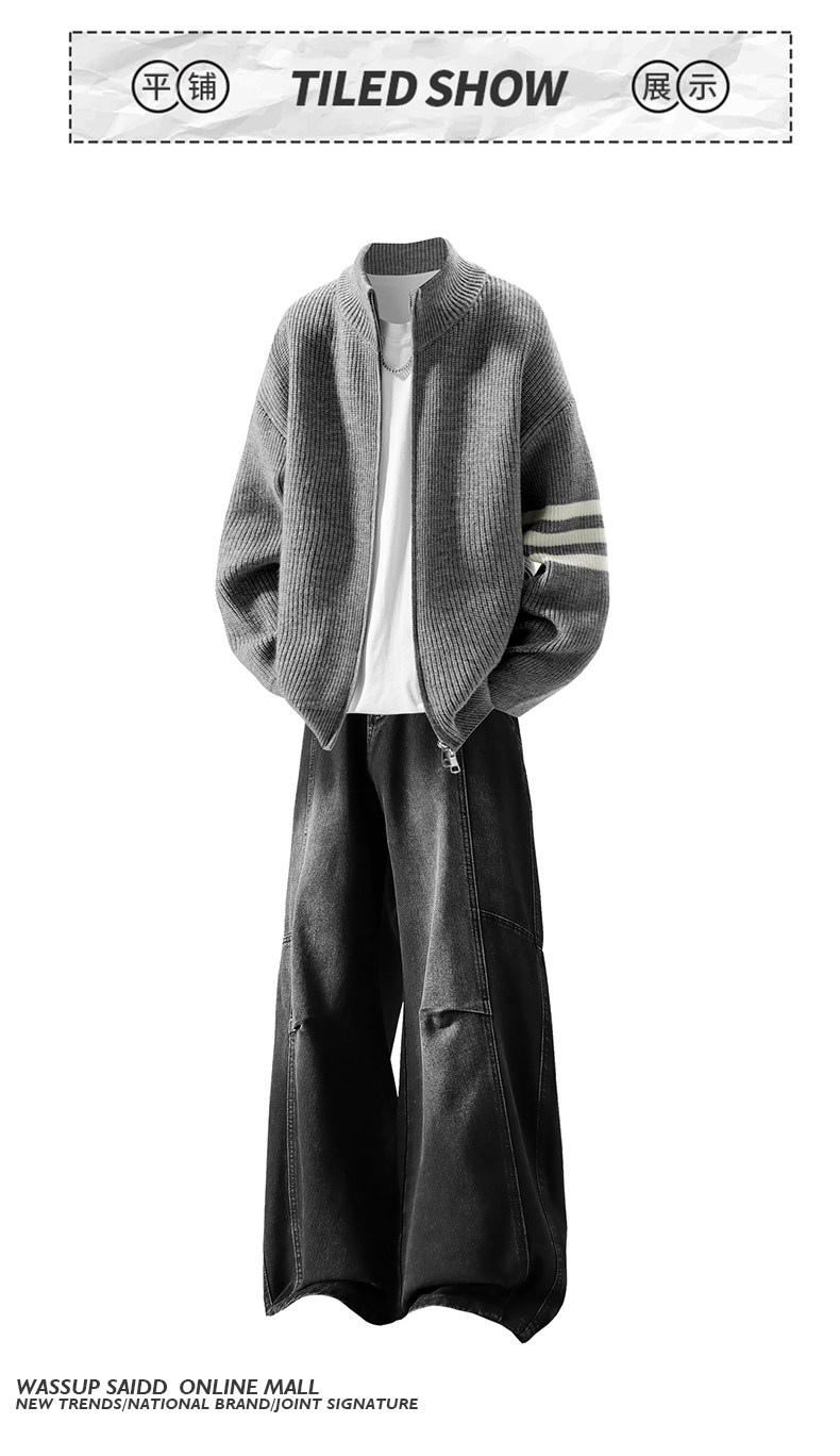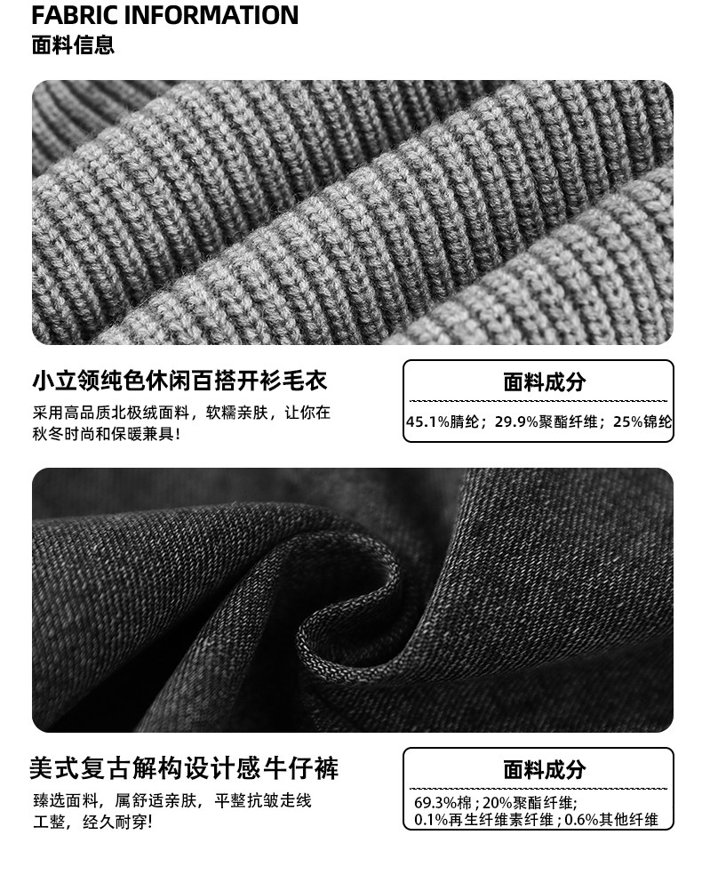 Wassup Saidd Trendy Outfit Set for Men, New Autumn and Winter Cardigan Sweater Paired with Jeans Two-Piece Set