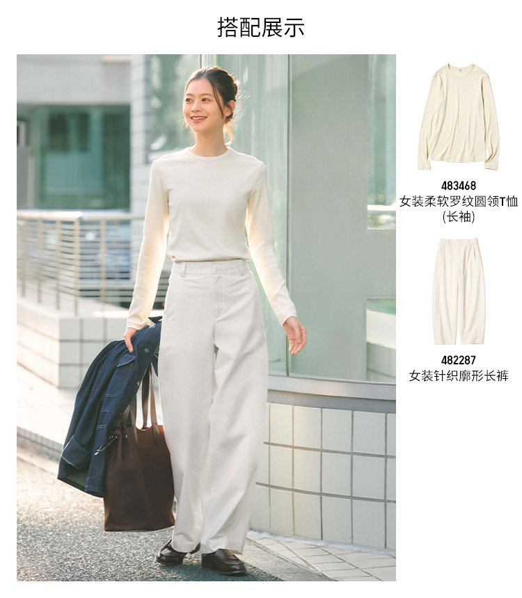 Priority Sf Express Uniqlo Women's Soft Ribbed Crew Neck T-Shirt/Long Sleeve 26 Spring/Summer New Model 483468