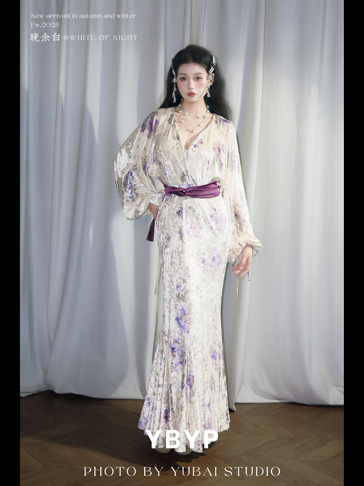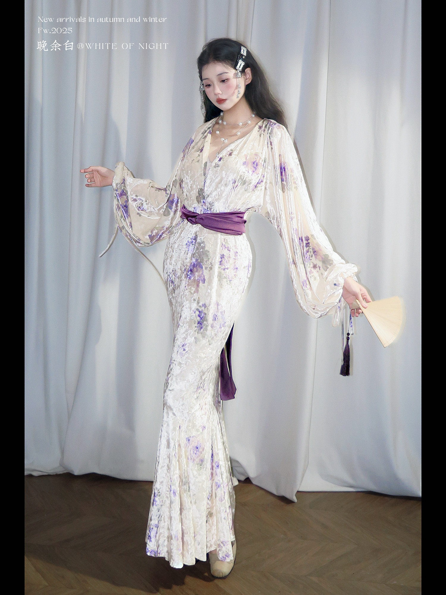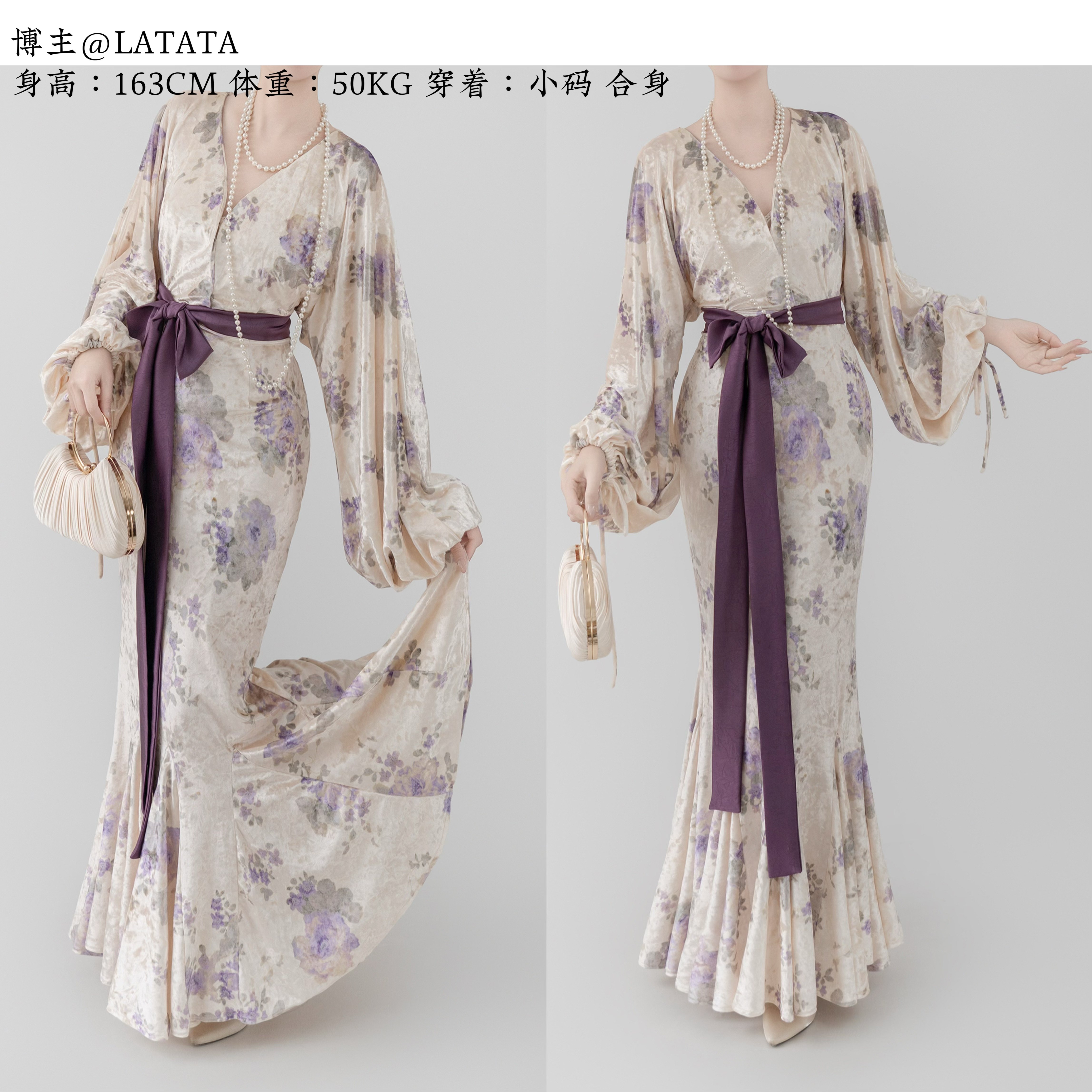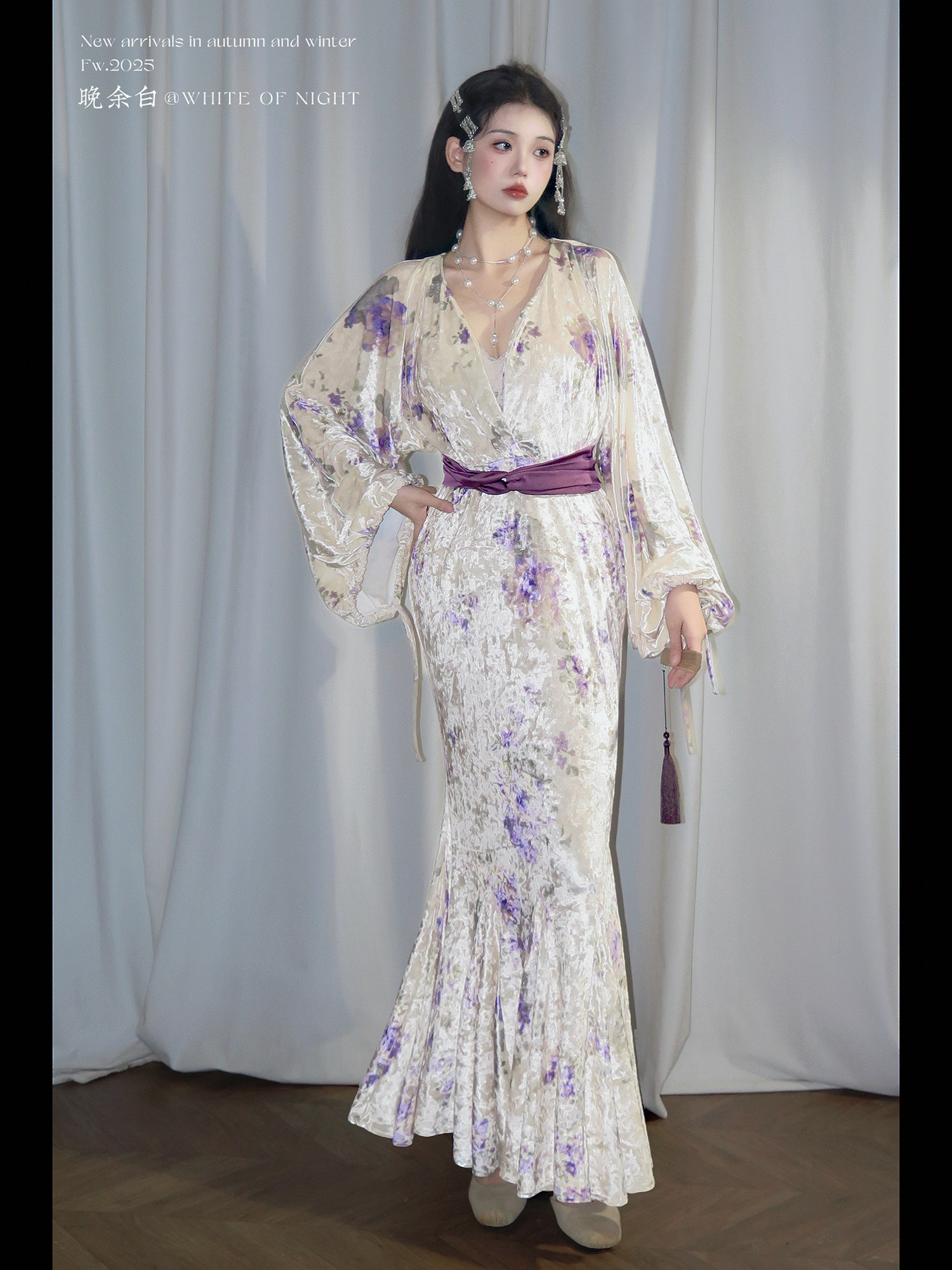 Yubai New Chinese Style [Purple Kite] National Style Velvet Cheongsam Dress Atmospheric Commuting Elegant Suit for Women Autumn and Winter