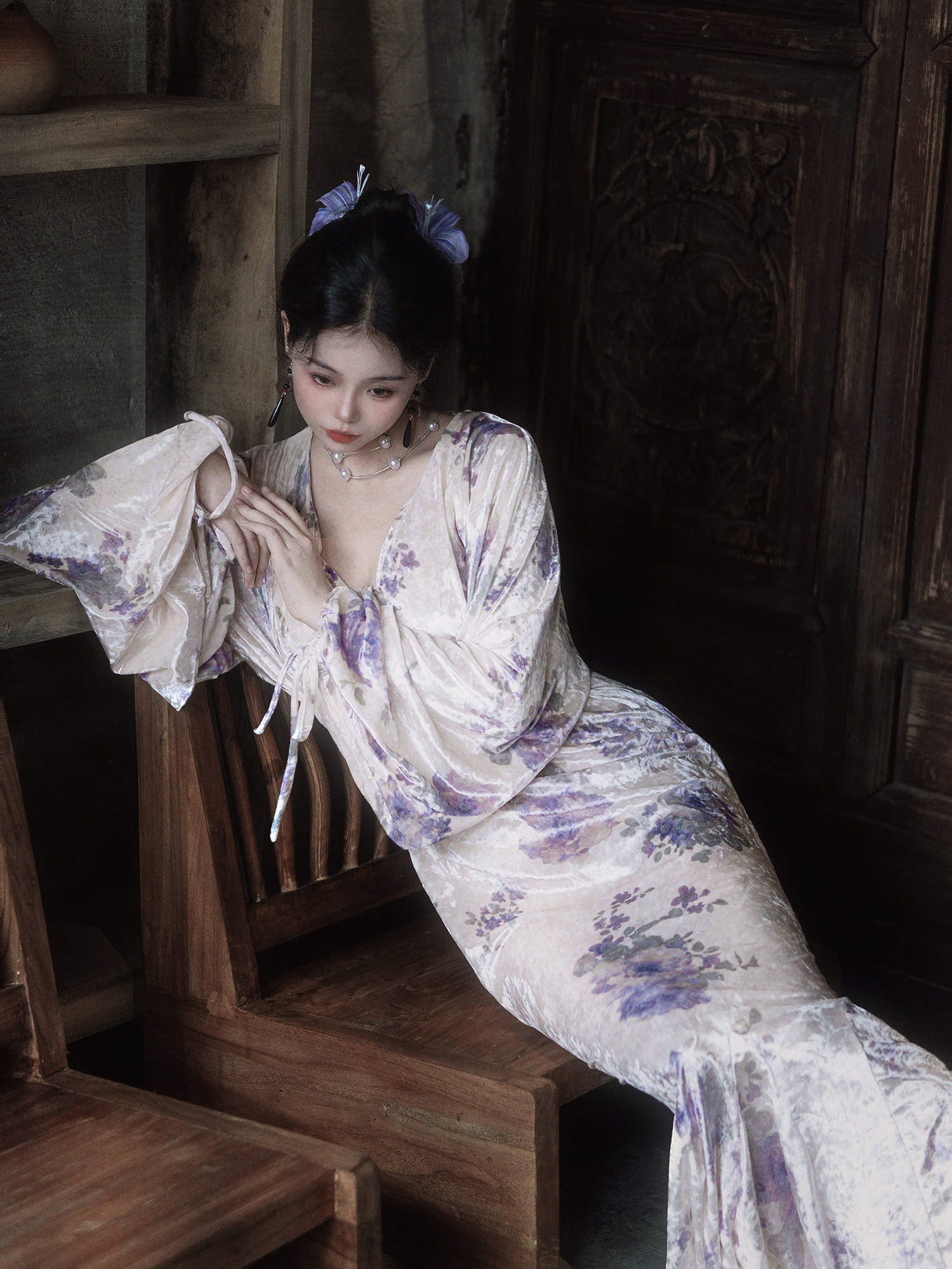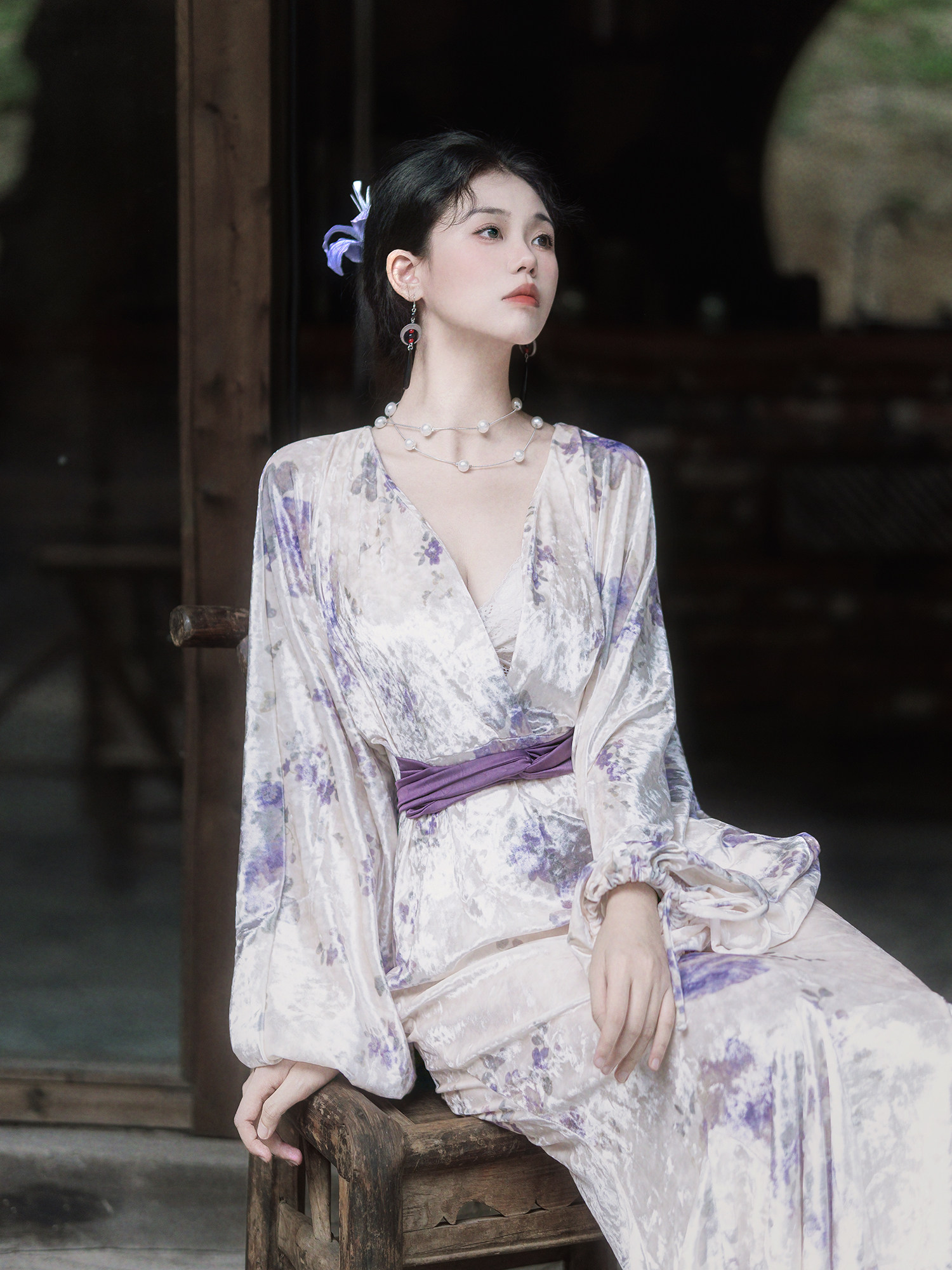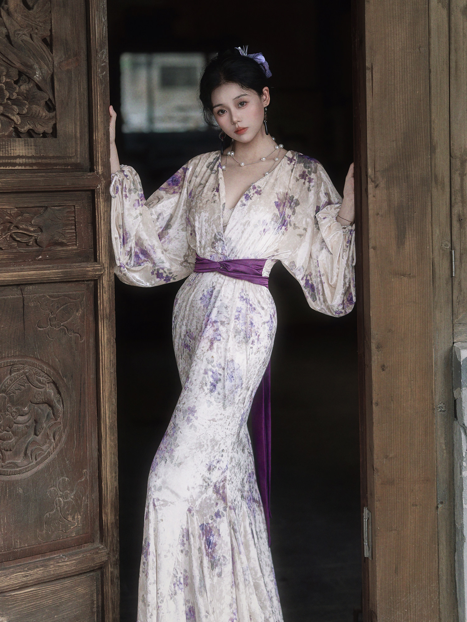 Yubai New Chinese Style [Purple Kite] National Style Velvet Cheongsam Dress Atmospheric Commuting Elegant Suit for Women Autumn and Winter