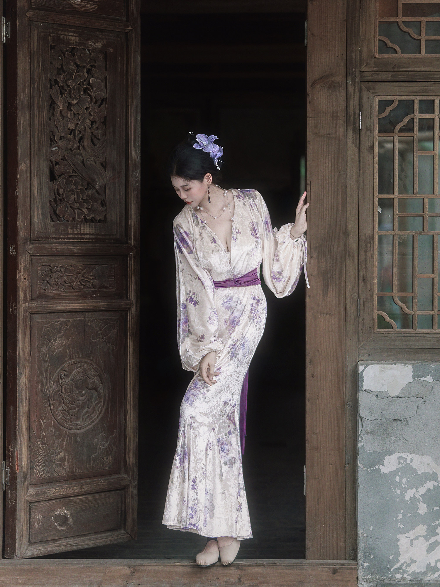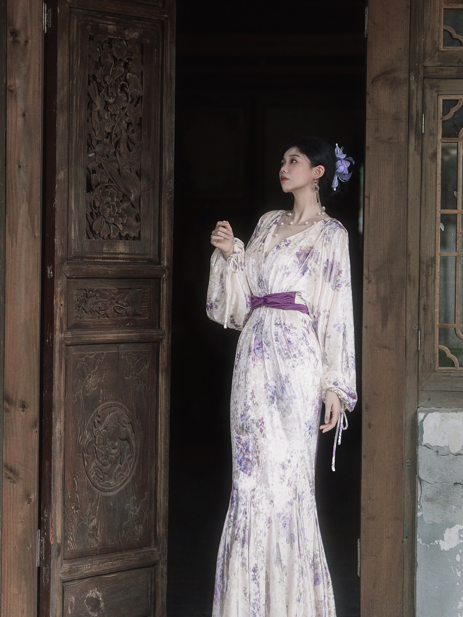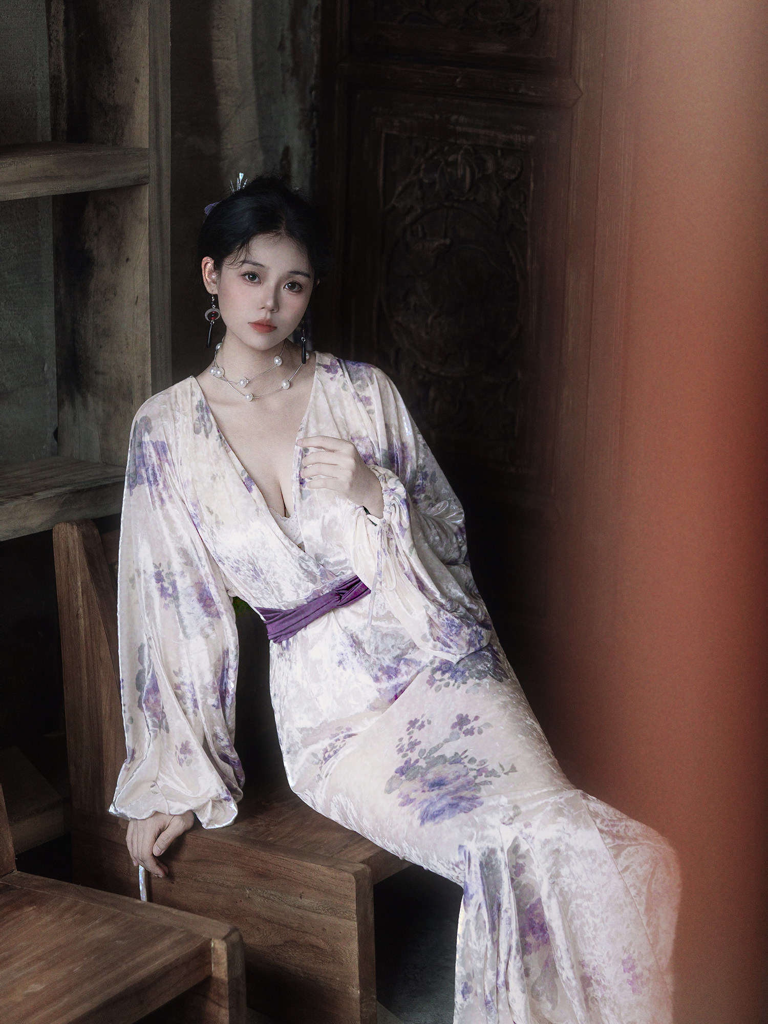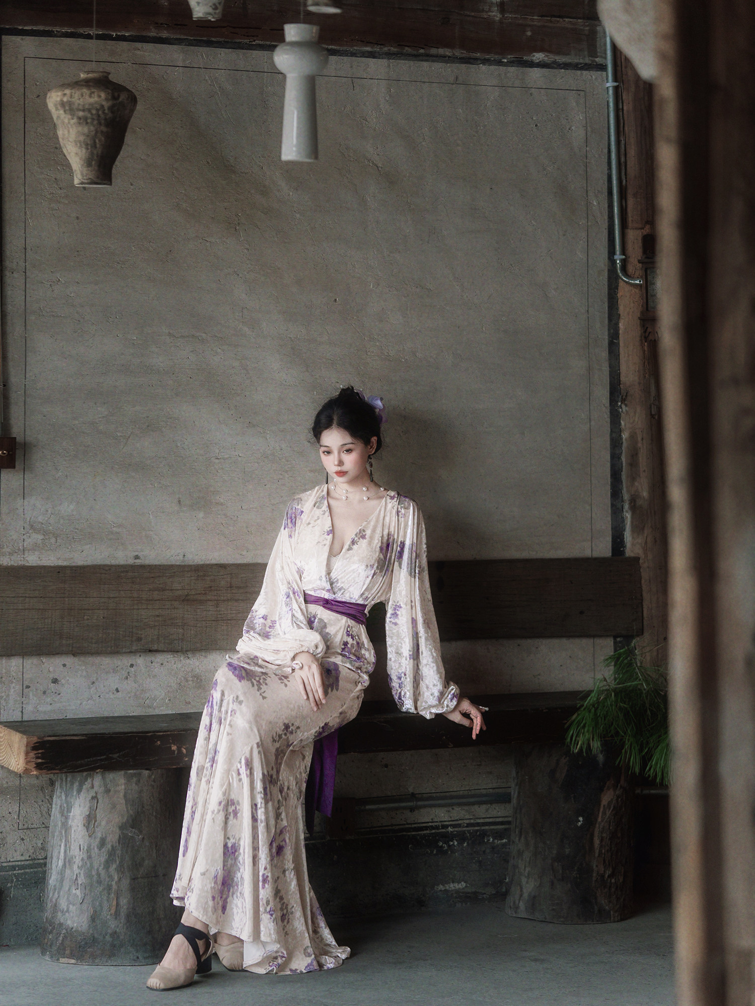 Yubai New Chinese Style [Purple Kite] National Style Velvet Cheongsam Dress Atmospheric Commuting Elegant Suit for Women Autumn and Winter