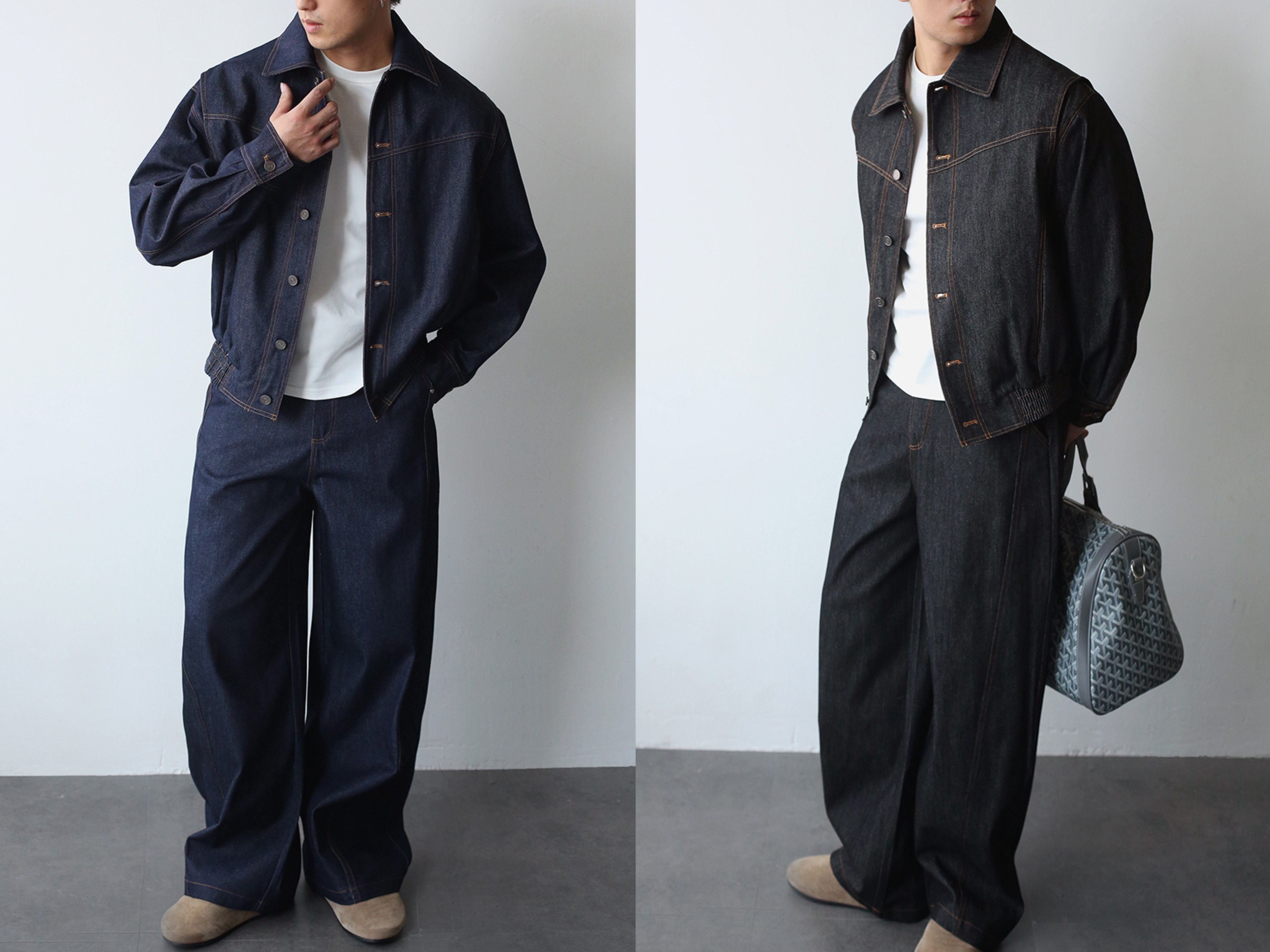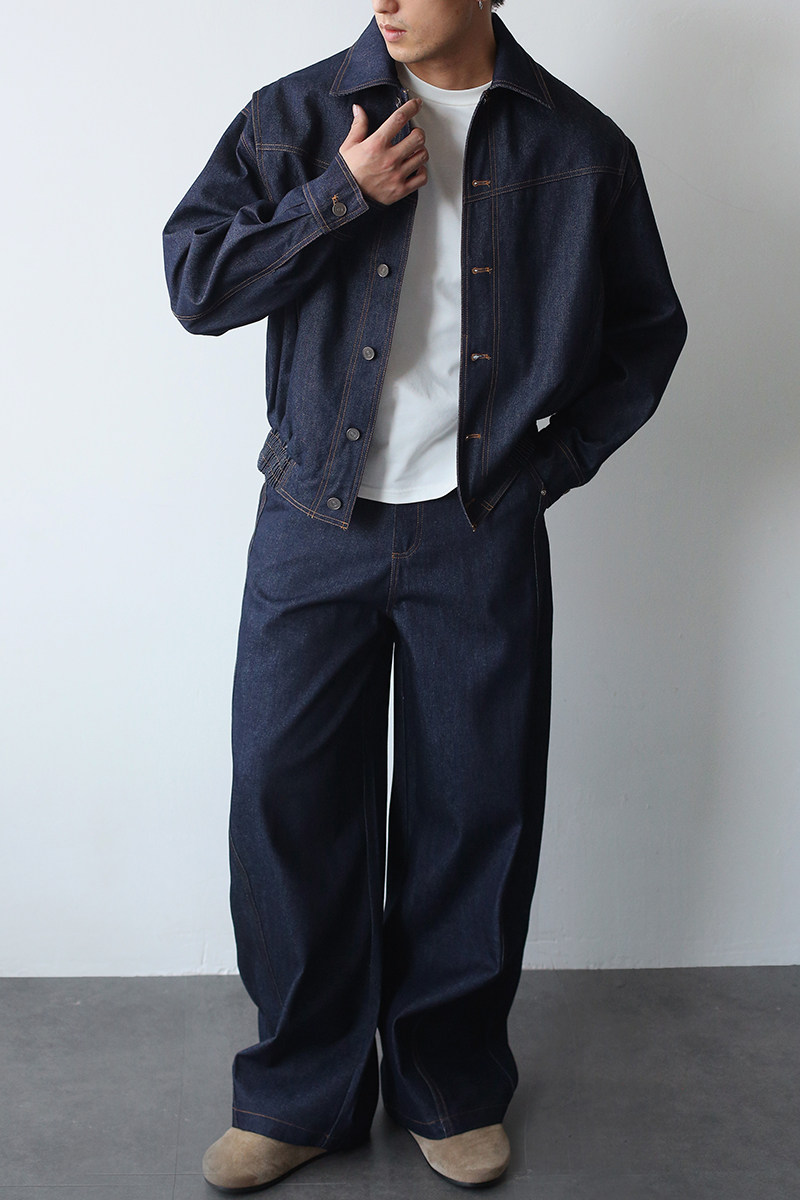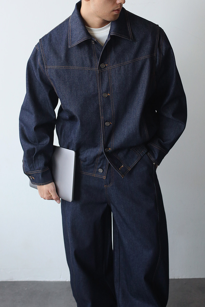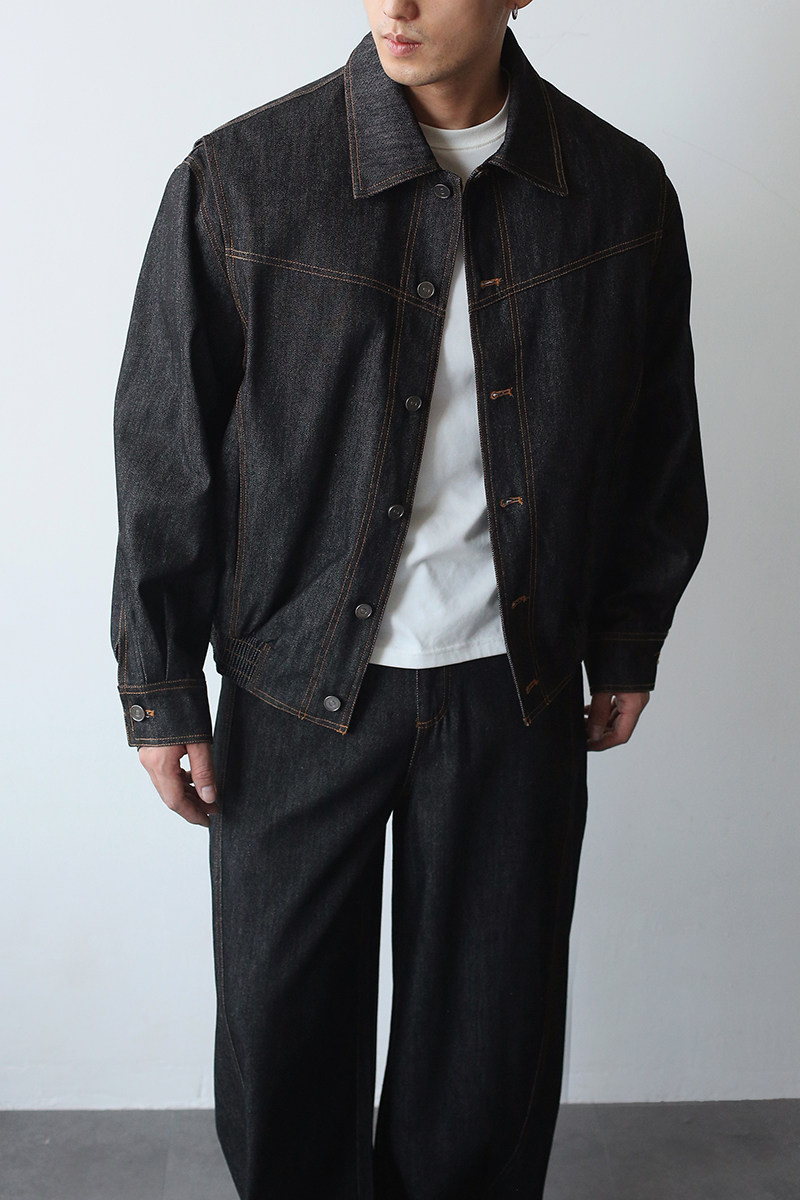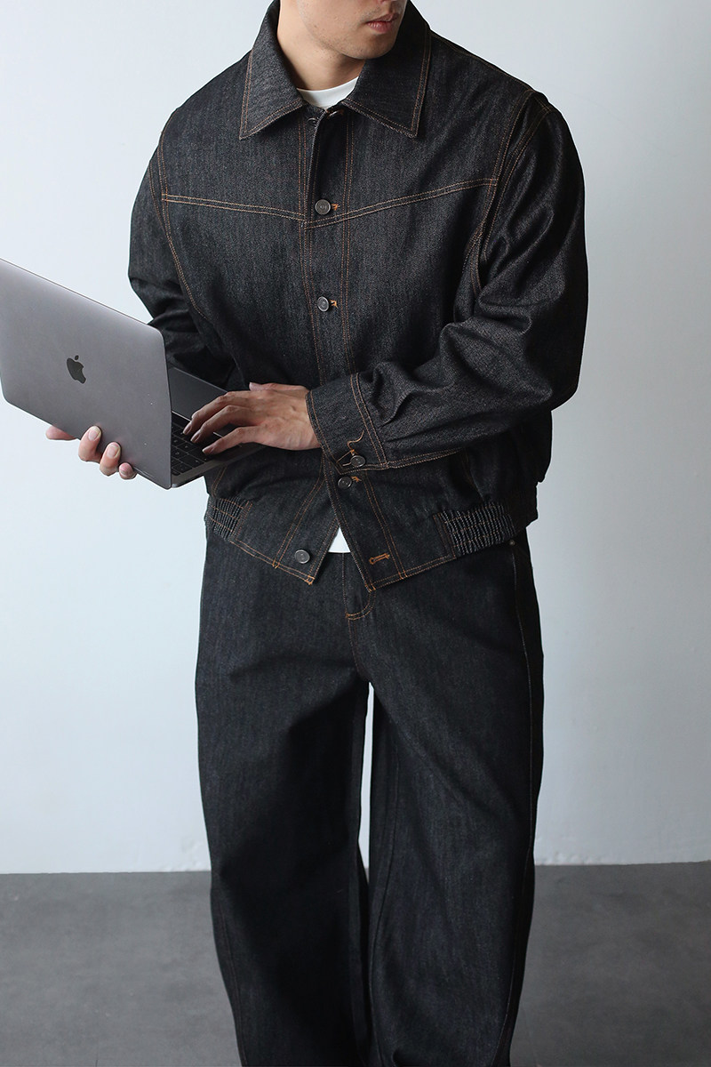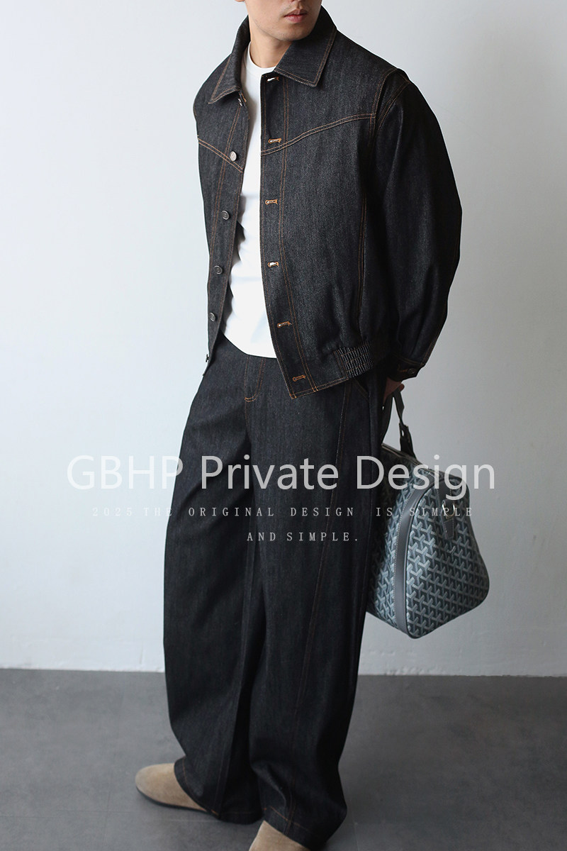 Gbhp American Retro Heavy Washed Denim Jacket Set Men's Casual Business Commuting Versatile Lapel Jacket