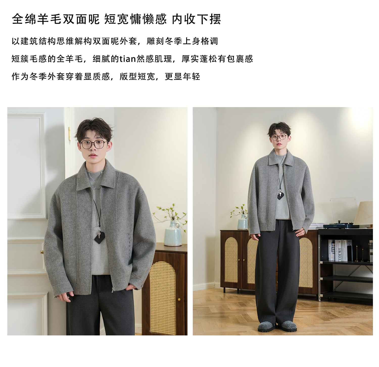 Men's Short Double-Sided Wool Coat, Autumn and Winter 2025 New Style, Loose and Trendy Winter Woolen Jacket