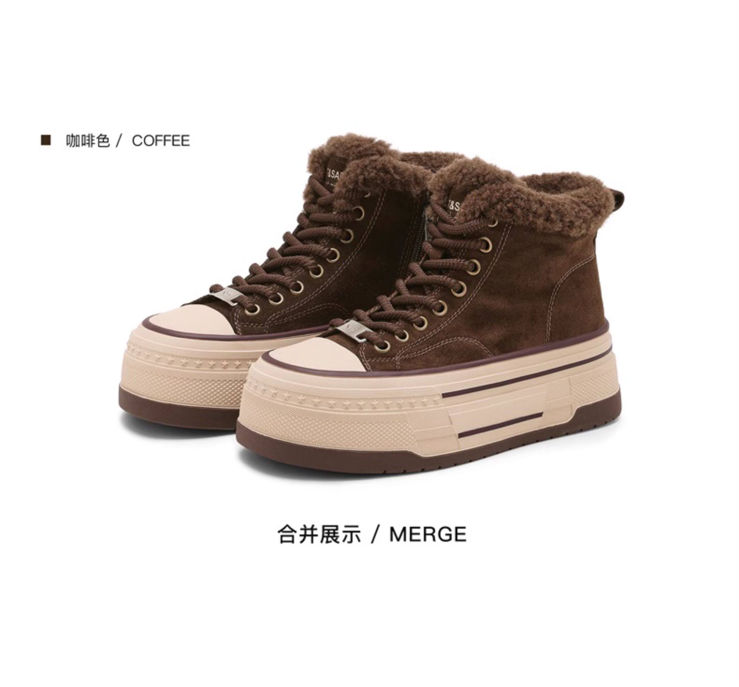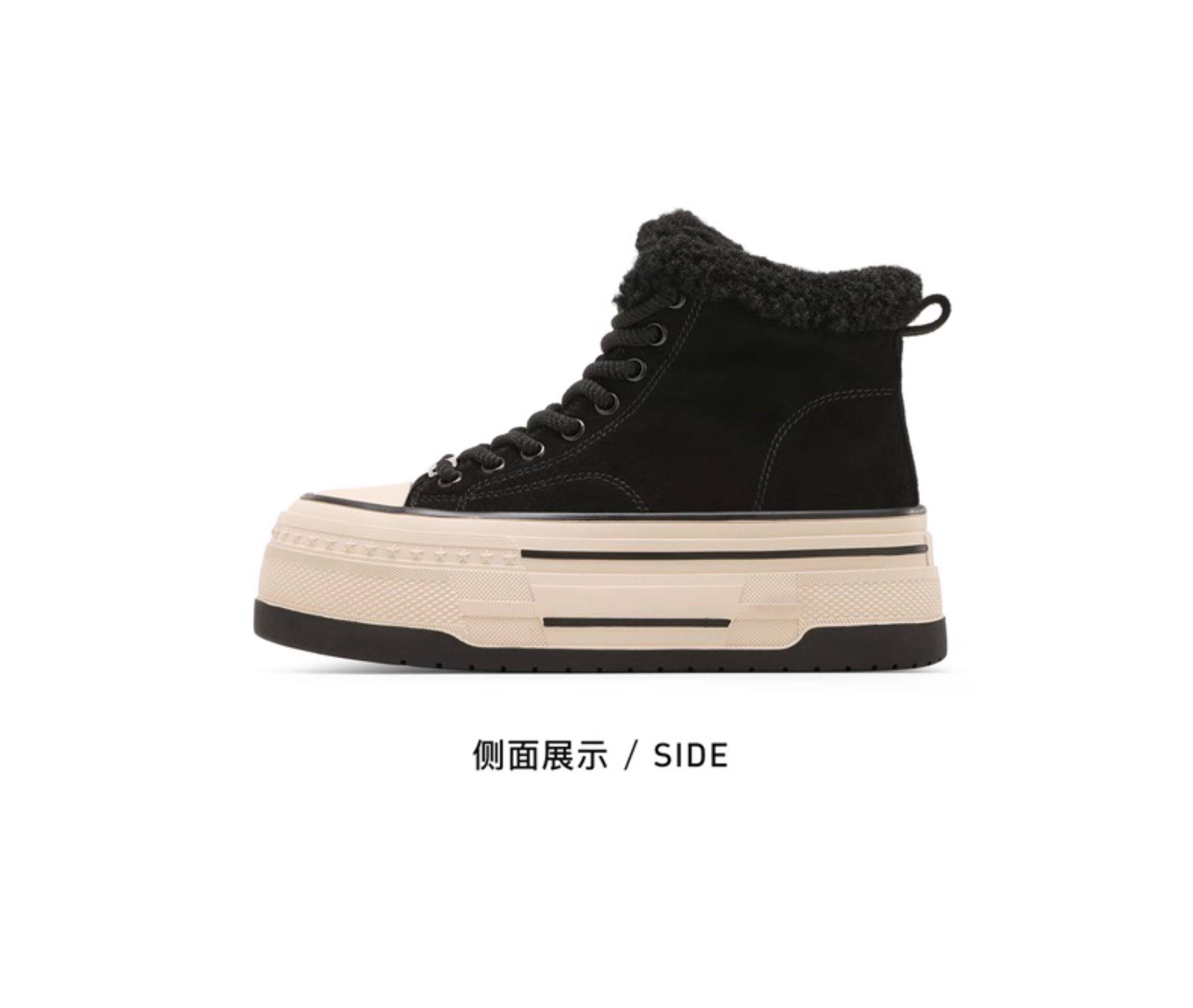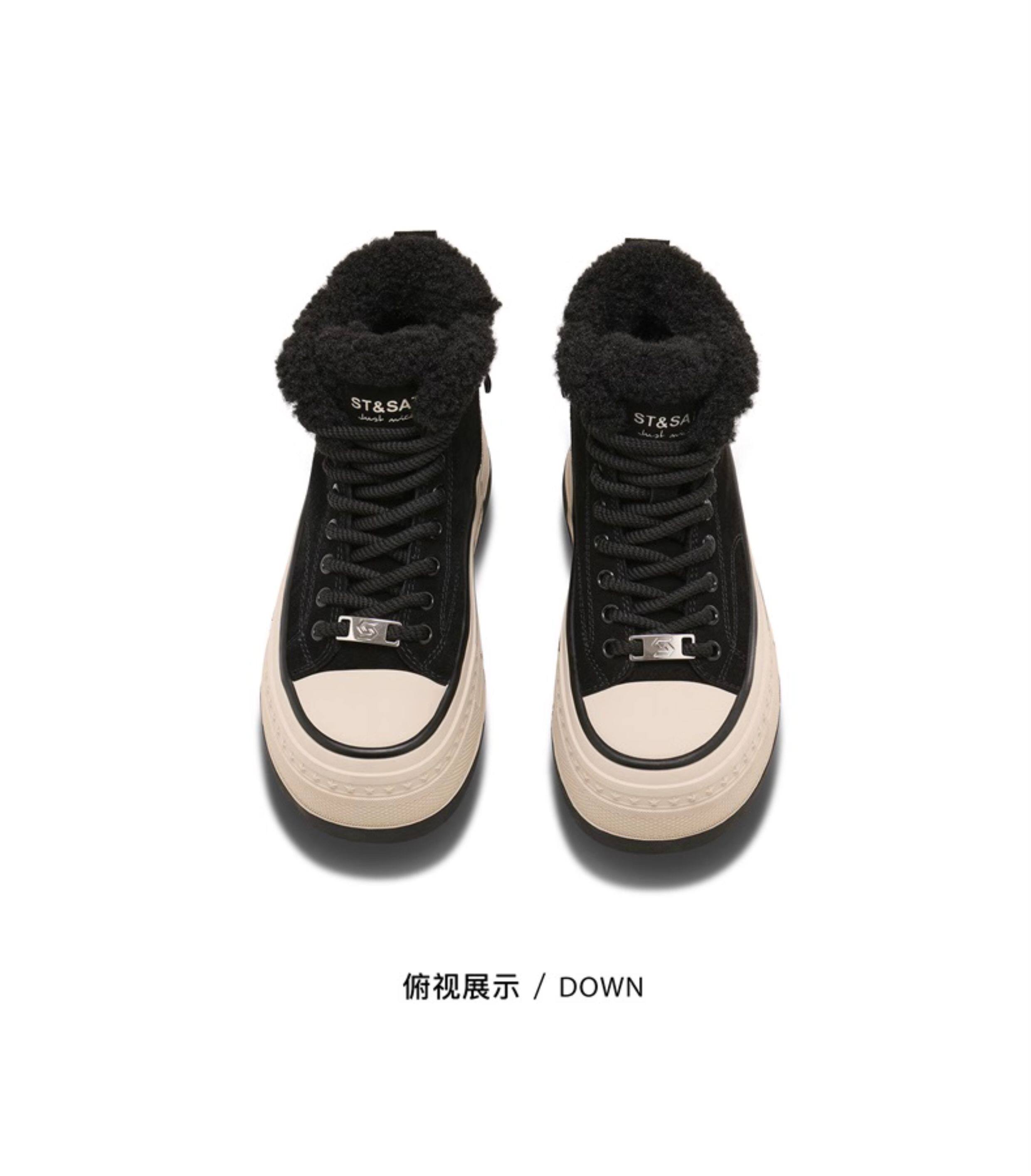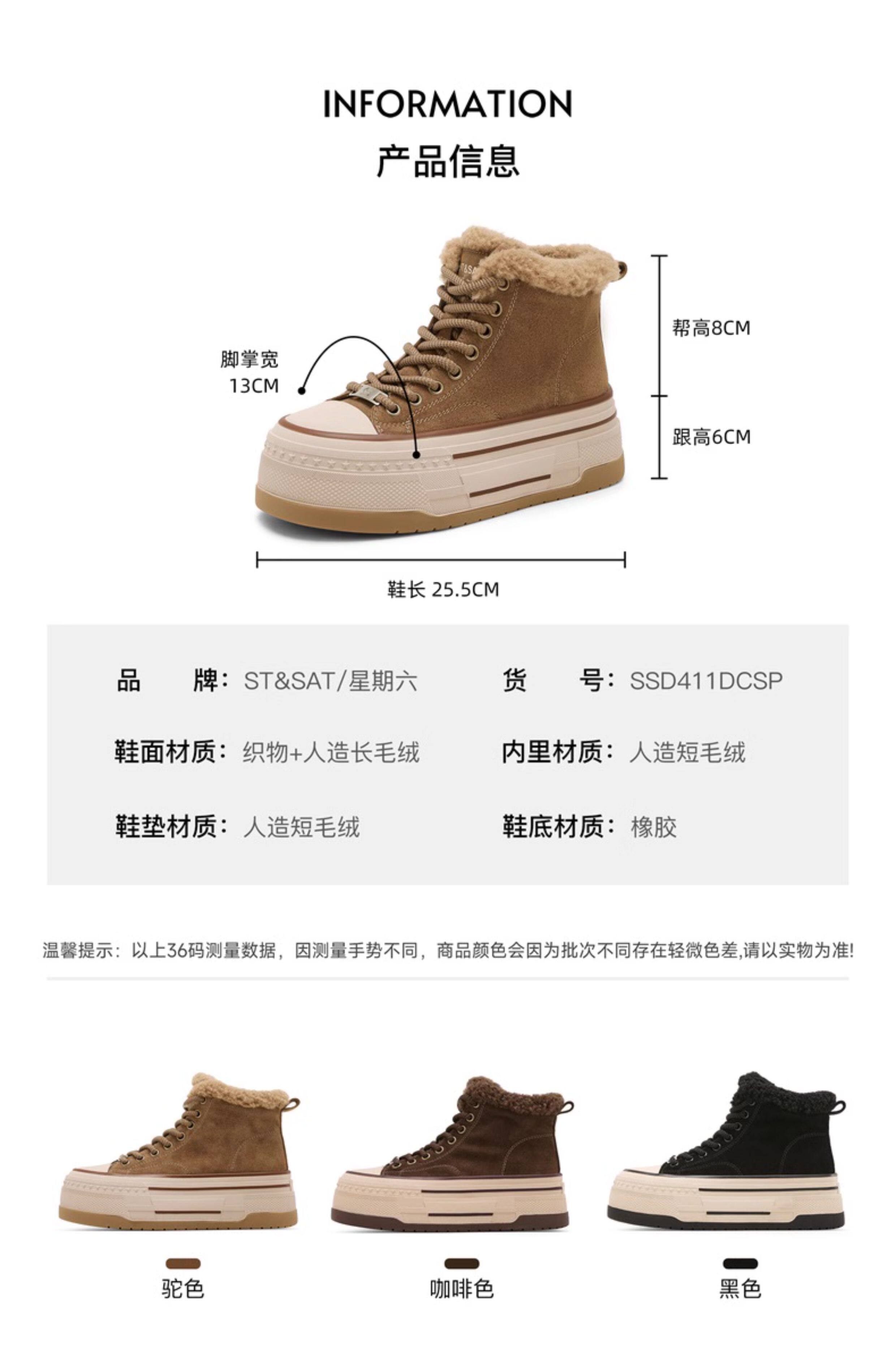 Saturday Thick-Soled High-Top Canvas Shoes for Women 2025 Winter Hot-Selling Style with Added Fleece, Fashionable Versatile Warm Cotton Shoes