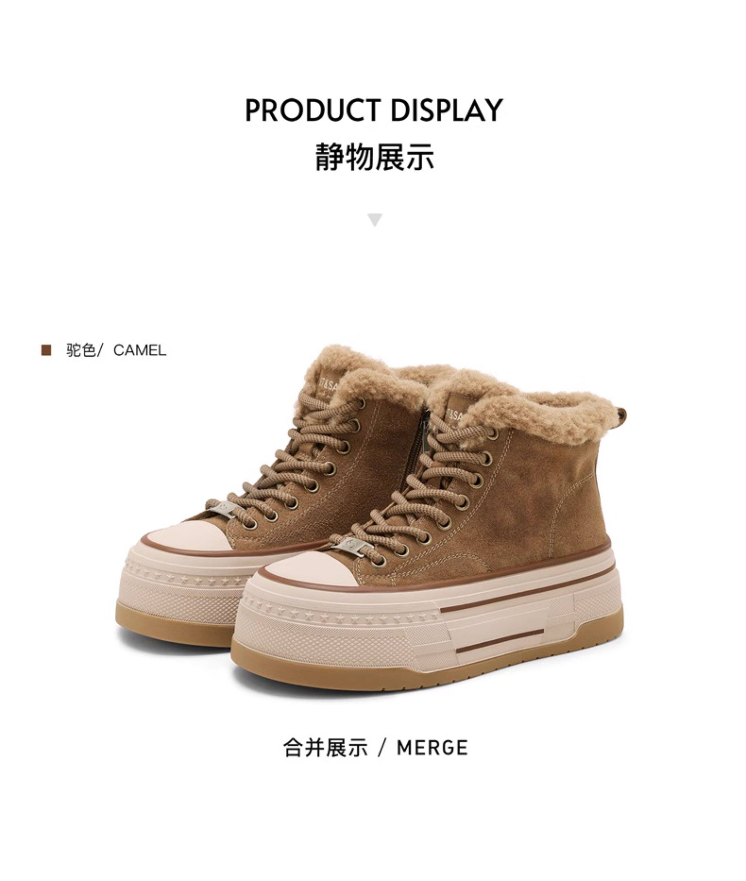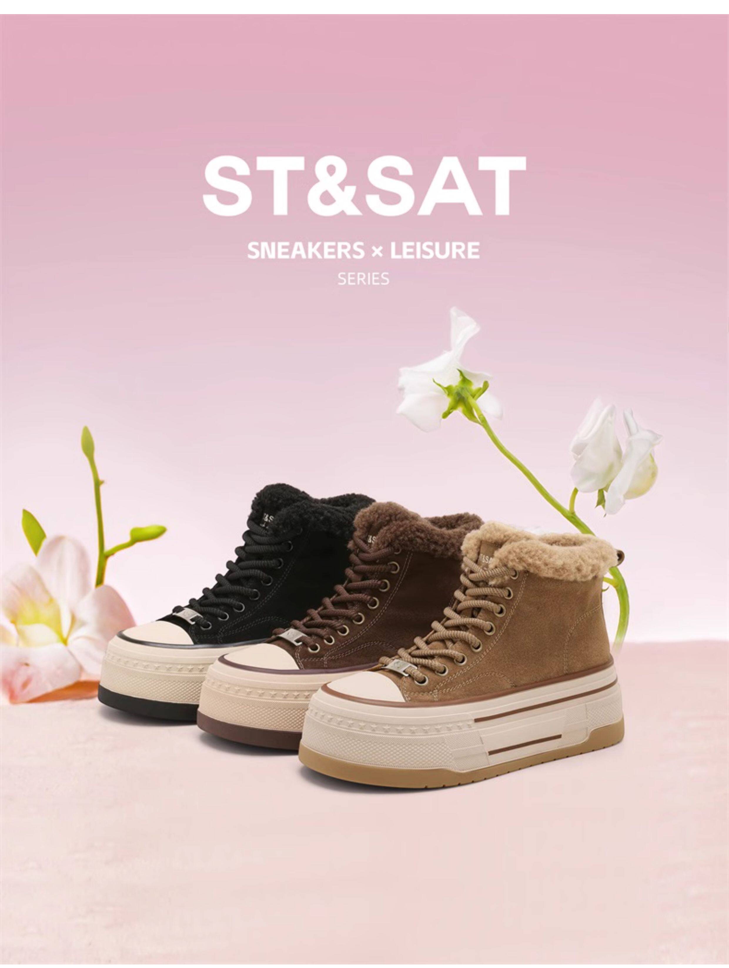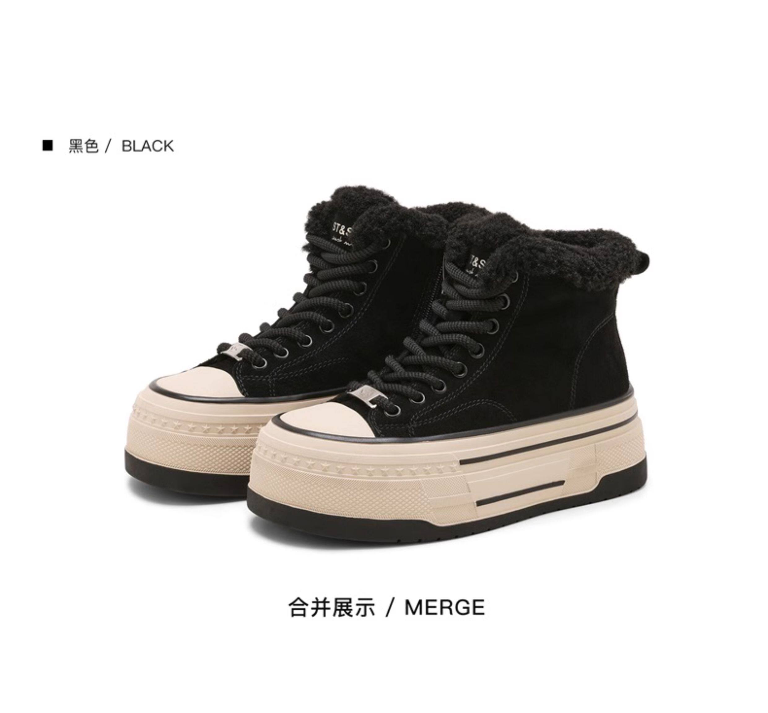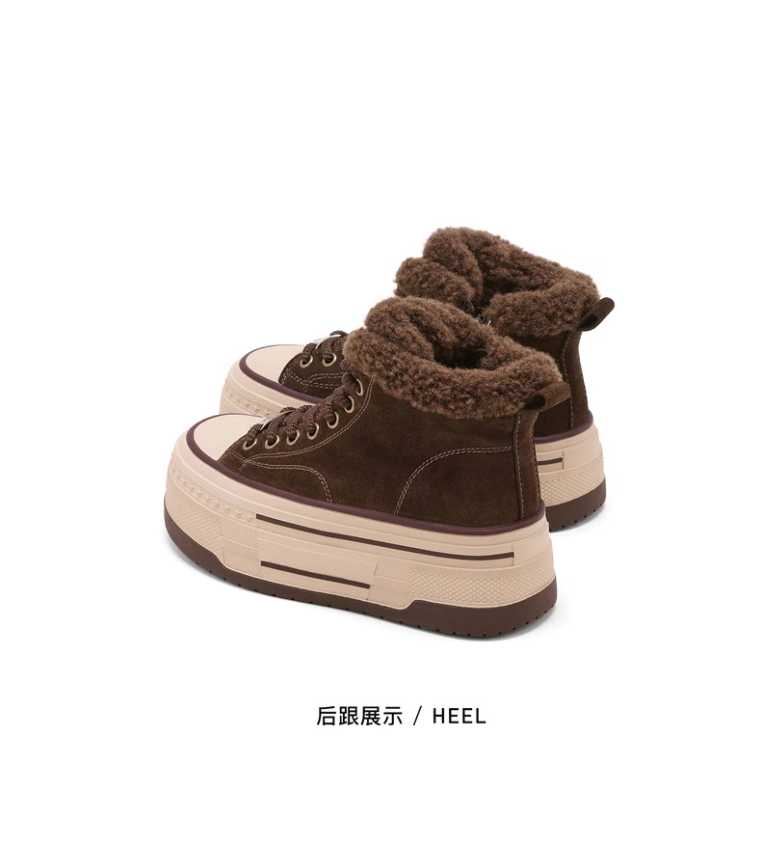 Saturday Thick-Soled High-Top Canvas Shoes for Women 2025 Winter Hot-Selling Style with Added Fleece, Fashionable Versatile Warm Cotton Shoes