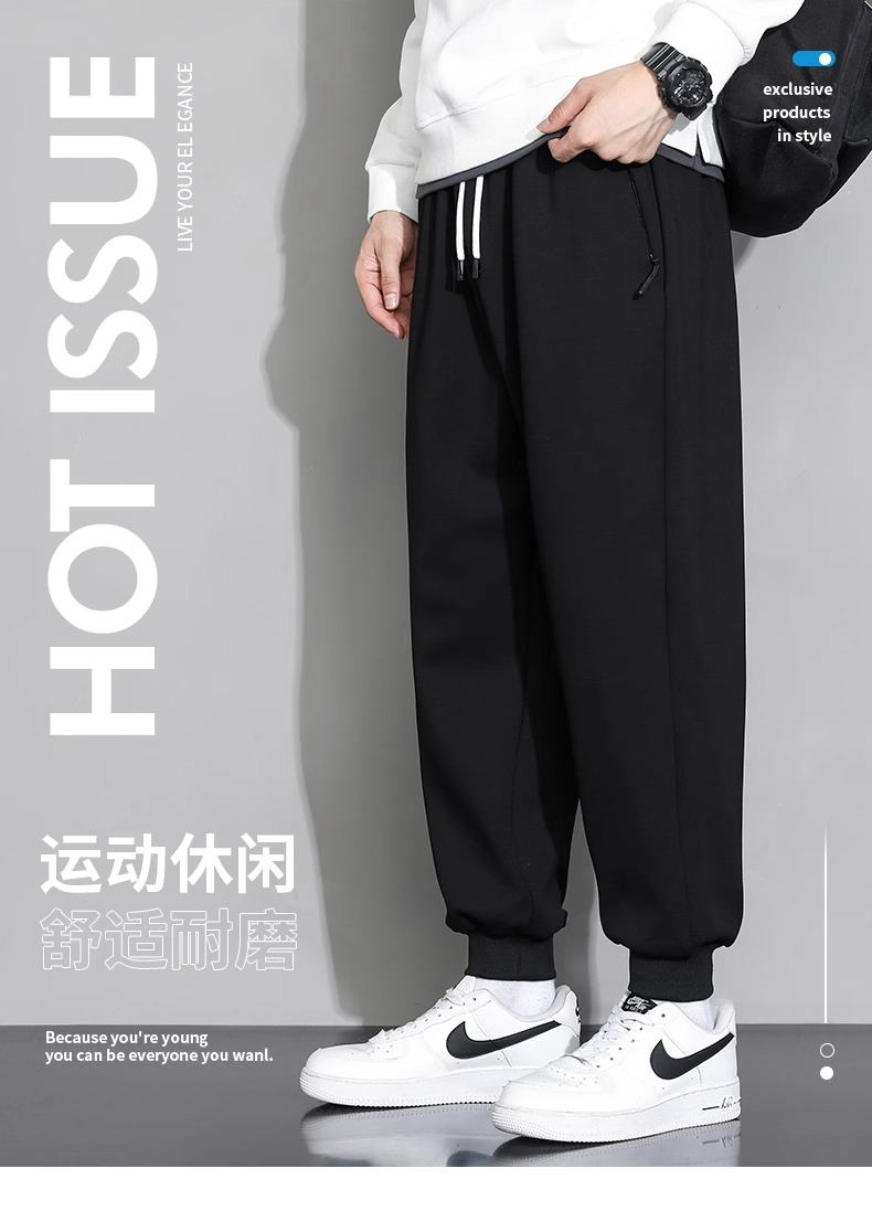 Jeanswest Men's Sweatpants Autumn and Winter 2025 New Pure Cotton Casual Fleece-Lined Thickened Jogger Pants Men's Clothing