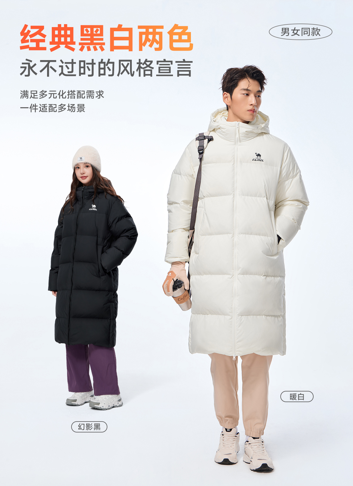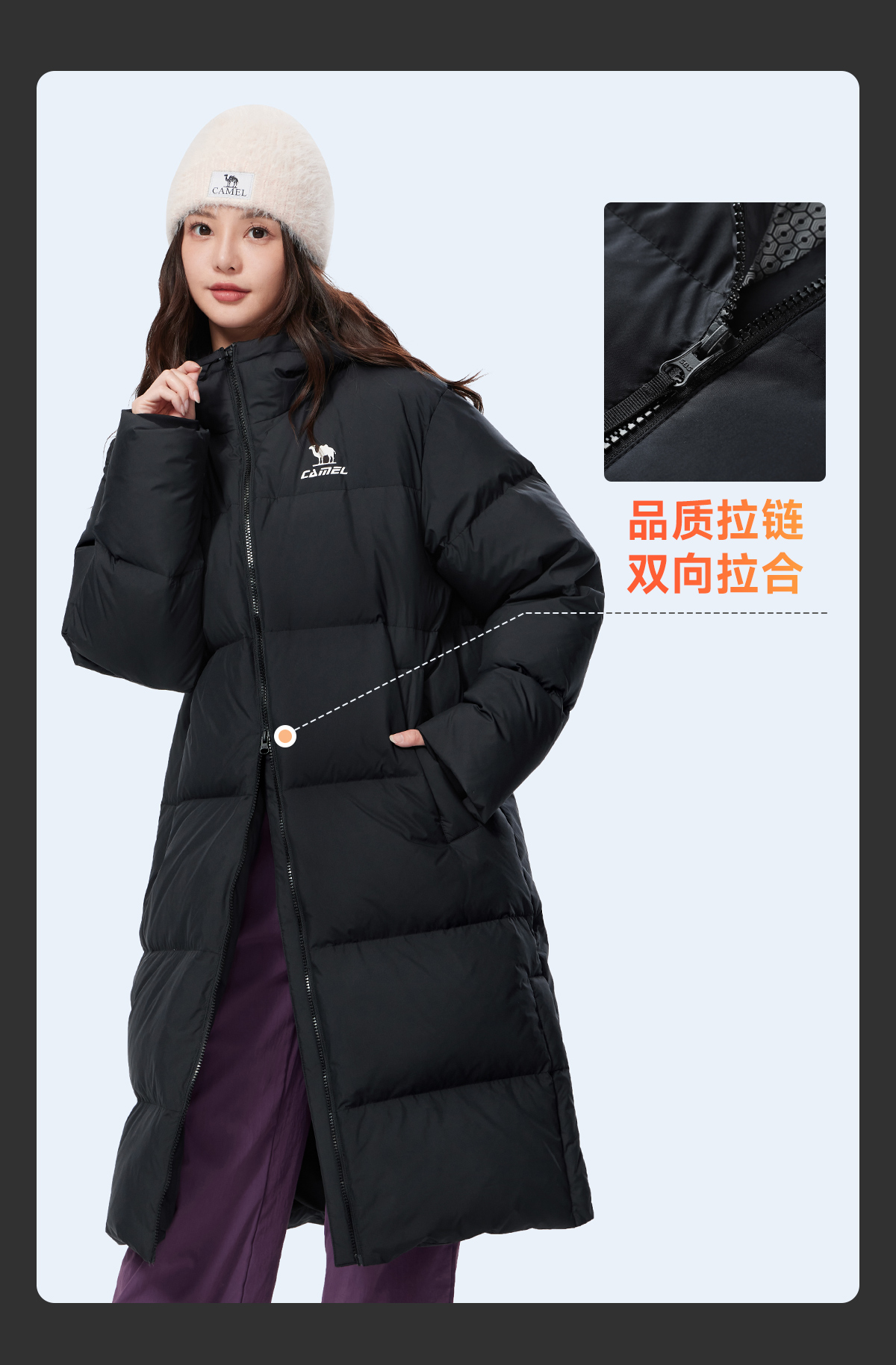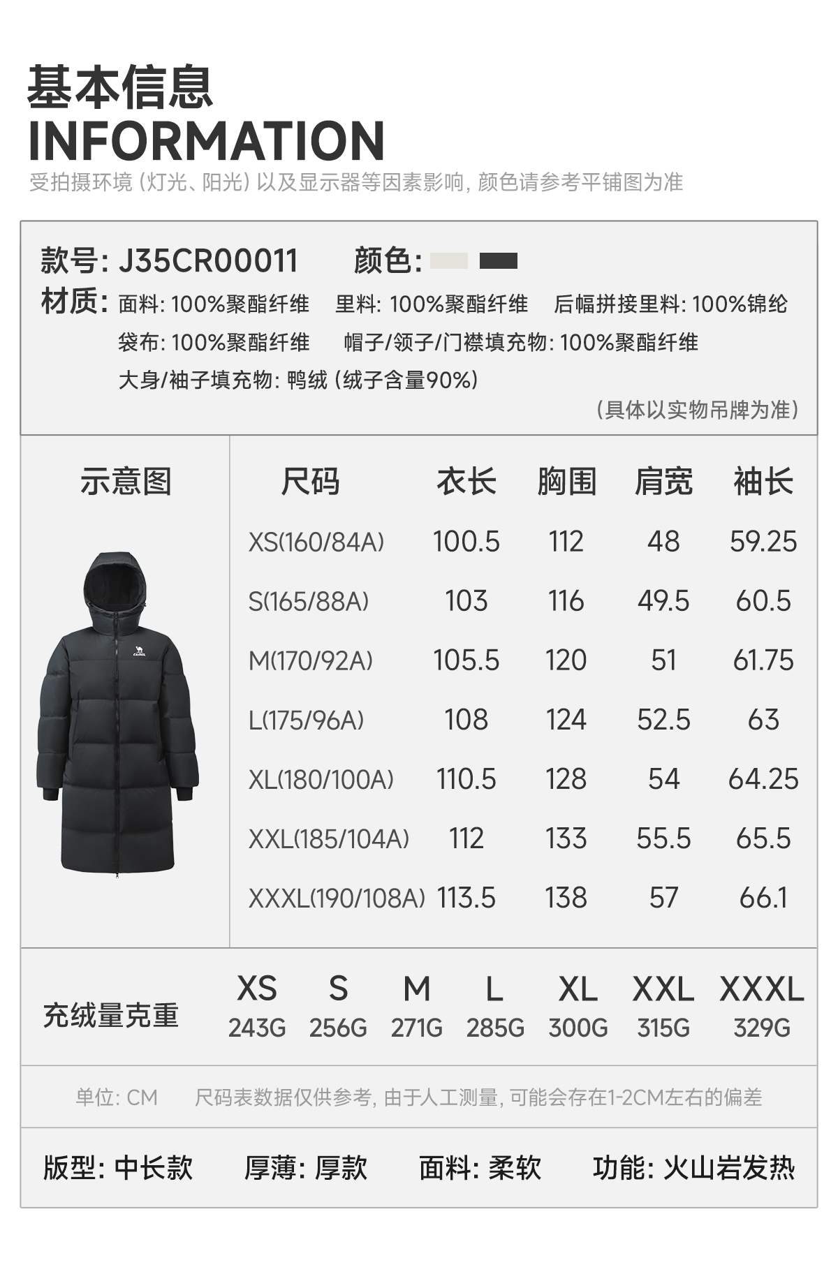 Camel Fire God Hooded down Jacket Mid-Length 25 Winter 90% down Water-Repellent Sports down Jacket Far-Infrared Heating Coat